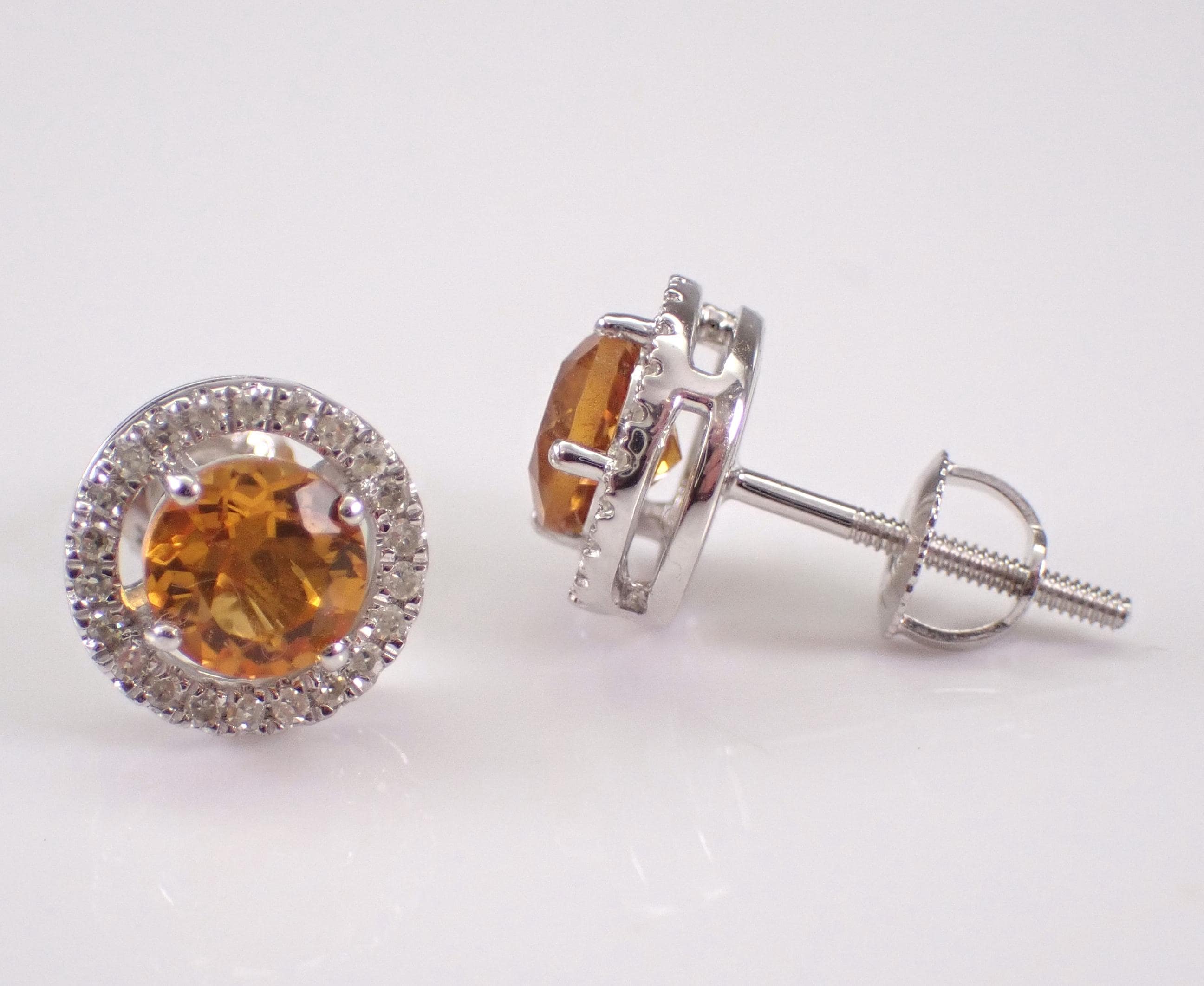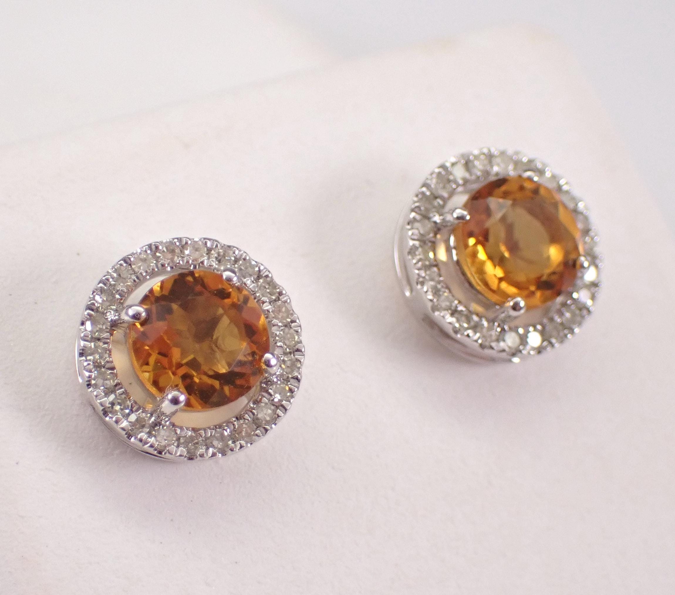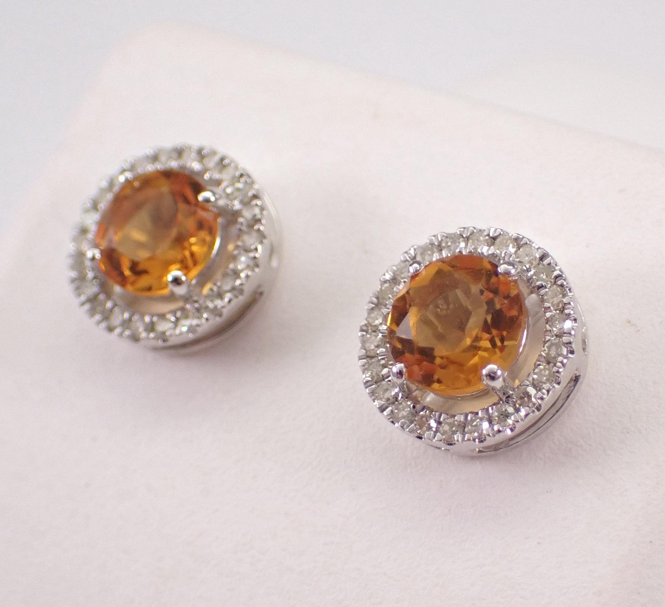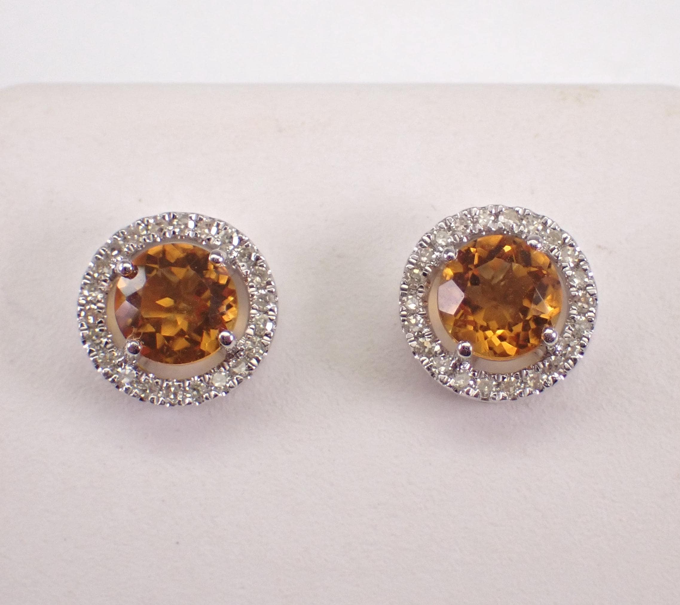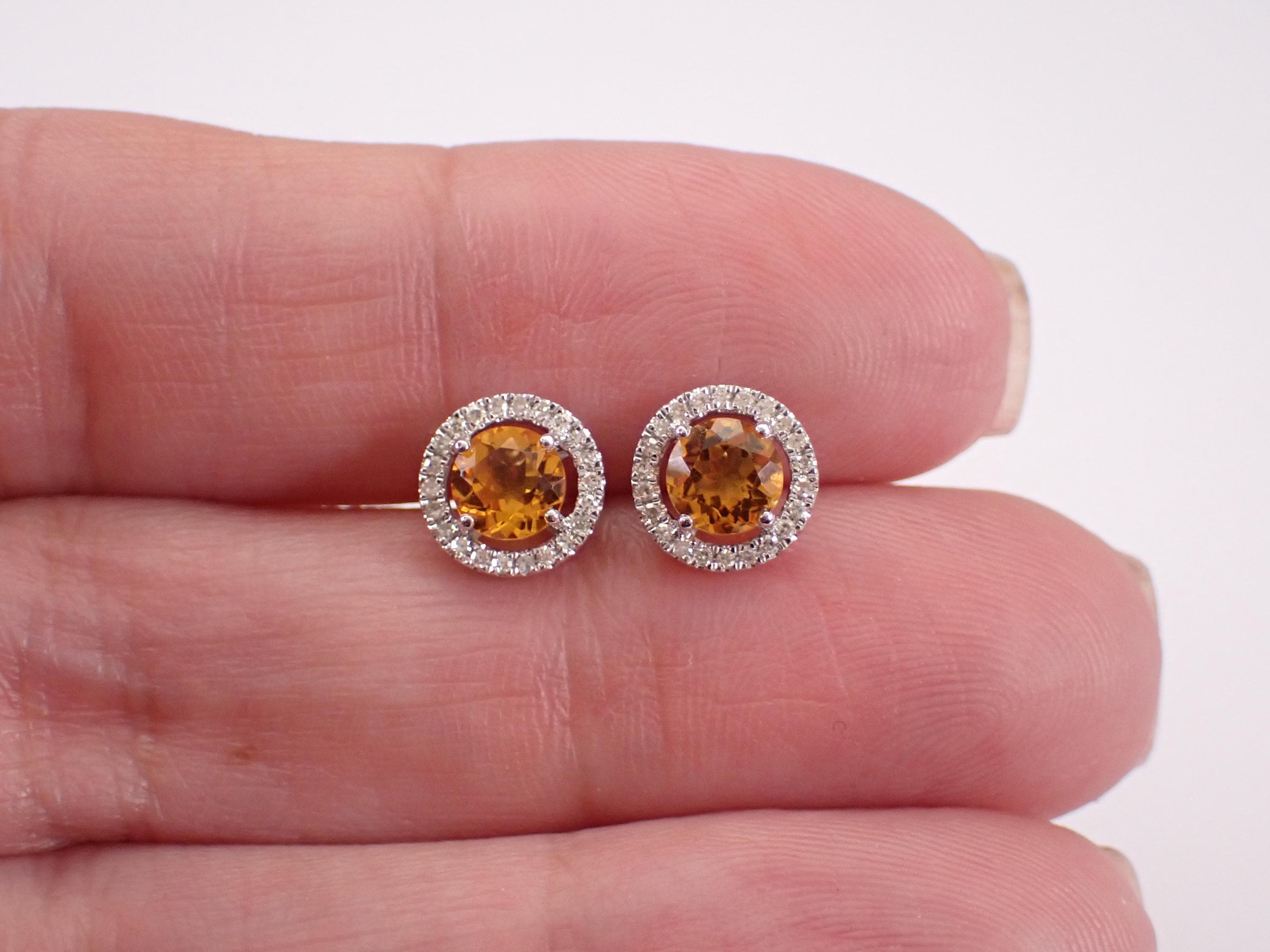 White Gold Diamond and Citrine Halo Stud Earrings.