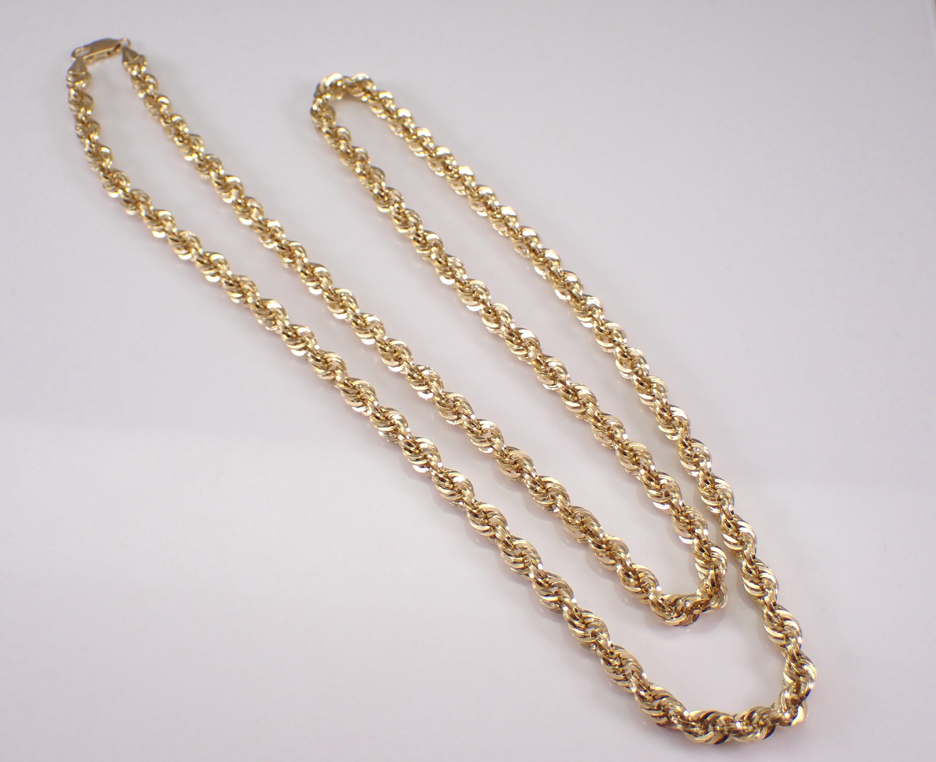 14K Yellow Gold Vintage Hollow Rope Chain Necklace. This necklace measures 30" in length and weighs 16.3 grams. This necklace will be accompanied by an appraisal for insurance and authentication purposes. I will ship this necklace promptly in a beautiful gift box.