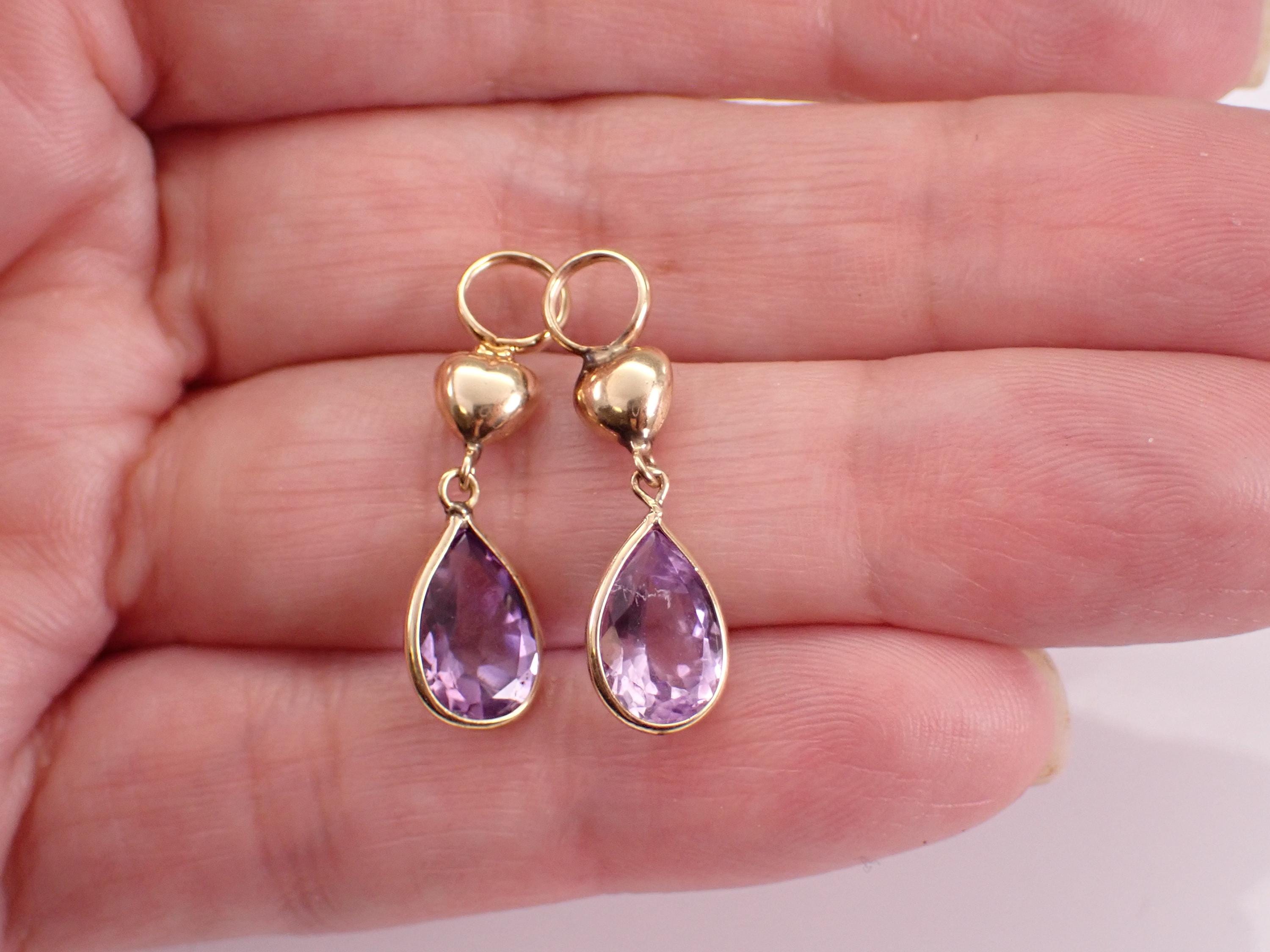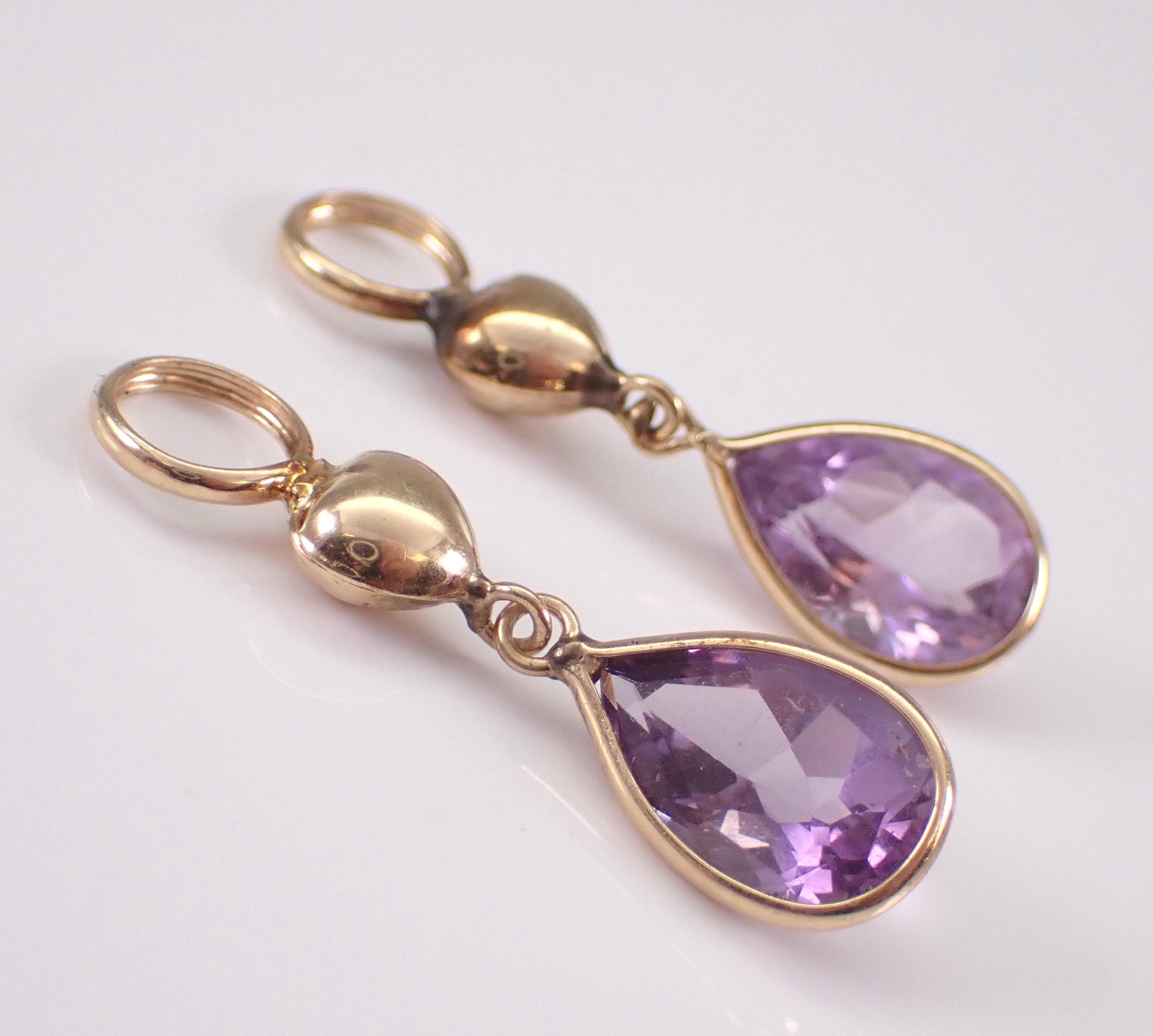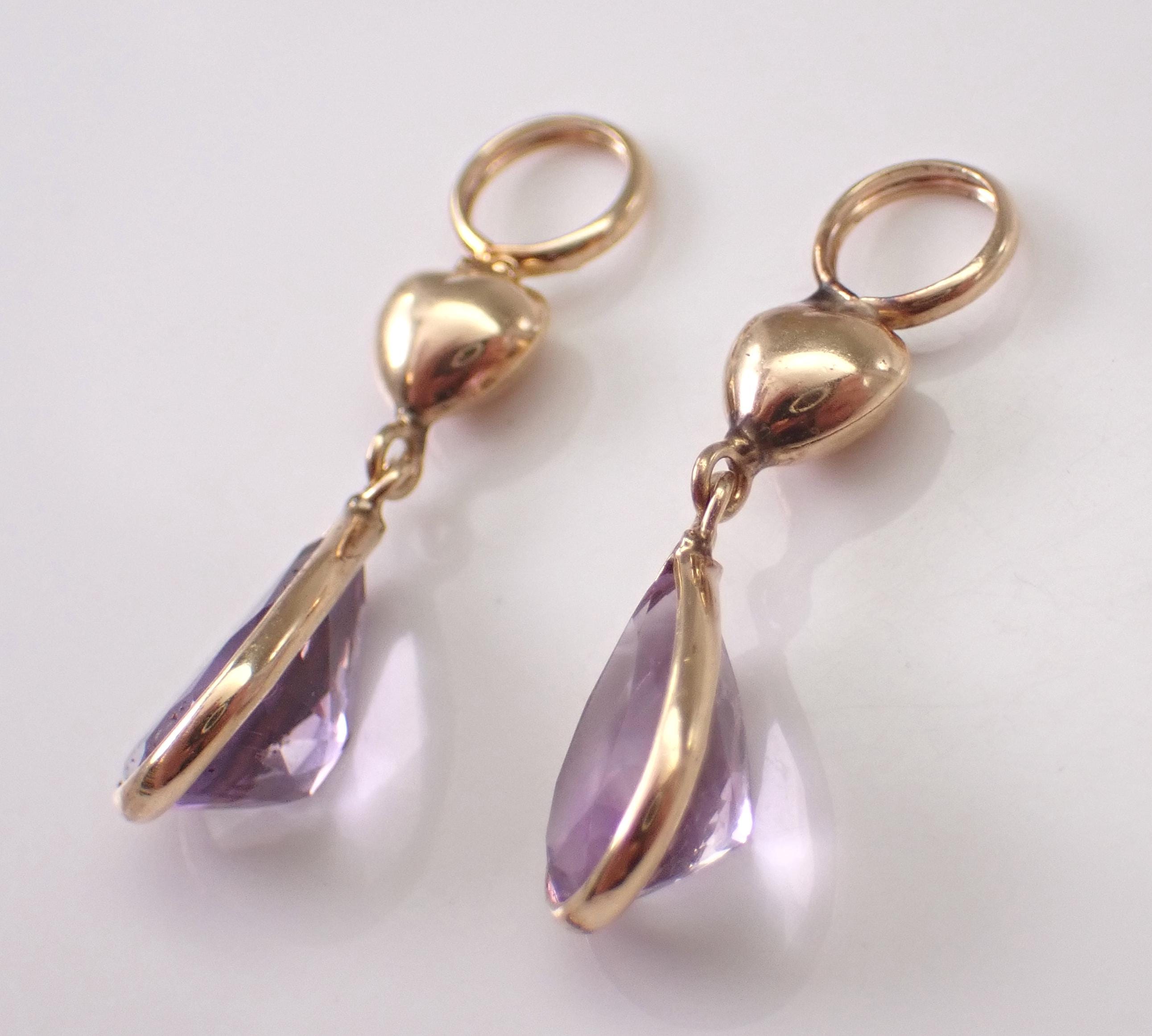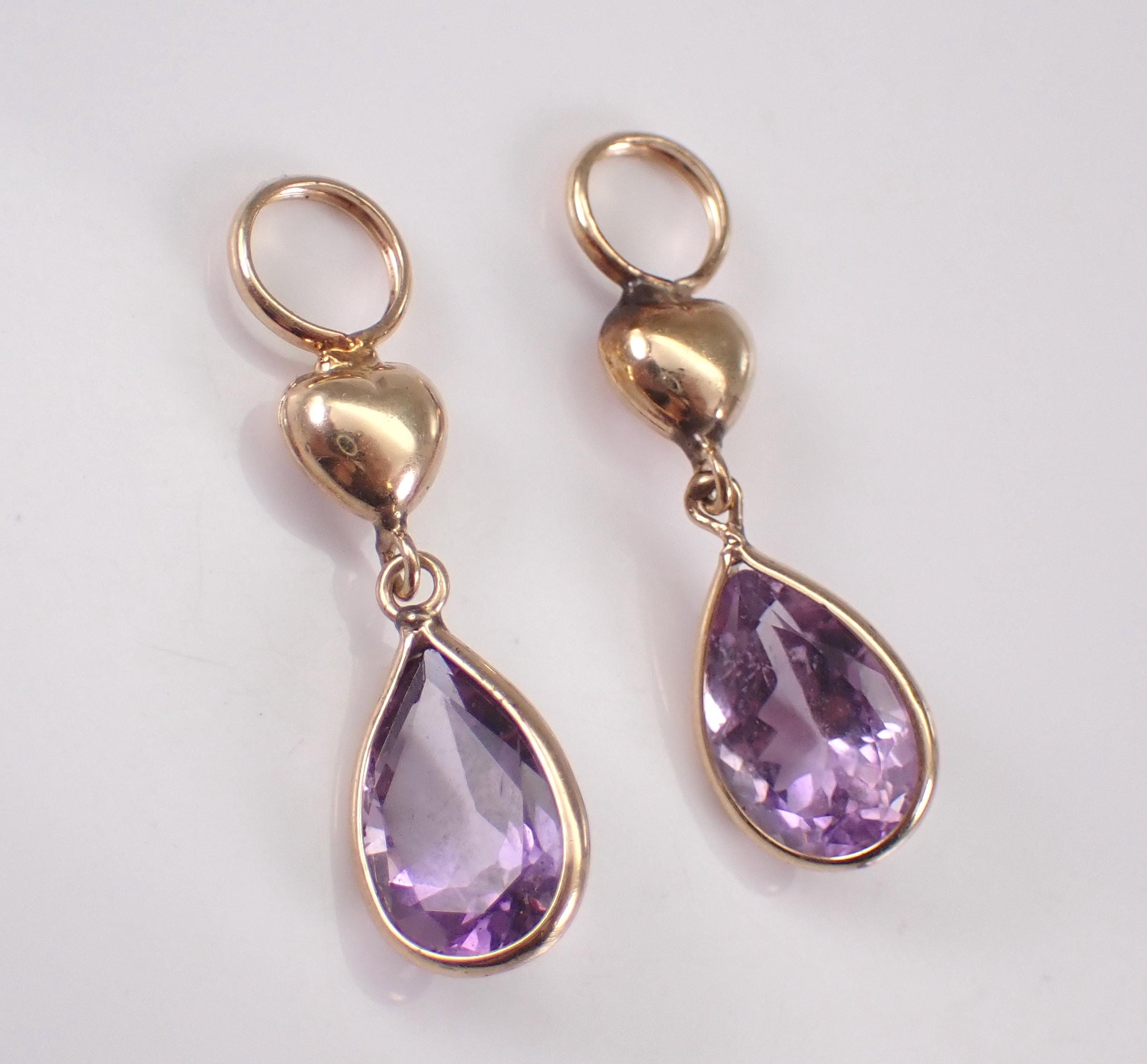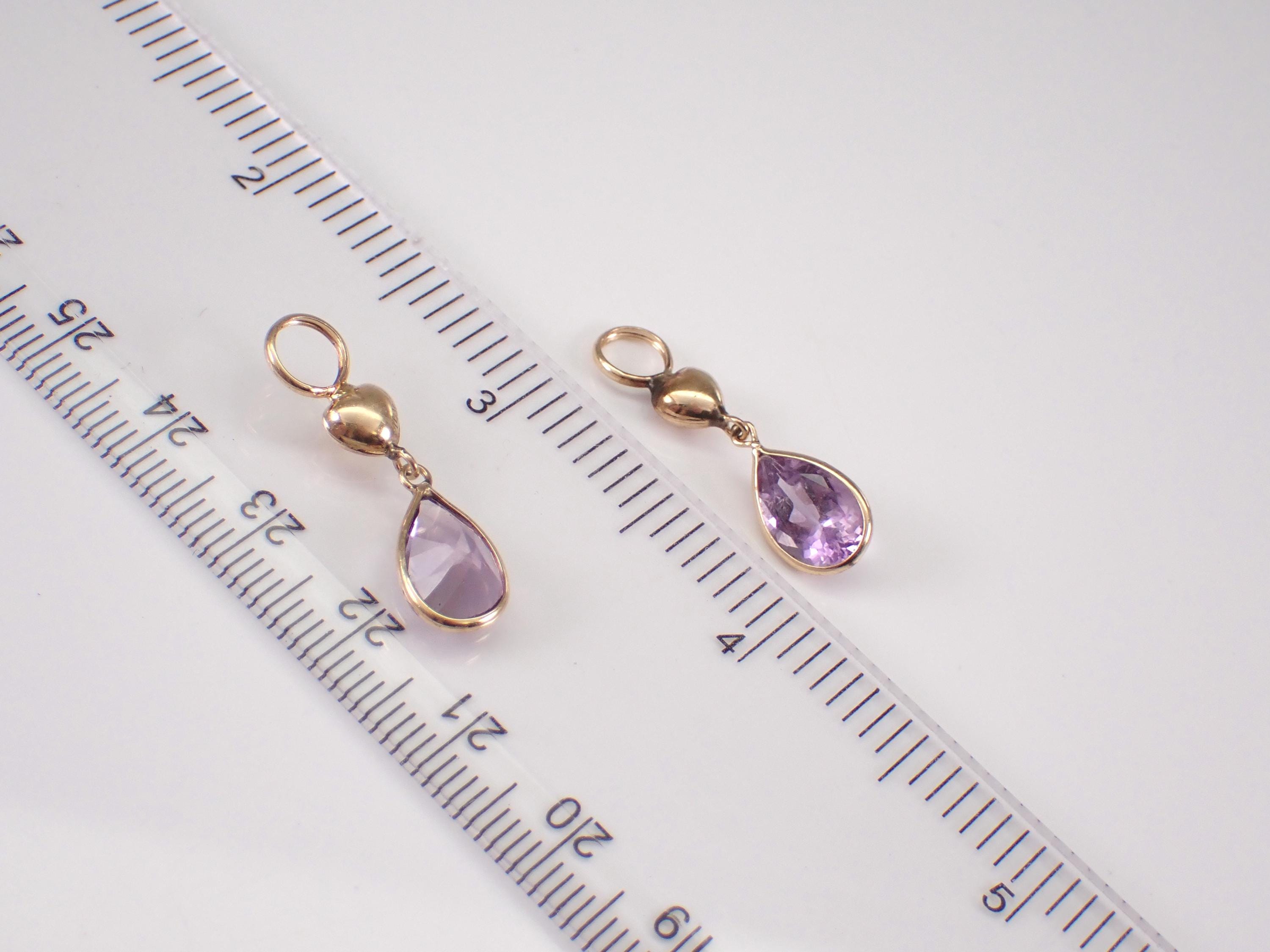 Vintage 14k Yellow Gold Amethyst Teardrop Charms for Earrings.