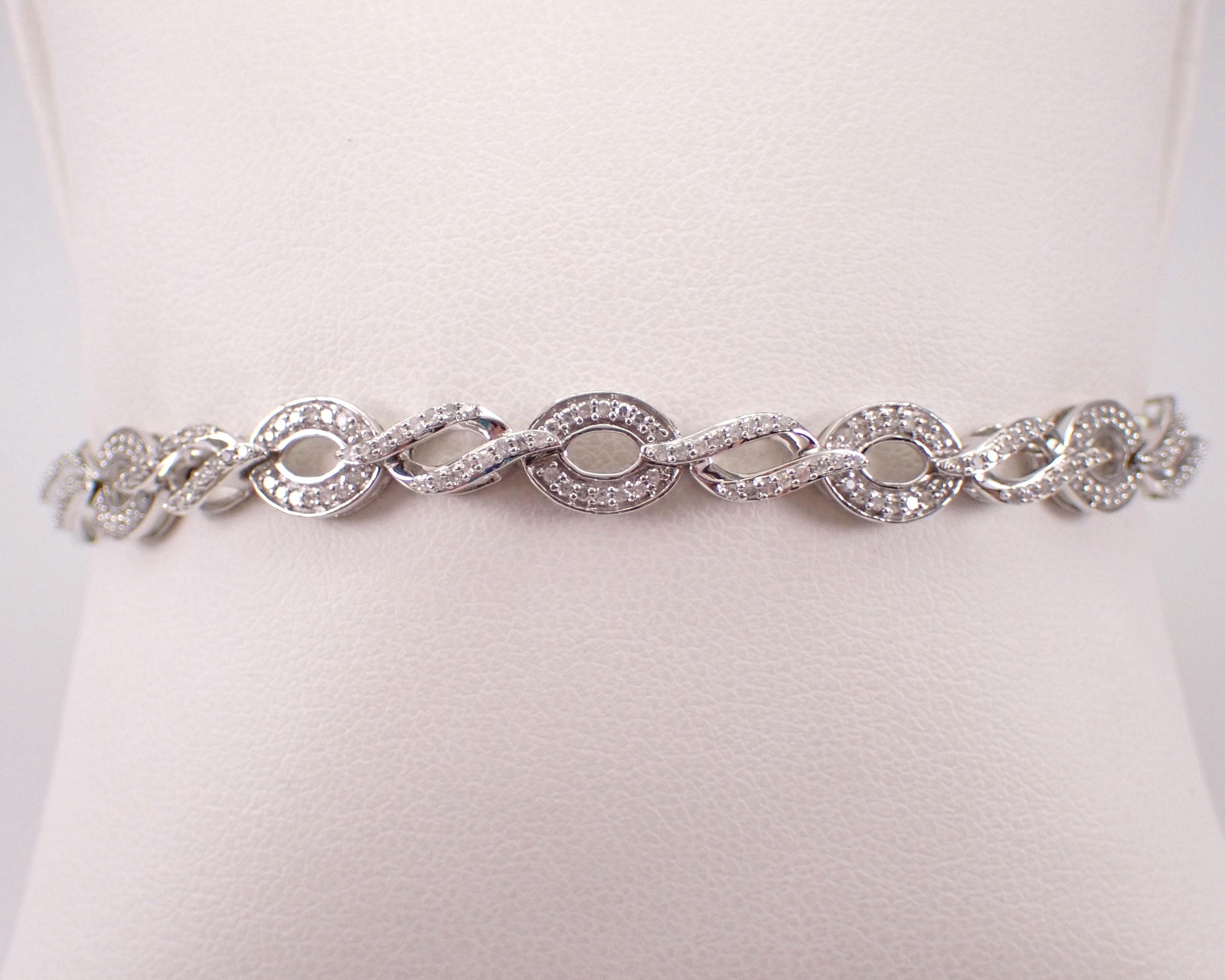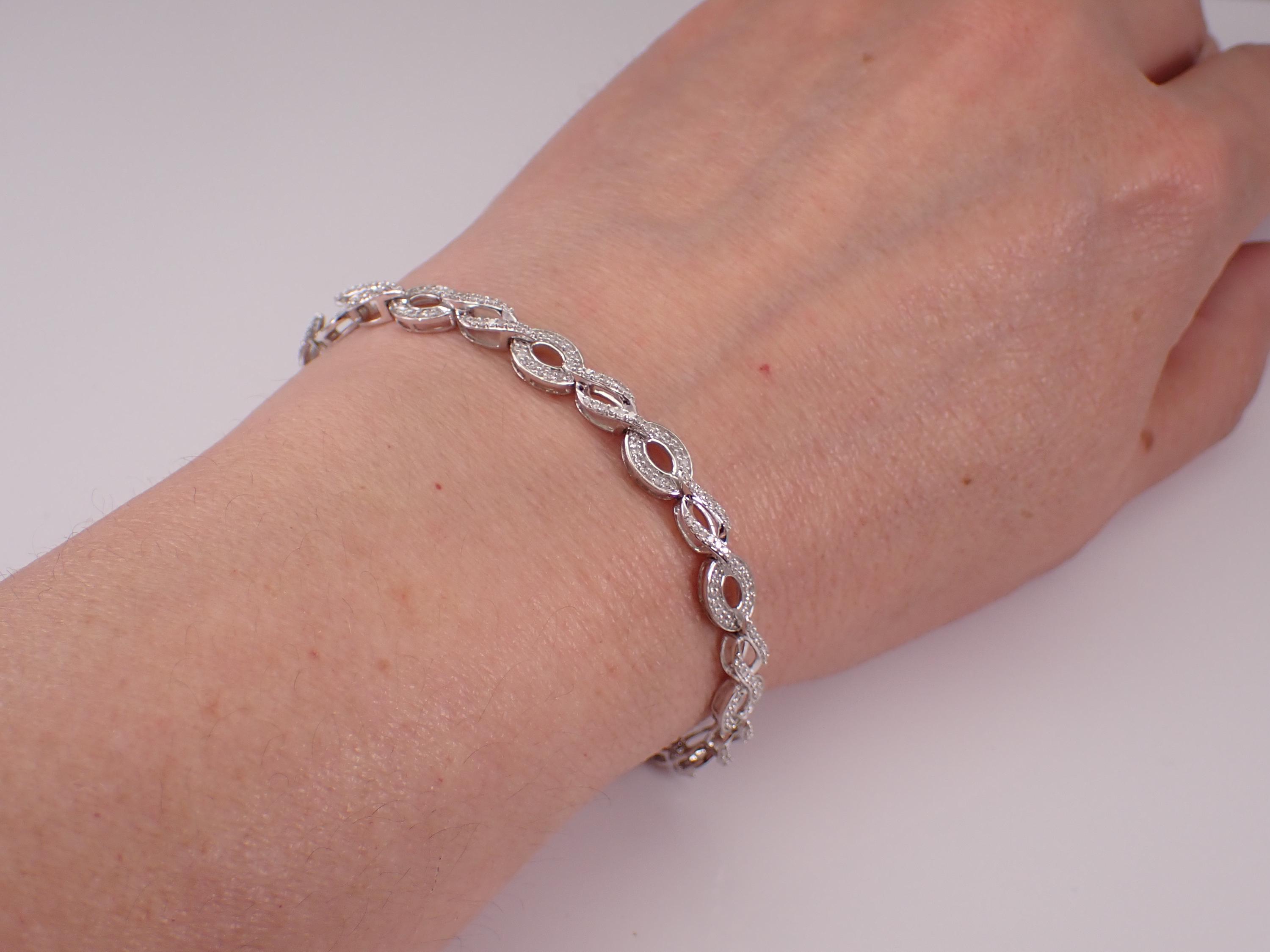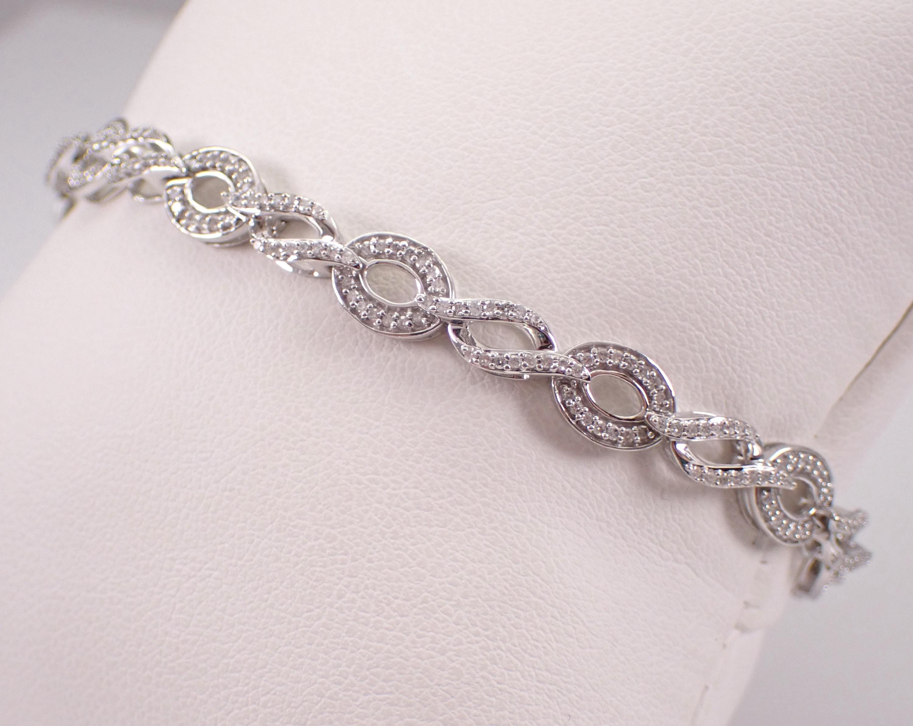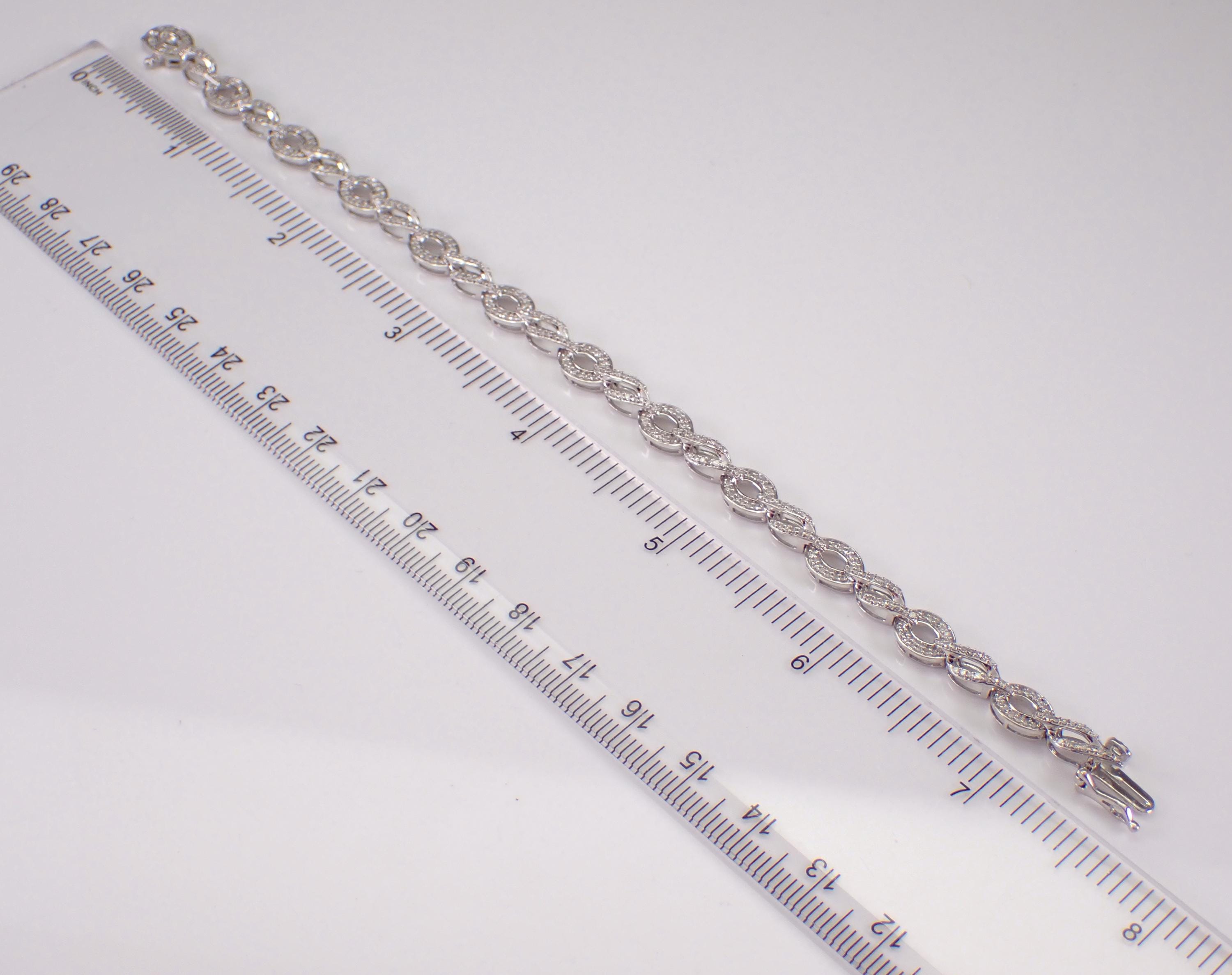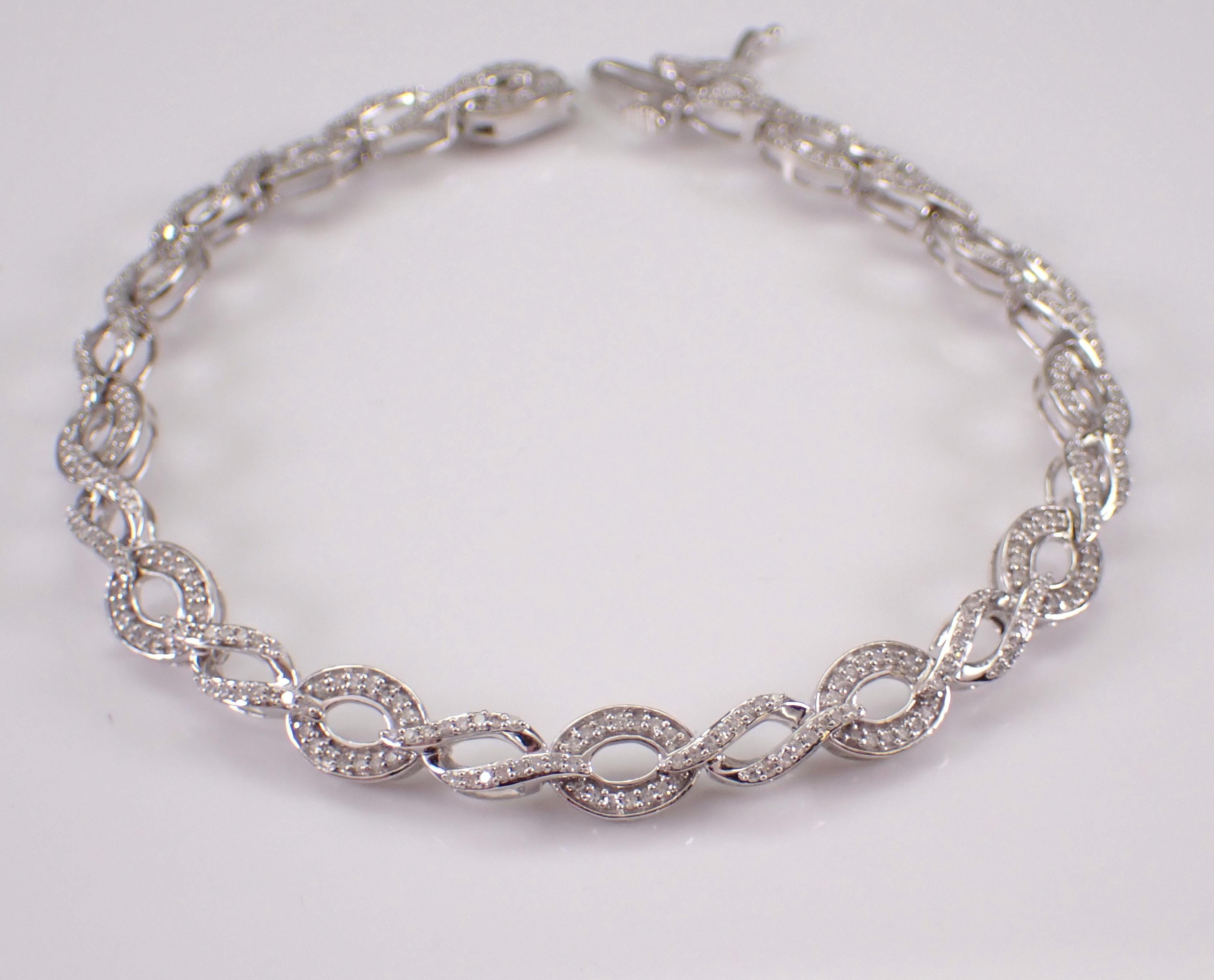 White Gold Diamond Tennis Bracelet. This bracelet is set with three hundred and sixty (360) genuine natural round diamonds. These diamonds are H color, SI/I1 clarity and weigh a total of 1 1/2 carats. This bracelet is 10KT White Gold, weighs 9.4 grams, measures 6.5mm in width and 7.25" in length. This bracelet will be accompanied by an appraisal written by a GIA Certified Diamond Grader with the retail replacement value of $2,995.00. I will ship this bracelet promptly in a beautiful gift box.
