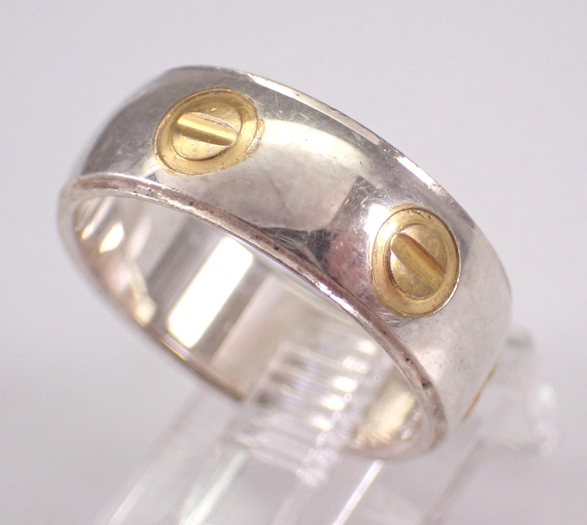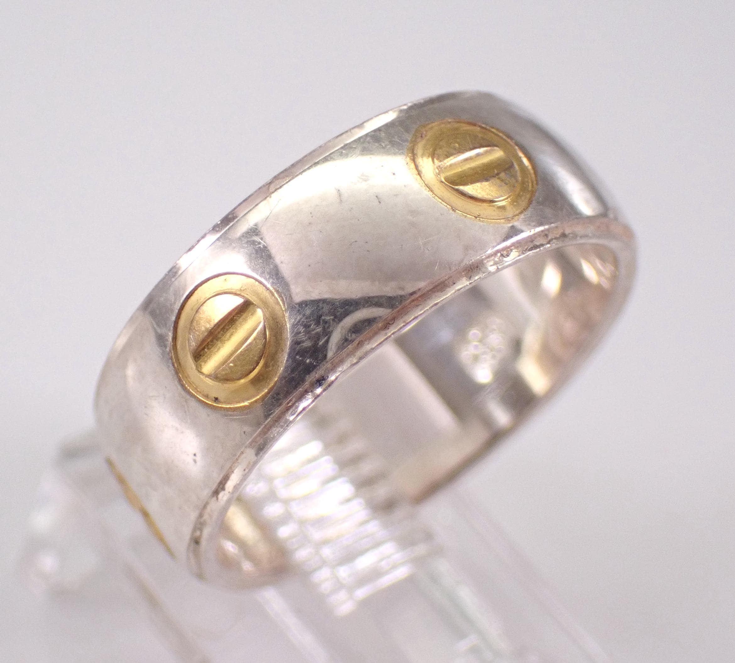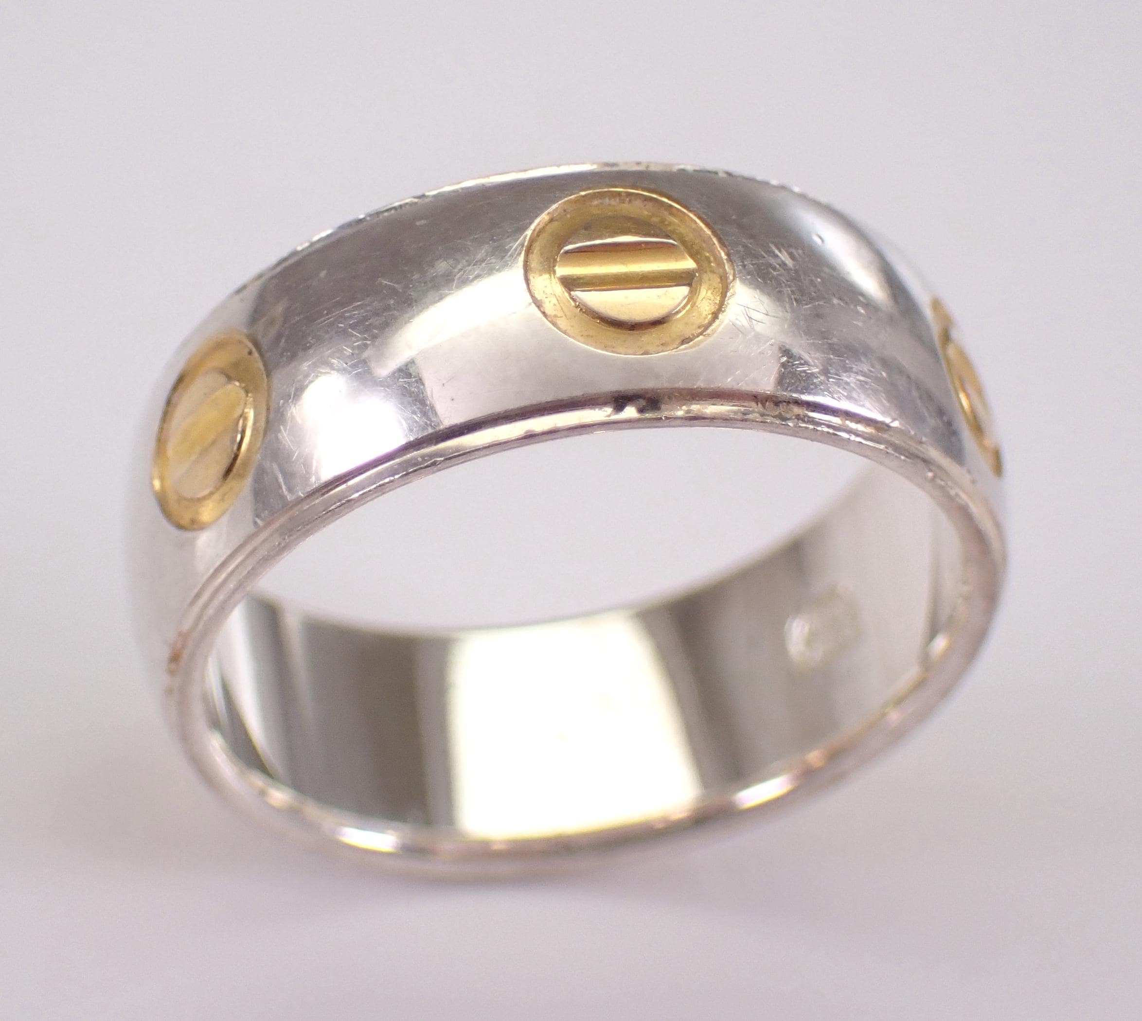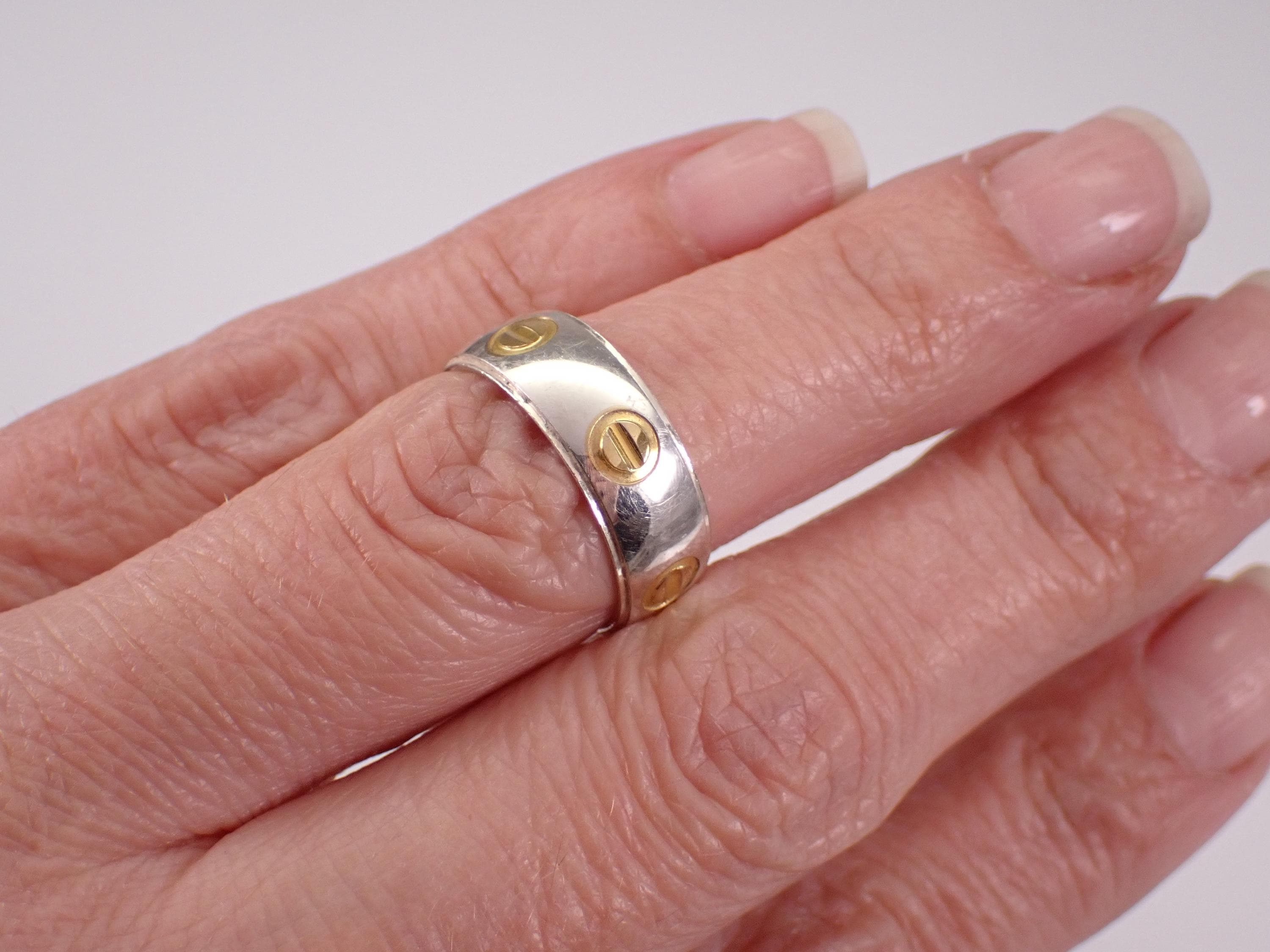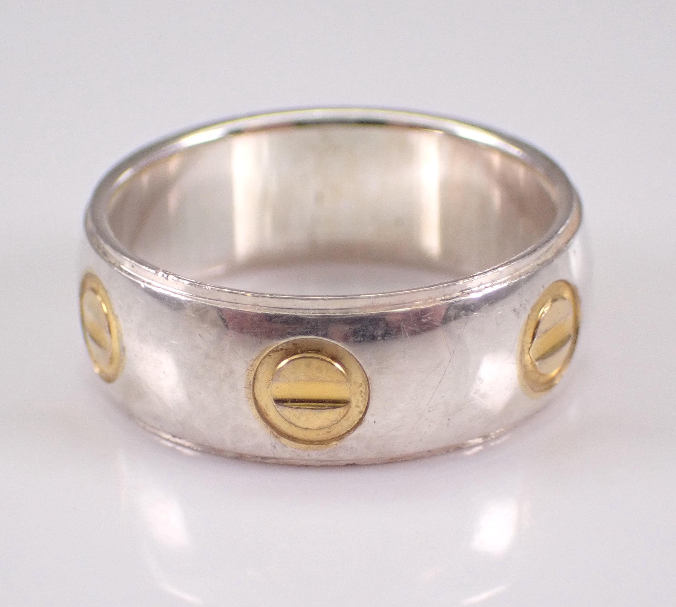 Vintage Wedding band made of Solid Sterling Silver (925). This band has a unique two toned design throughout. This ring weighs 4.5 grams, measures 6.5 mm in width and is a finger size 6. The rings will be shipped promptly in a gift pouch.