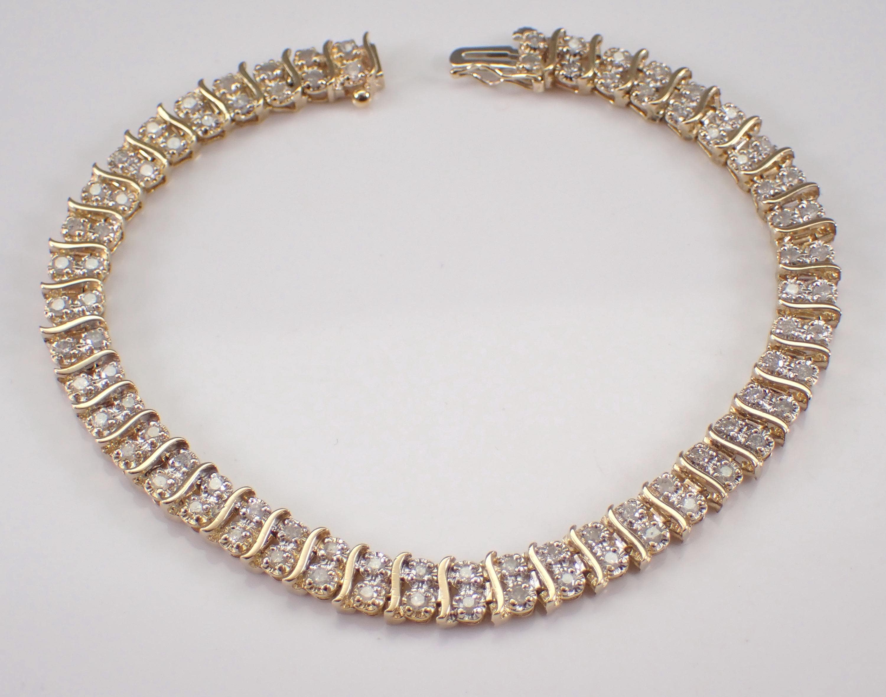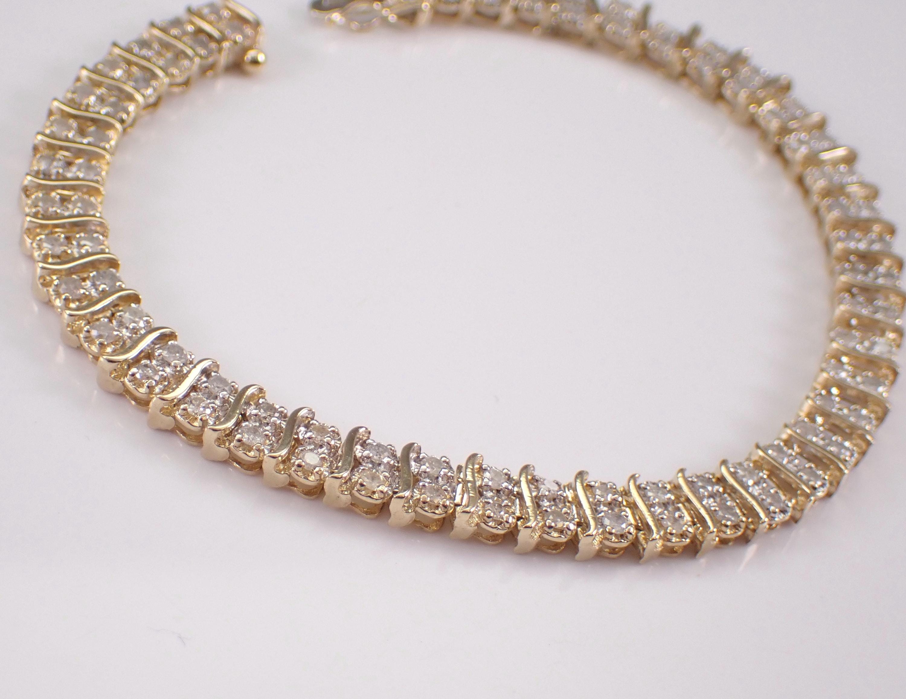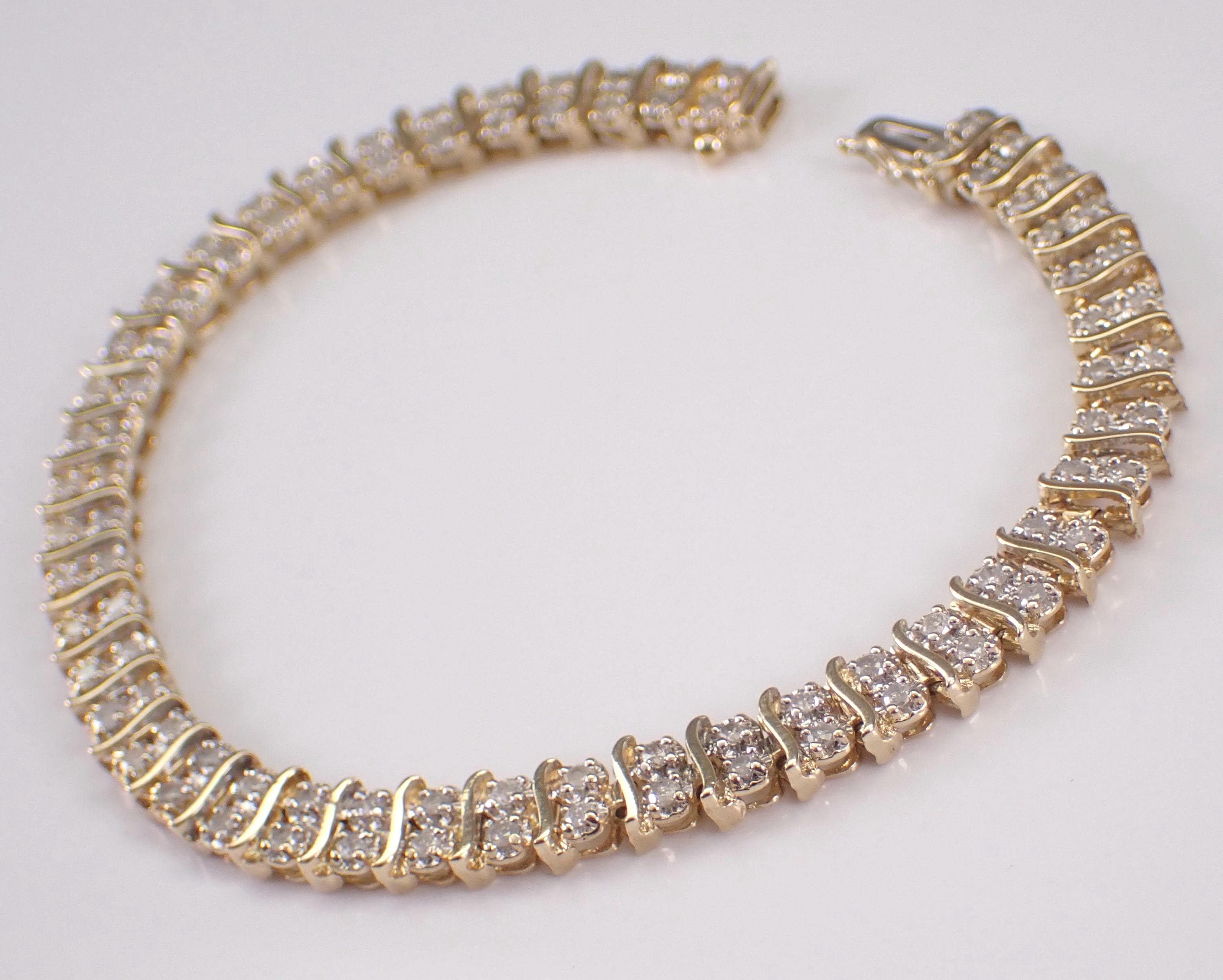 14K Yellow Gold Diamond Tennis Bracelet. This bracelet is set with eighty-eight genuine Round Diamonds. These diamonds are H color, I1 clarity and weigh a total of 1 1/4 carats. The bracelet is 14K Yellow Gold, weighs 13.3 grams, measures 6 mm in width and 7" in length. This bracelet will be accompanied by an appraisal for insurance and authentication purposes. I will ship this bracelet promptly in a gift box.