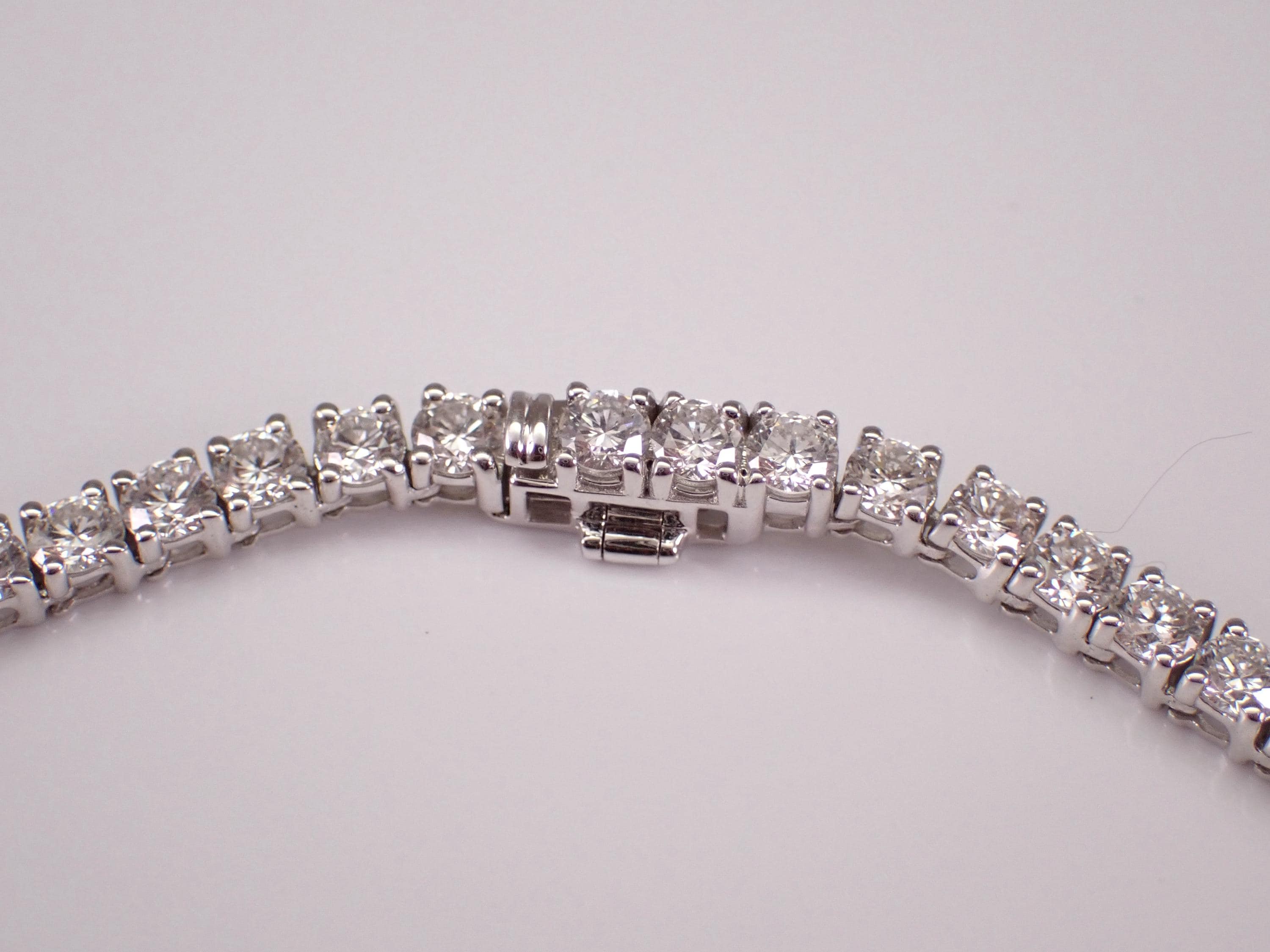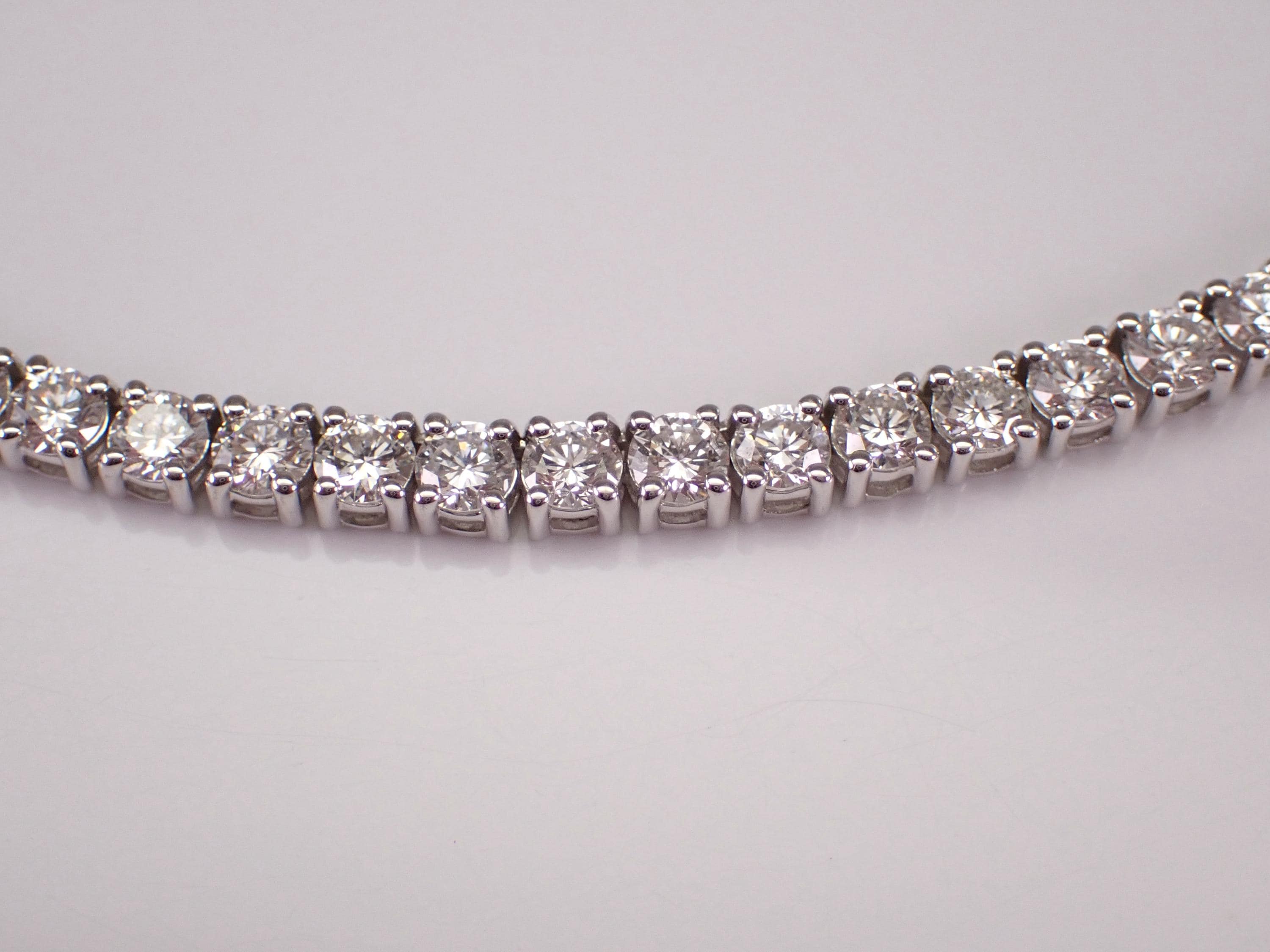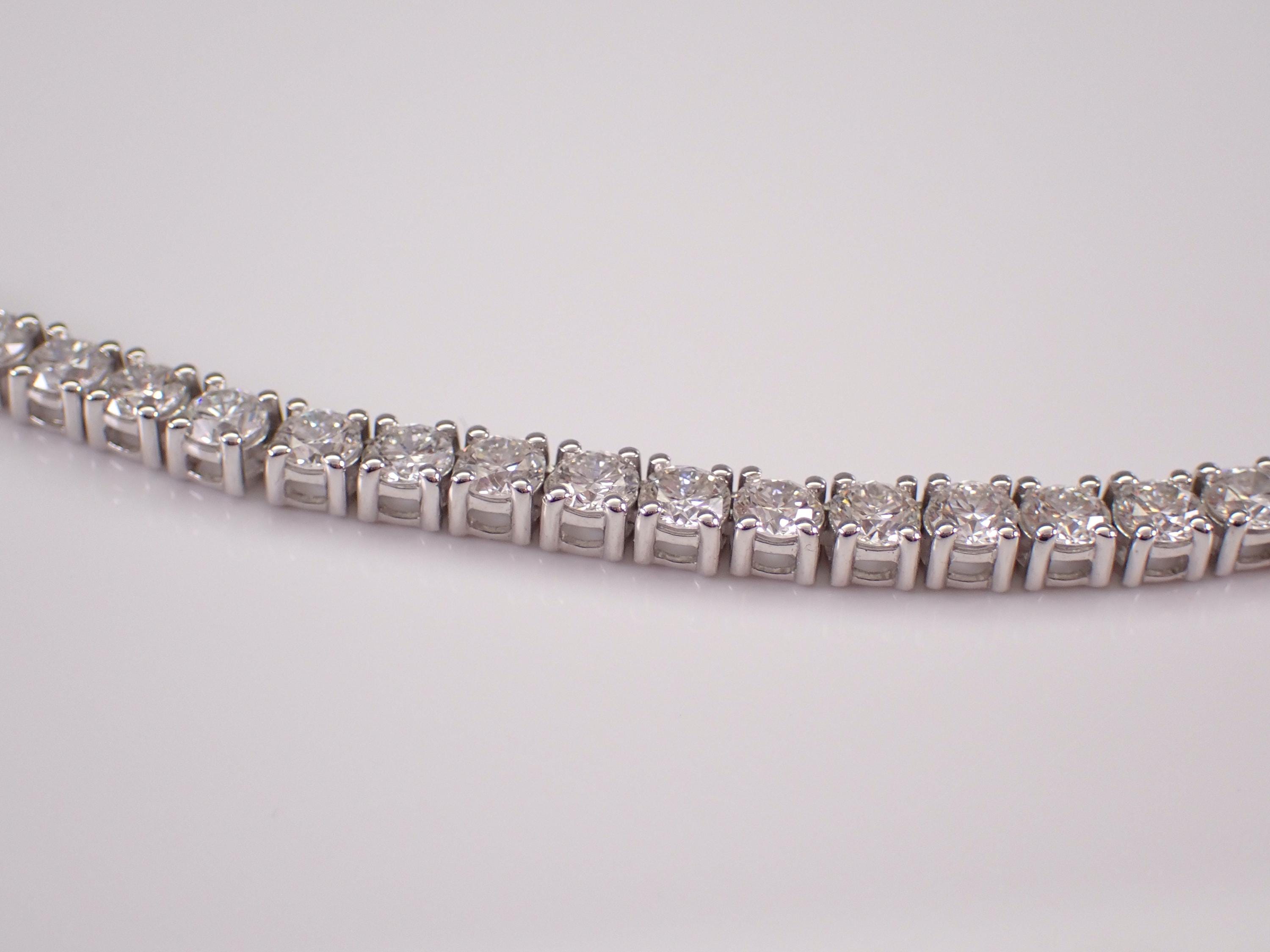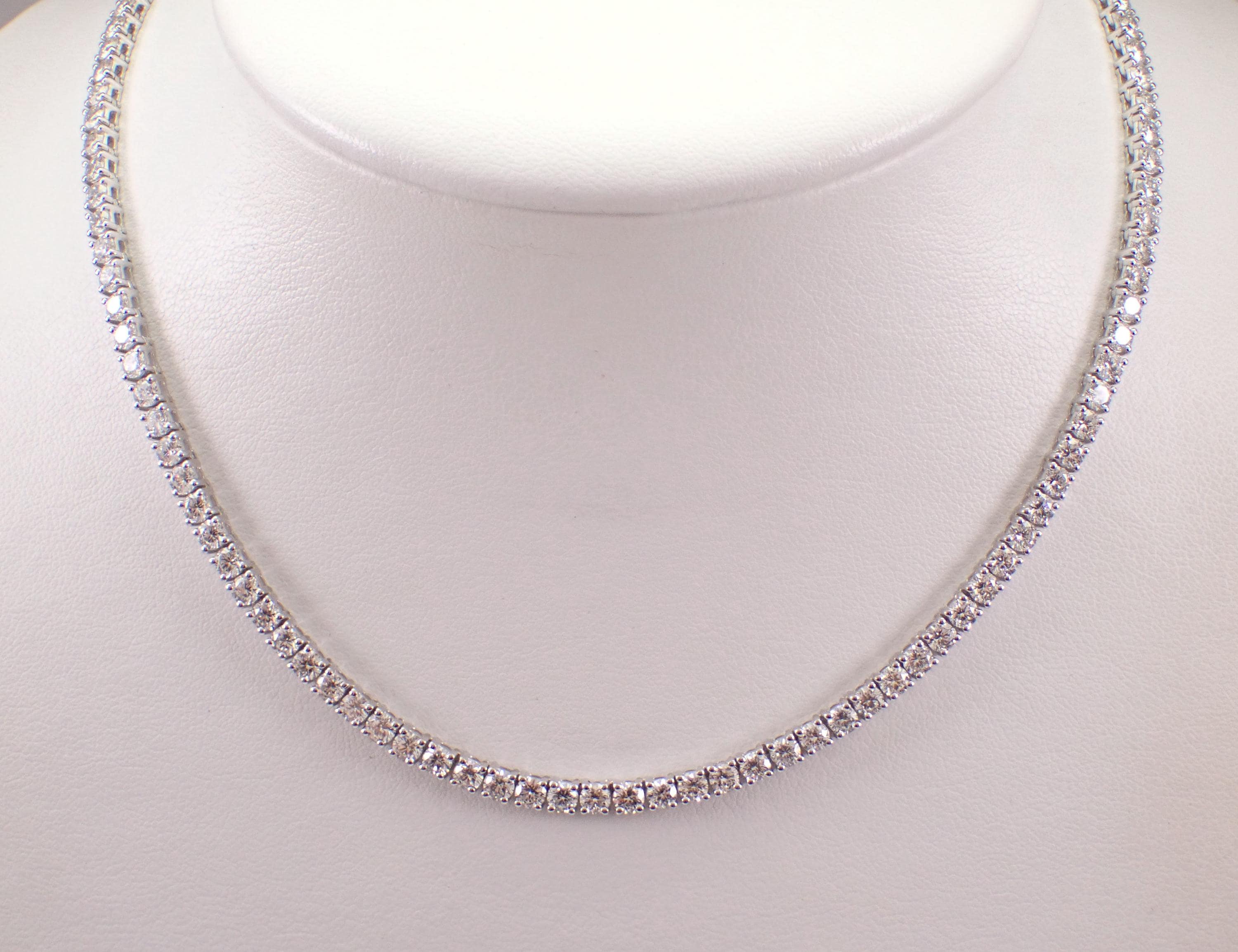 14K White Gold Diamond Tennis Necklace. This necklace is set with Lab Grown Round Brilliant Diamonds. These diamonds are F color, VS1 clarity and weigh a total of 15.21 carats. This necklace is 14KT White Gold and measures 16" in length. This necklace weighs 18.2 grams and will be accompanied by an appraisal for insurance and authentication purposes. I will ship this necklace promptly in a beautiful gift box.