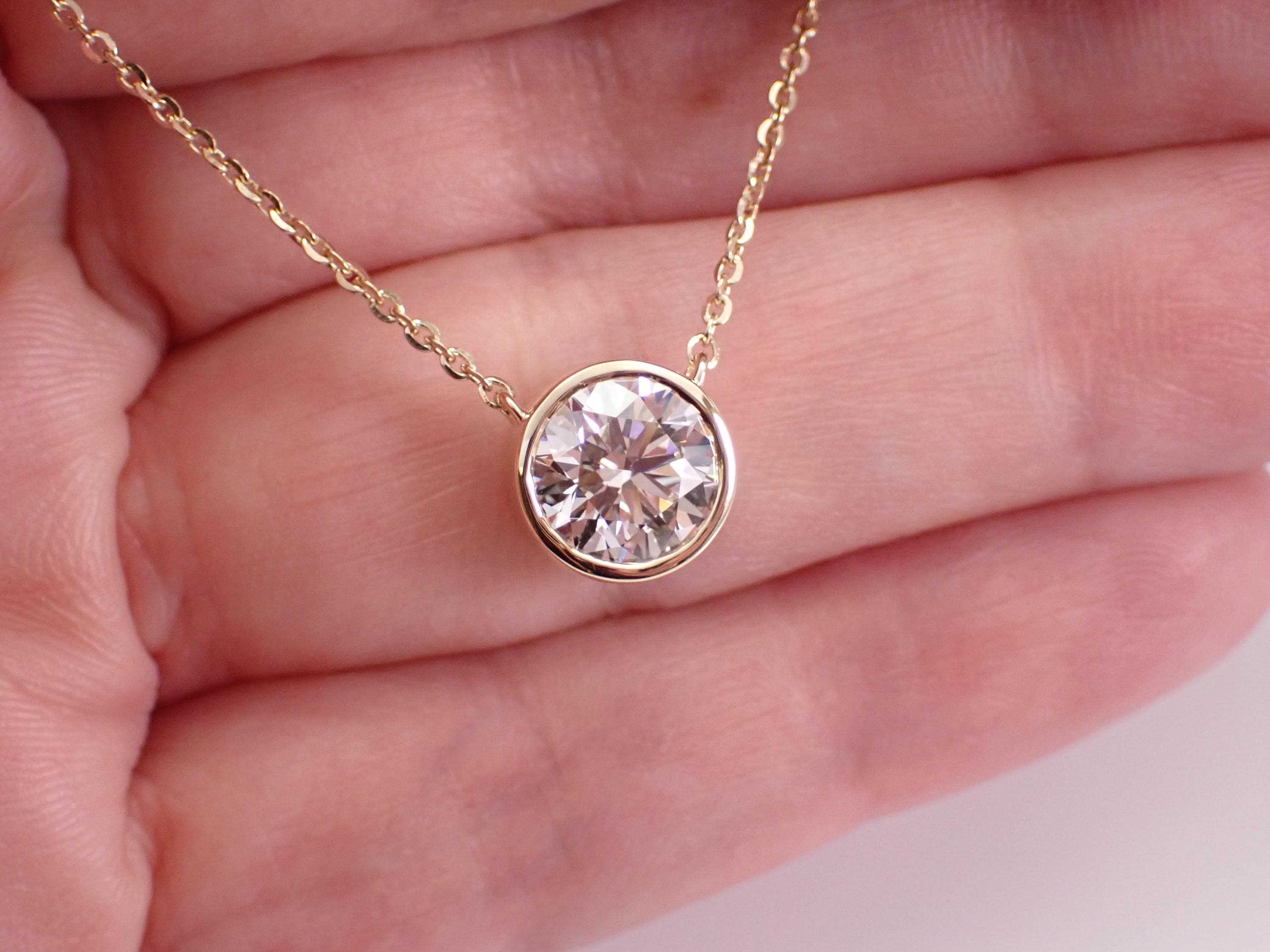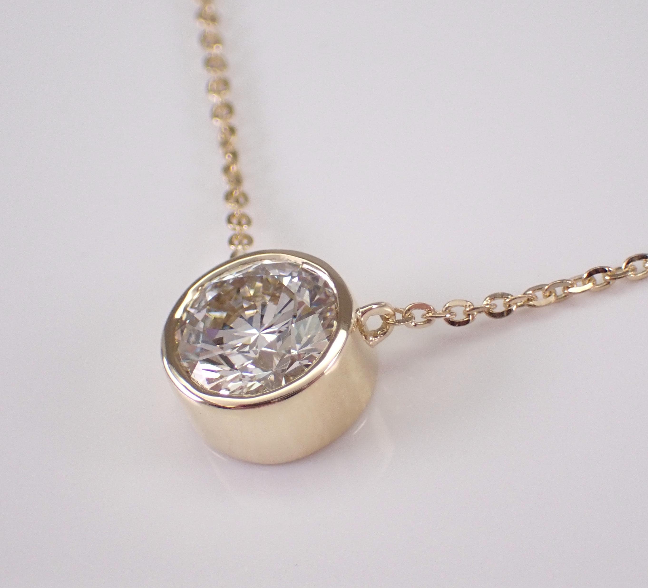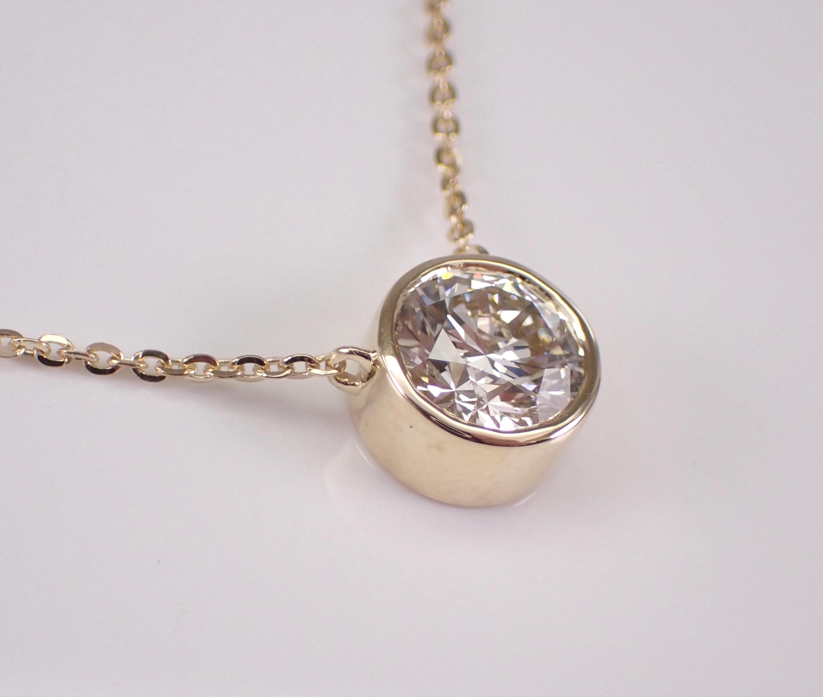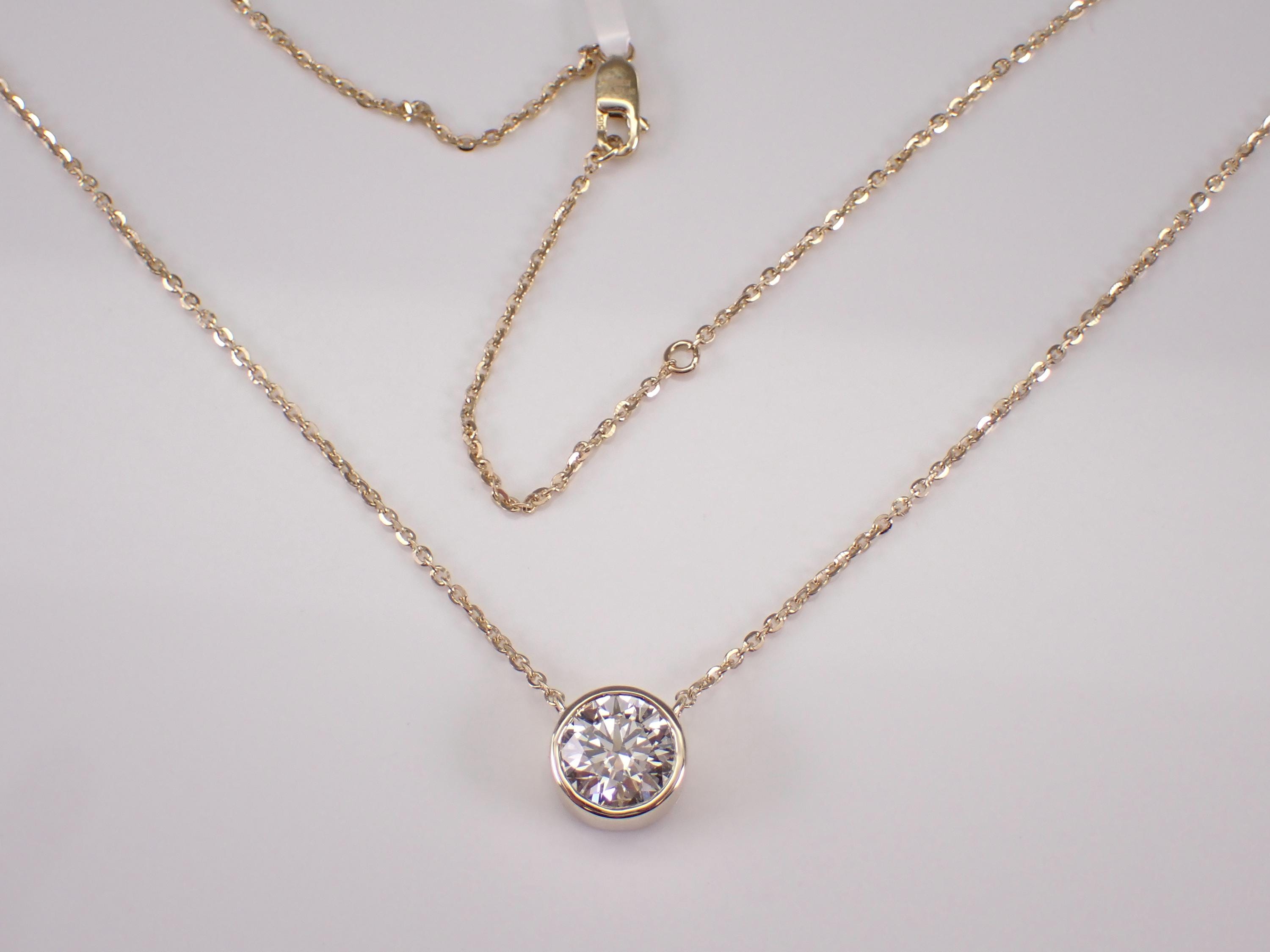 Looking for a stunning diamond pendant that will take your breath away? Look no further than this exquisite Diamond Solitaire Pendant! Made from 14K yellow gold, this pendant features a breathtaking 2.02 carat Round Brilliant Diamond that is sure to capture attention from every angle. The diamond is bezel set to ensure it stays in place and sparkles with every move you make.