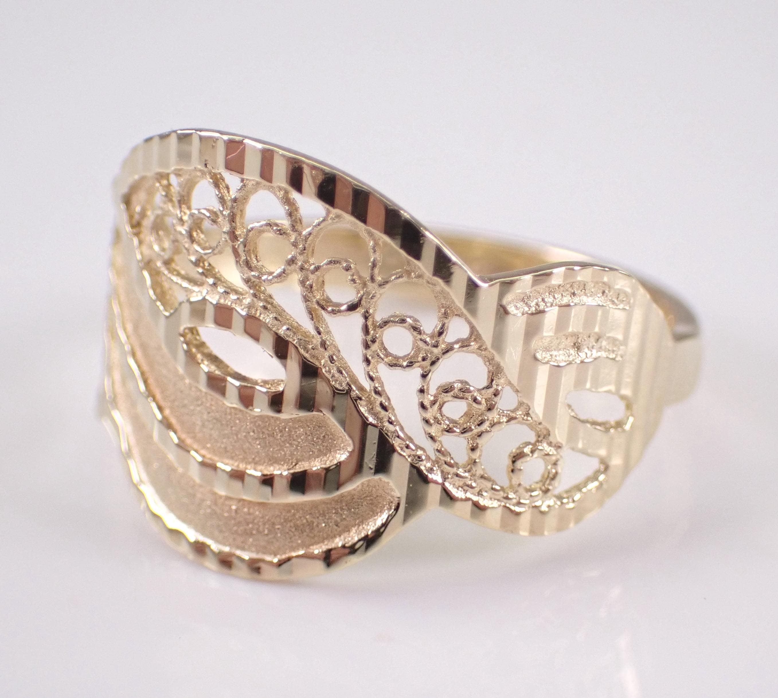 Vintage 14K Yellow gold ring. This ring is 14K Yellow Gold, weighs 1.9 grams and is a finger size 6 1/4, which can be resized. This ring measures 12 mm in width. I will ship this ring promptly in a beautiful gift box.