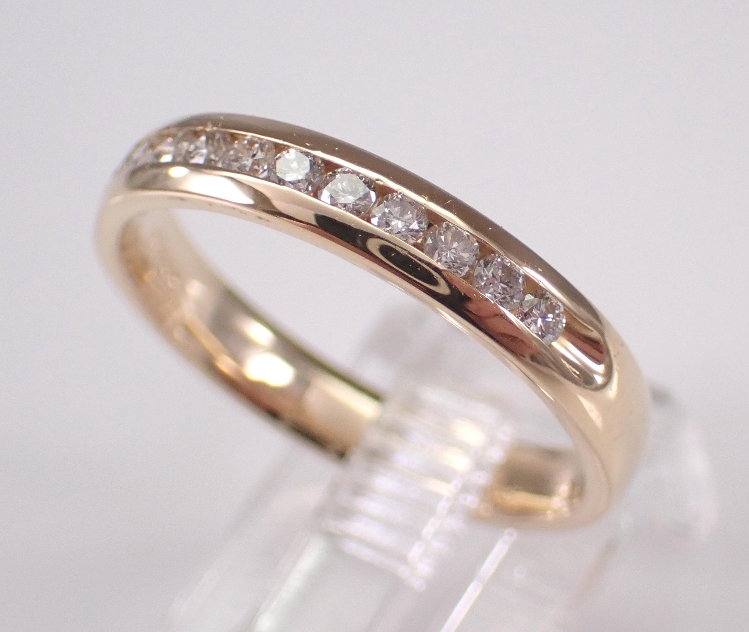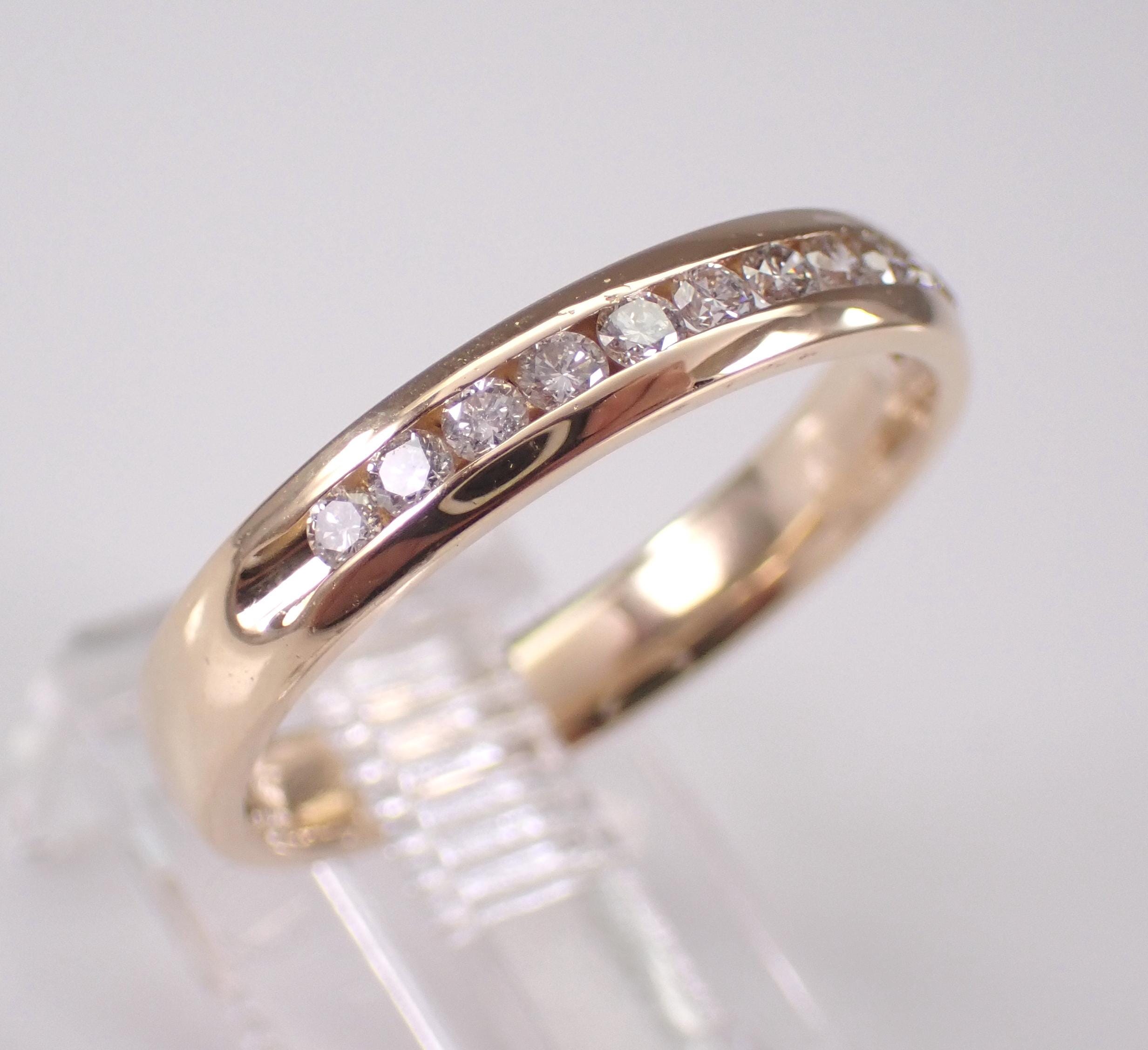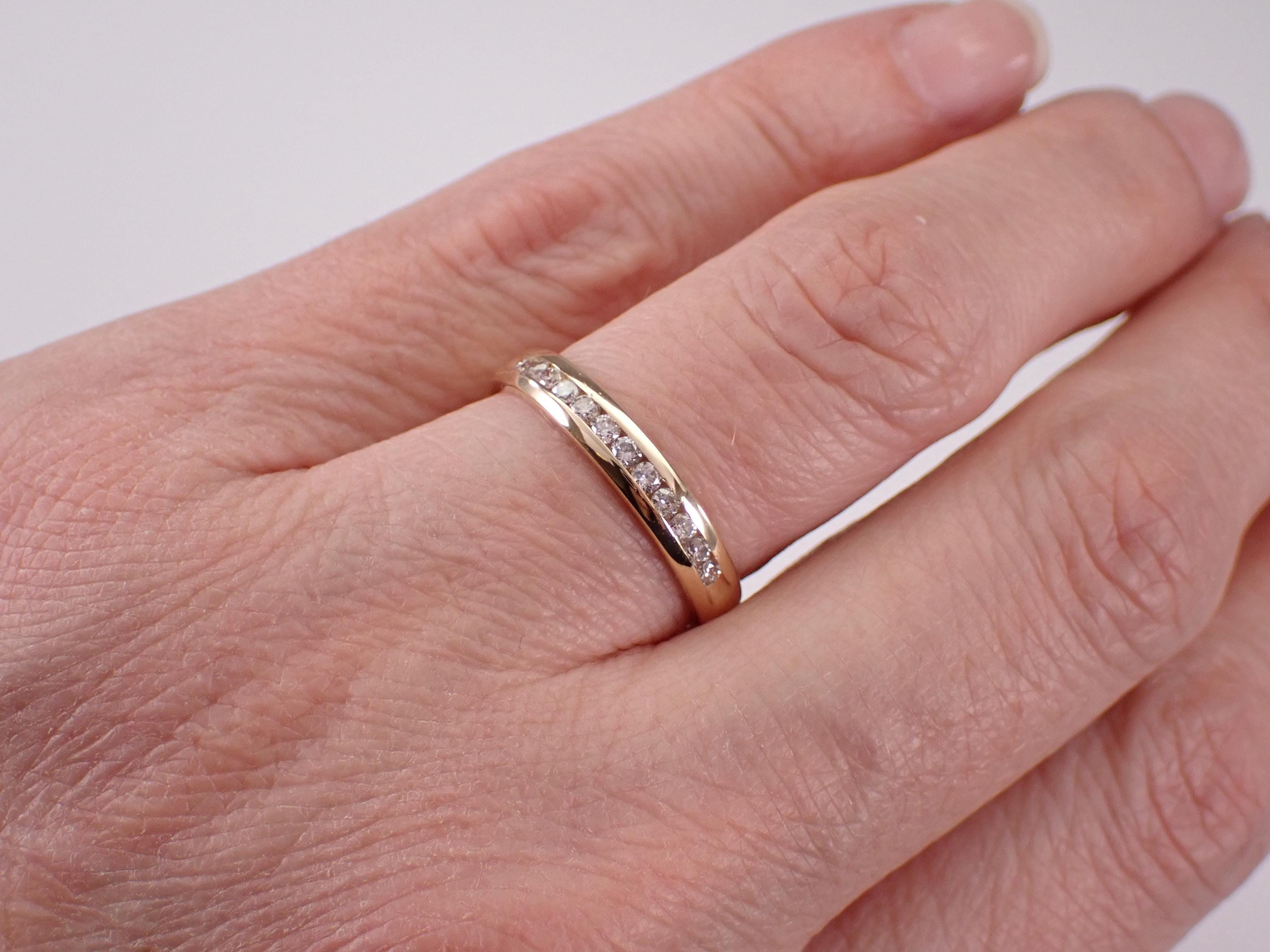 14K Yellow Gold Diamond Wedding Ring Anniversary Band. This ring is set with twelve genuine round brilliant diamonds. These diamonds are H color, SI1 clarity and weigh a total of .25 carat. This ring is 14KT Yellow Gold, weighs 3.0 grams, measures 3 mm in width and is a finger size 7 1/4, can be resized (please inquire about sizing with the finger size you need). This ring will be accompanied by an appraisal for insurance and authentication purposes. I will ship this ring promptly in a beautiful gift box.