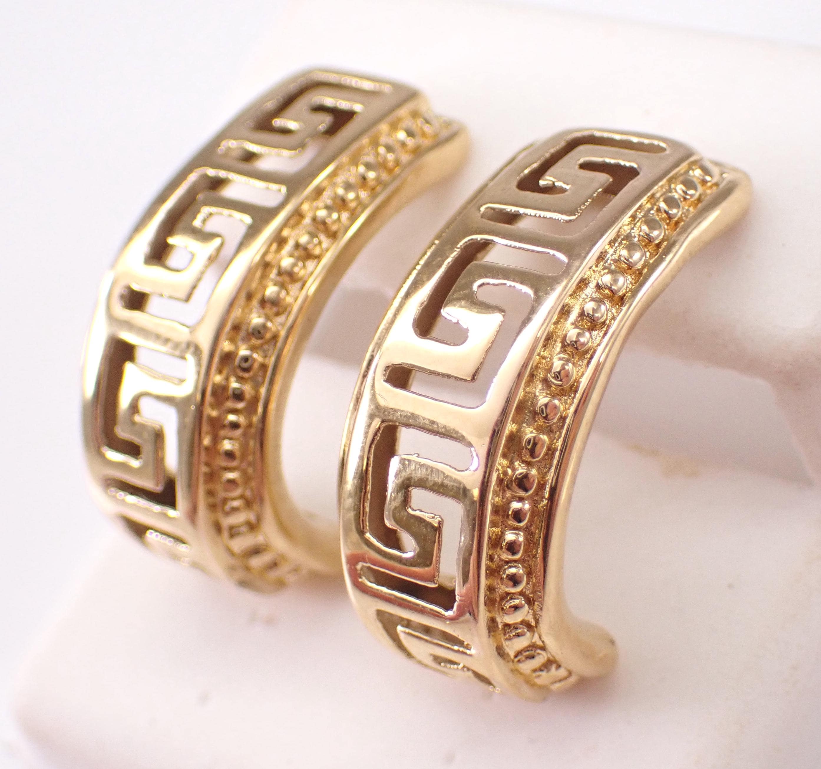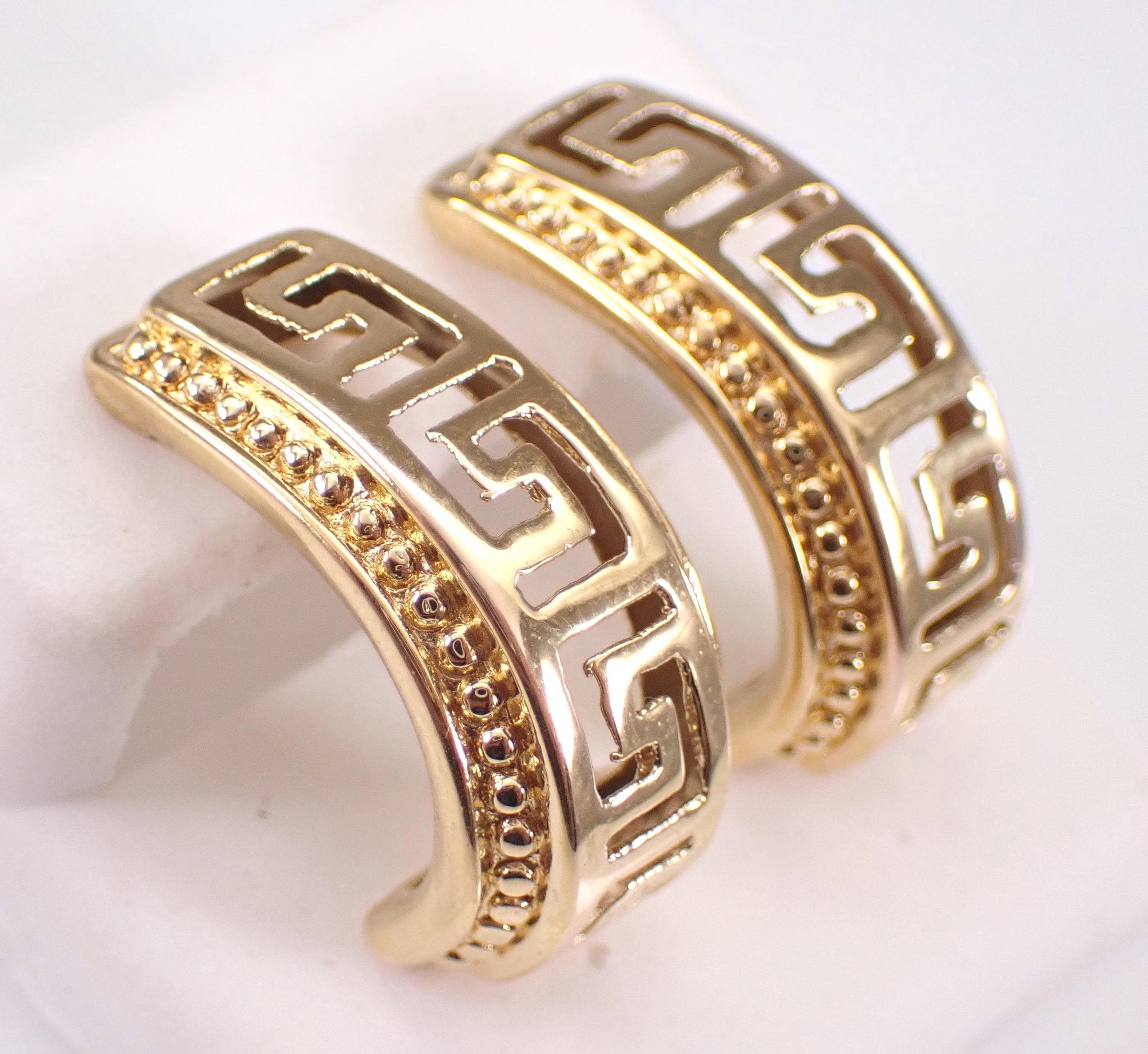 Vintage 14K Yellow Gold Half Hoop Earrings. These earrings weigh 2.6 grams and have friction back posts for pierced ears. These earrings measure 23 X 10 mm. I will ship these earrings promptly in a gift box.