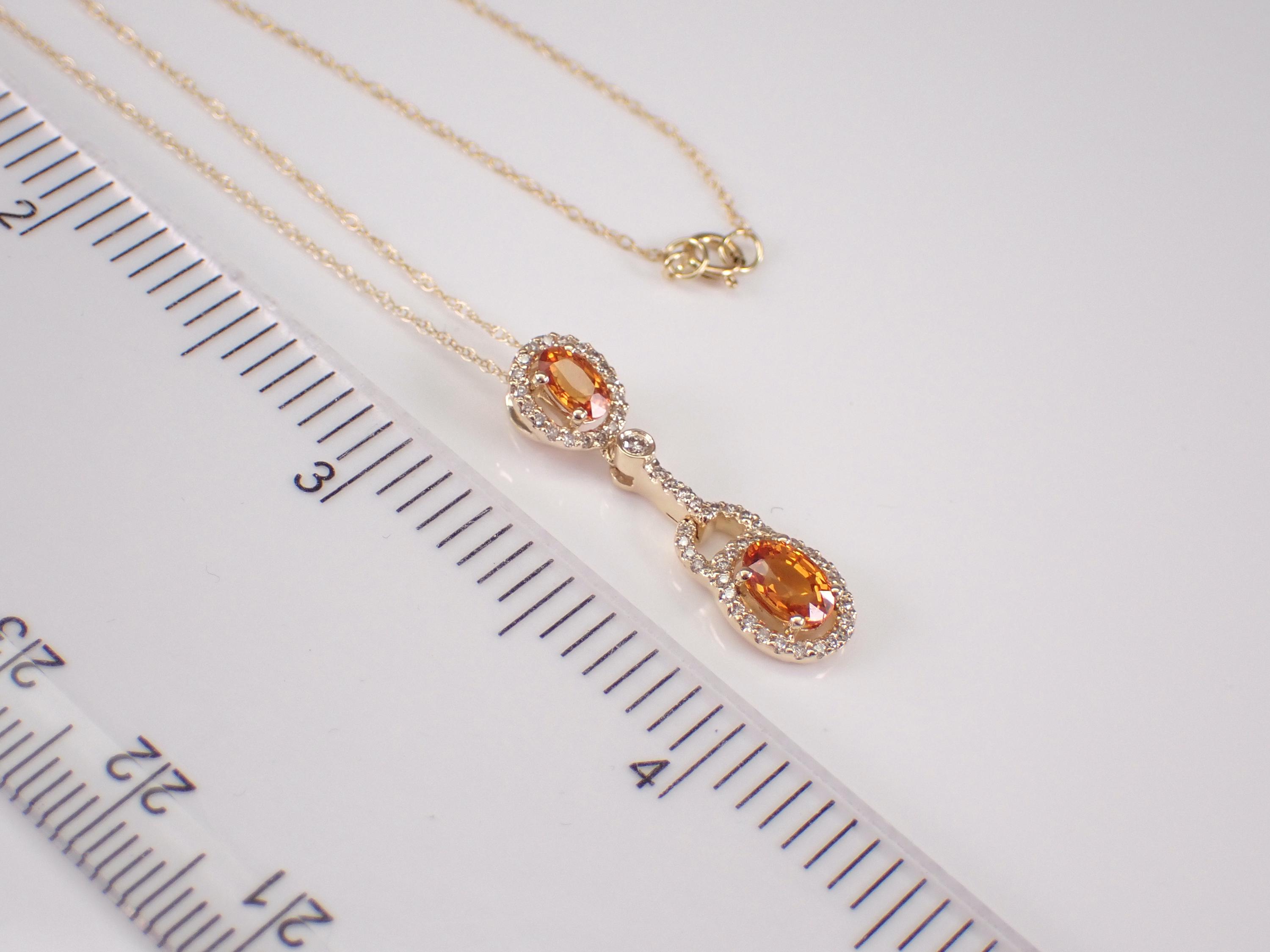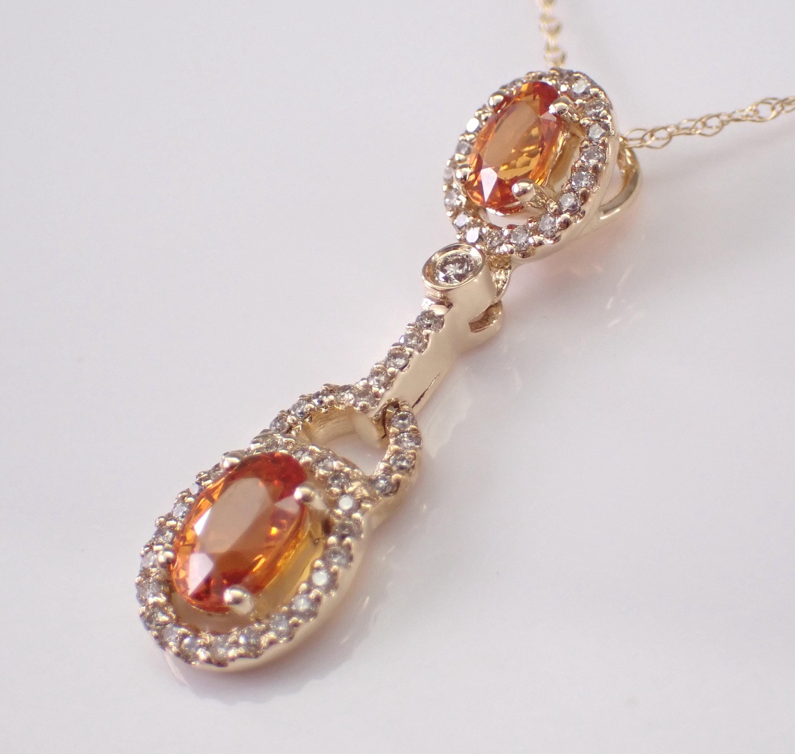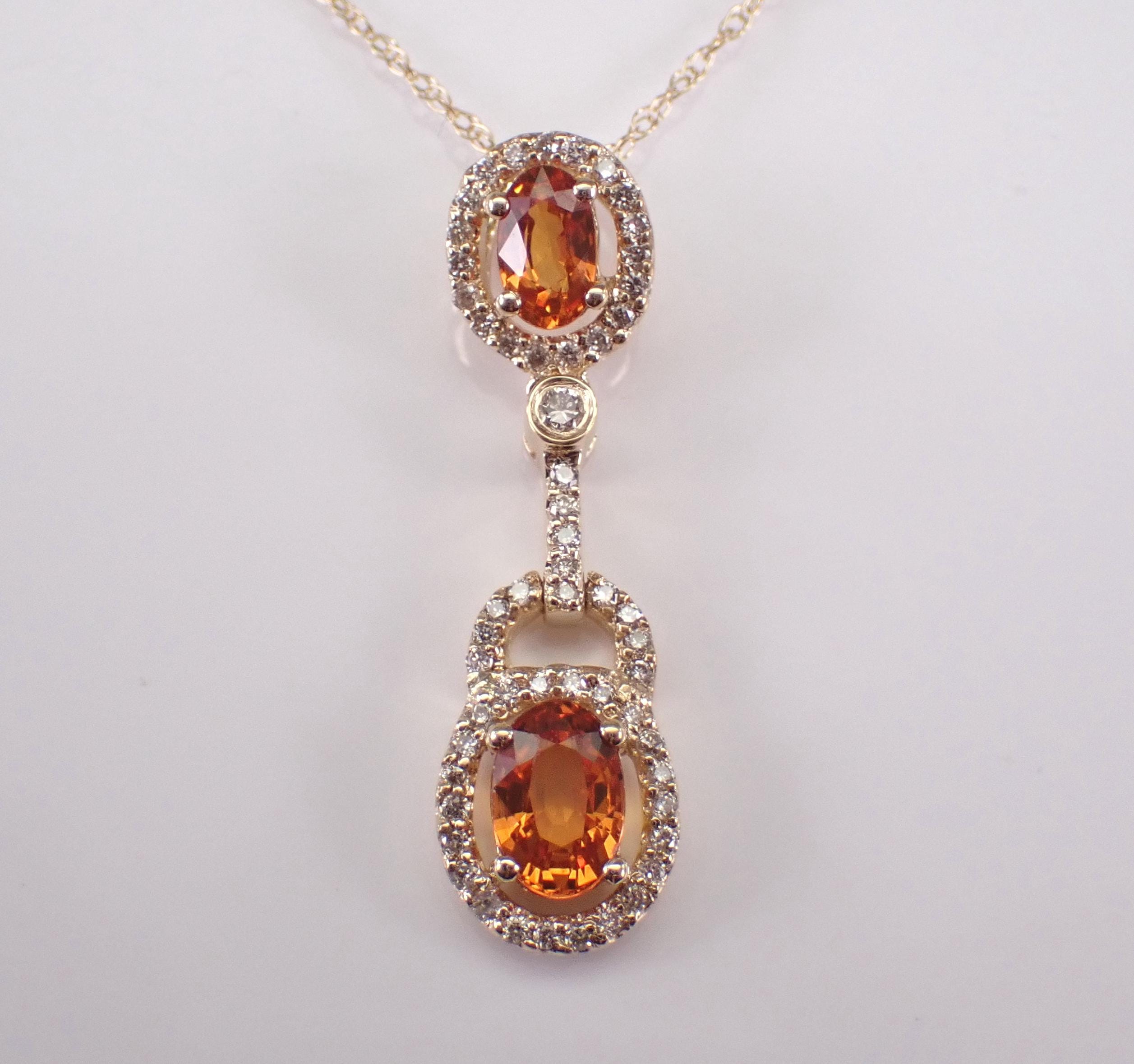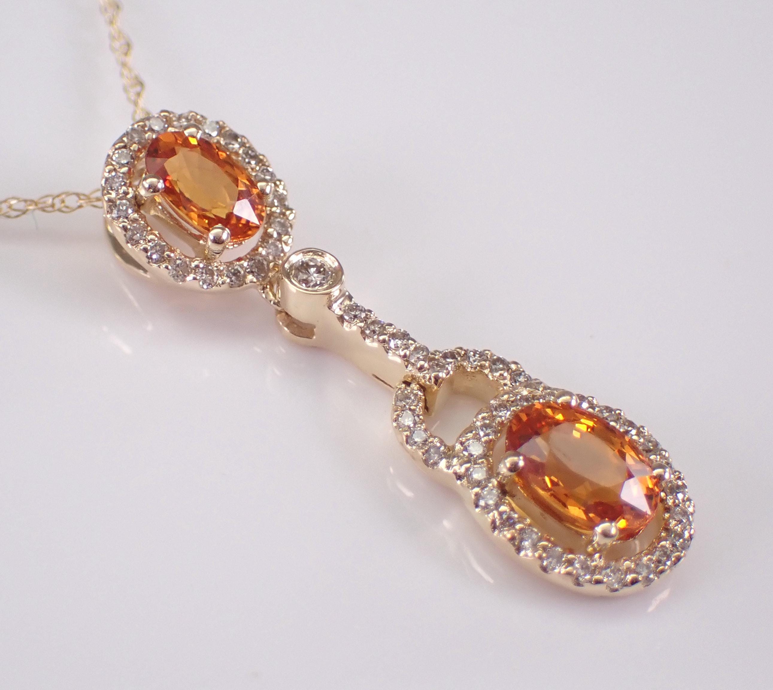 14K Yellow Gold Diamond and Citrine Necklace with Chain. This necklace is set with two Oval Citrine and fifty-three natural Round Brilliant Diamonds. The Citrine measures 5 X 3 mm and 6 X 4 mm and weigh a total of 1 1/4 carats. The diamonds in this pendant are H color, SI clarity and weigh a total of .20 carat. The pendant is 14K Yellow Gold and comes with an 18" 14K Yellow Gold chain and together weigh 2.1 grams. The pendant measures 25 mm in length. This necklace will be accompanied by an appraisal written by a GIA Certified Diamond Grader with the retail replacement value of $2,689.00. I will ship this necklace promptly in a beautiful gift box.