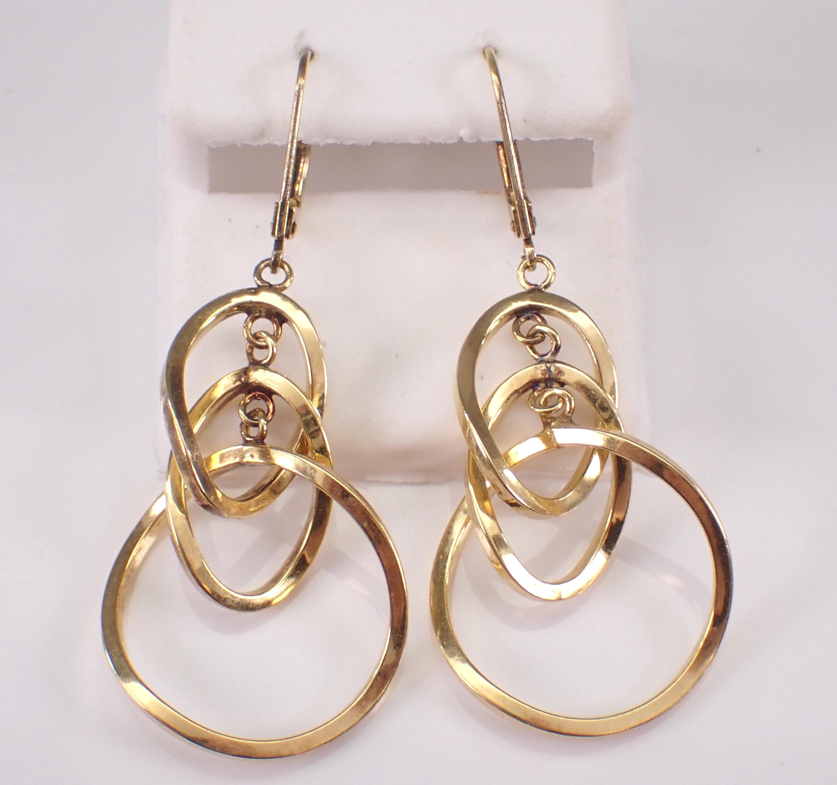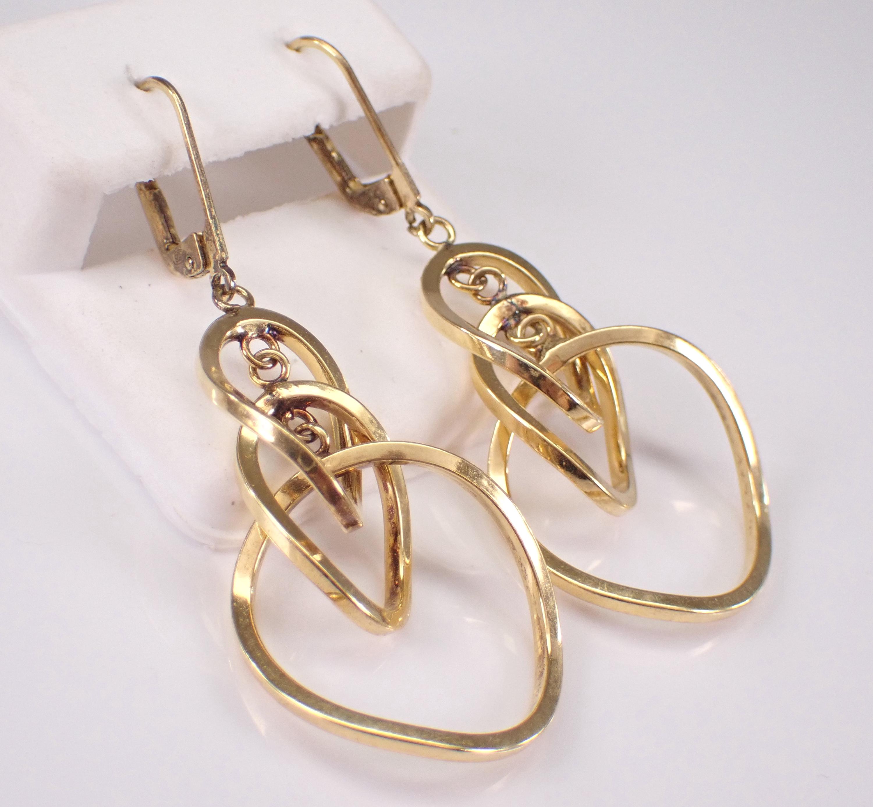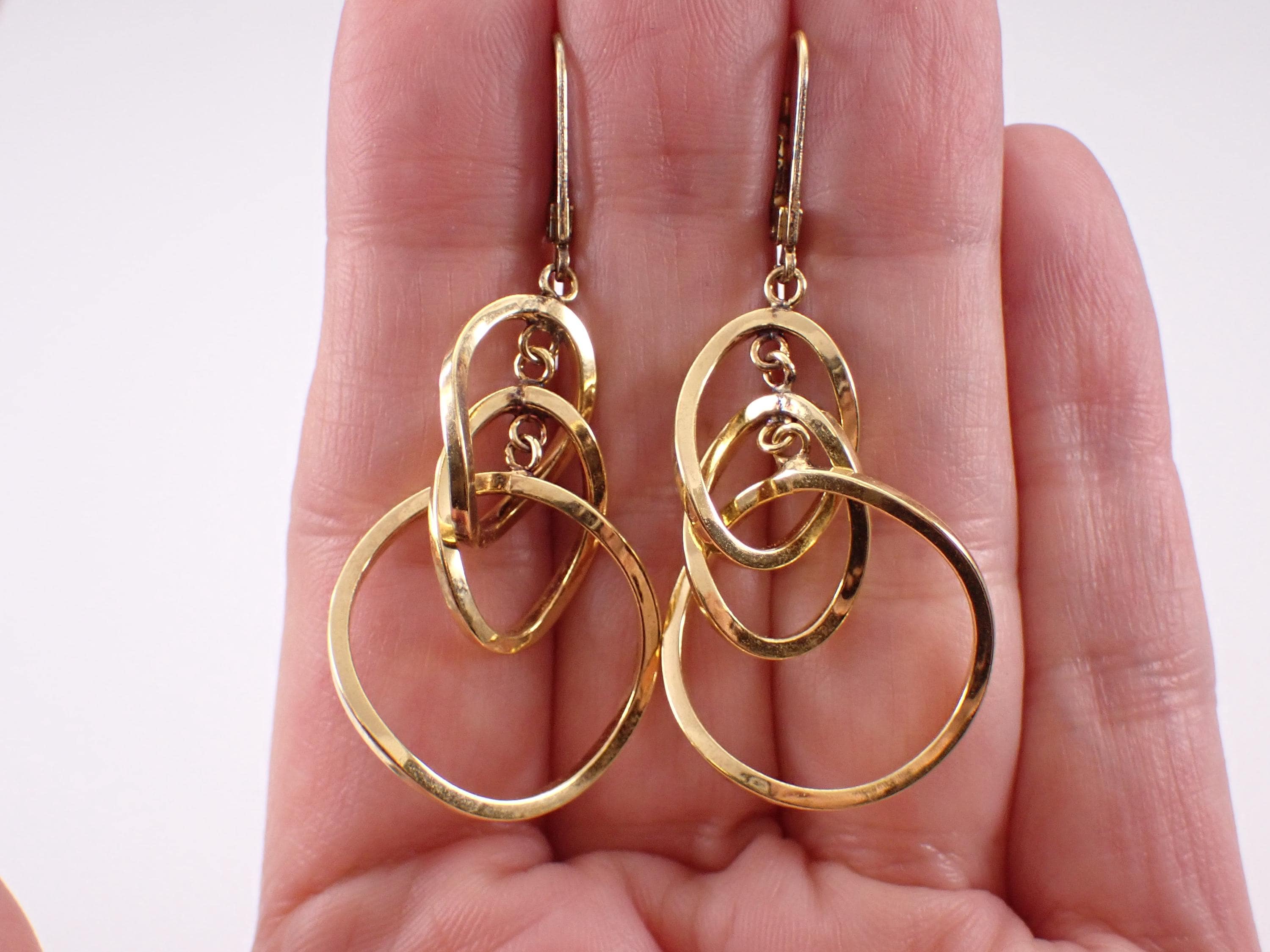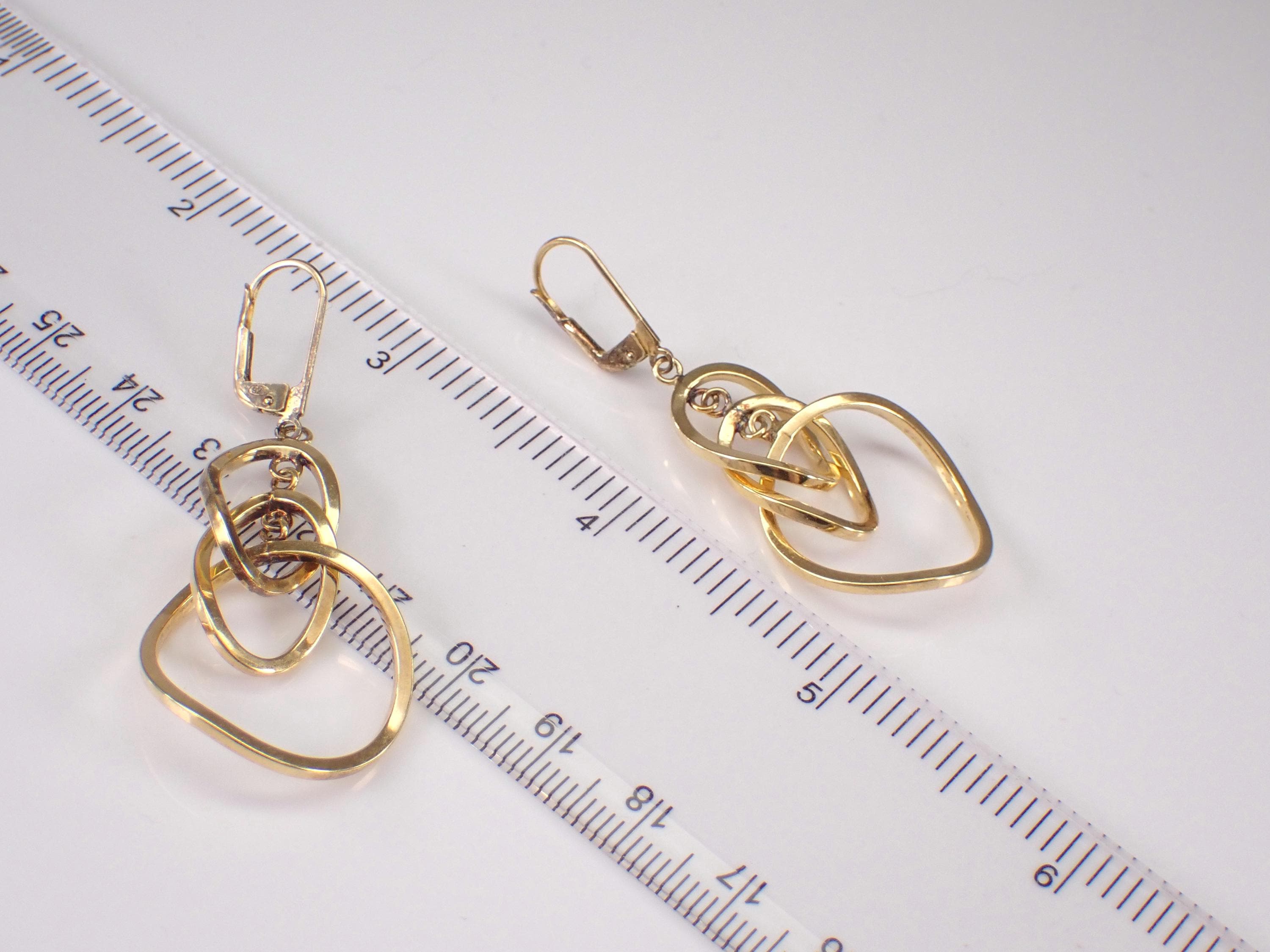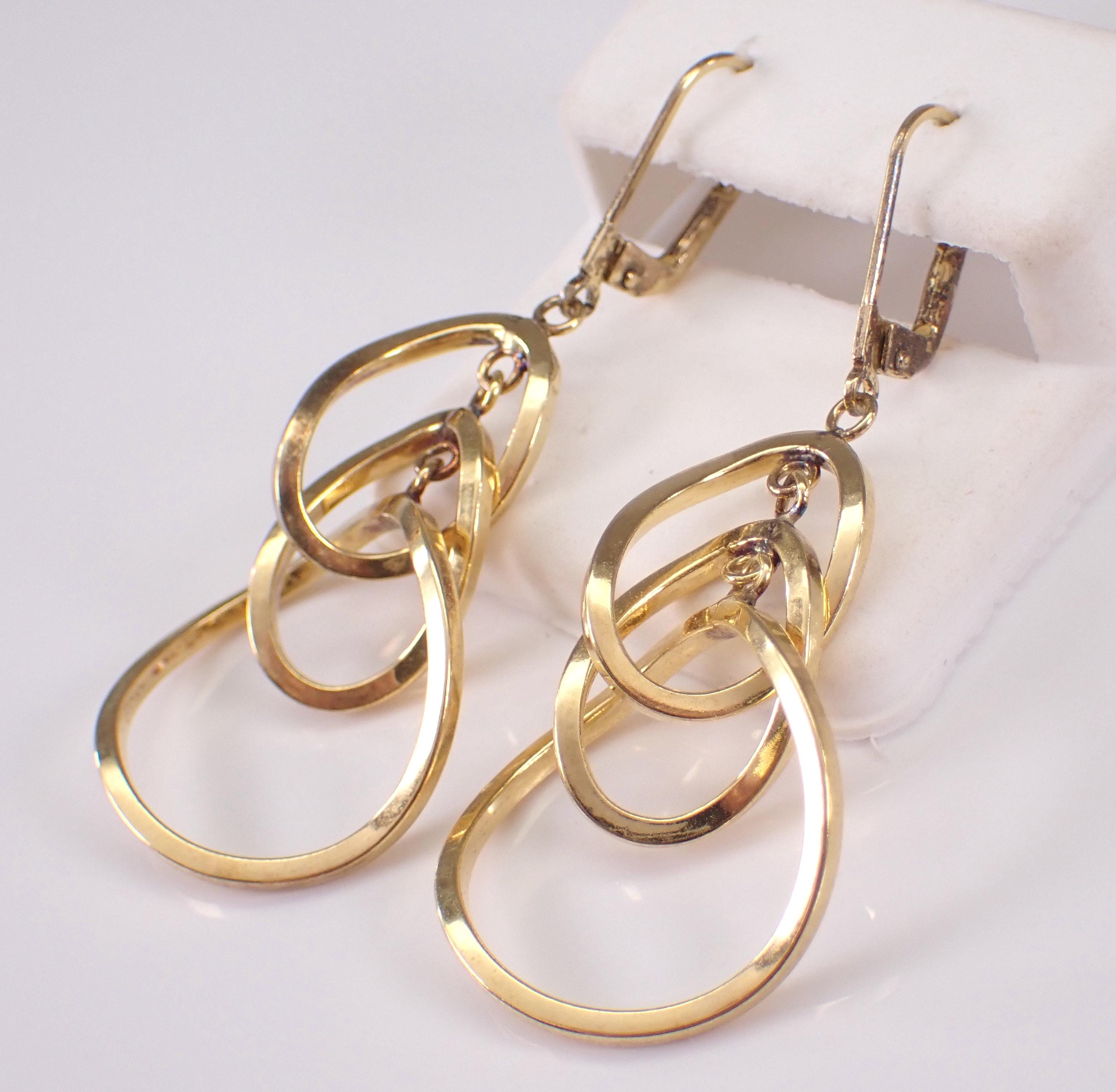 Unique Sterling Silver Gold Plated Dangle Earrings. These earrings weigh 4.4 grams and measure 2” in length. These earrings has simple leverback clasps. These earrings will be shipped promptly in a gift pouch.