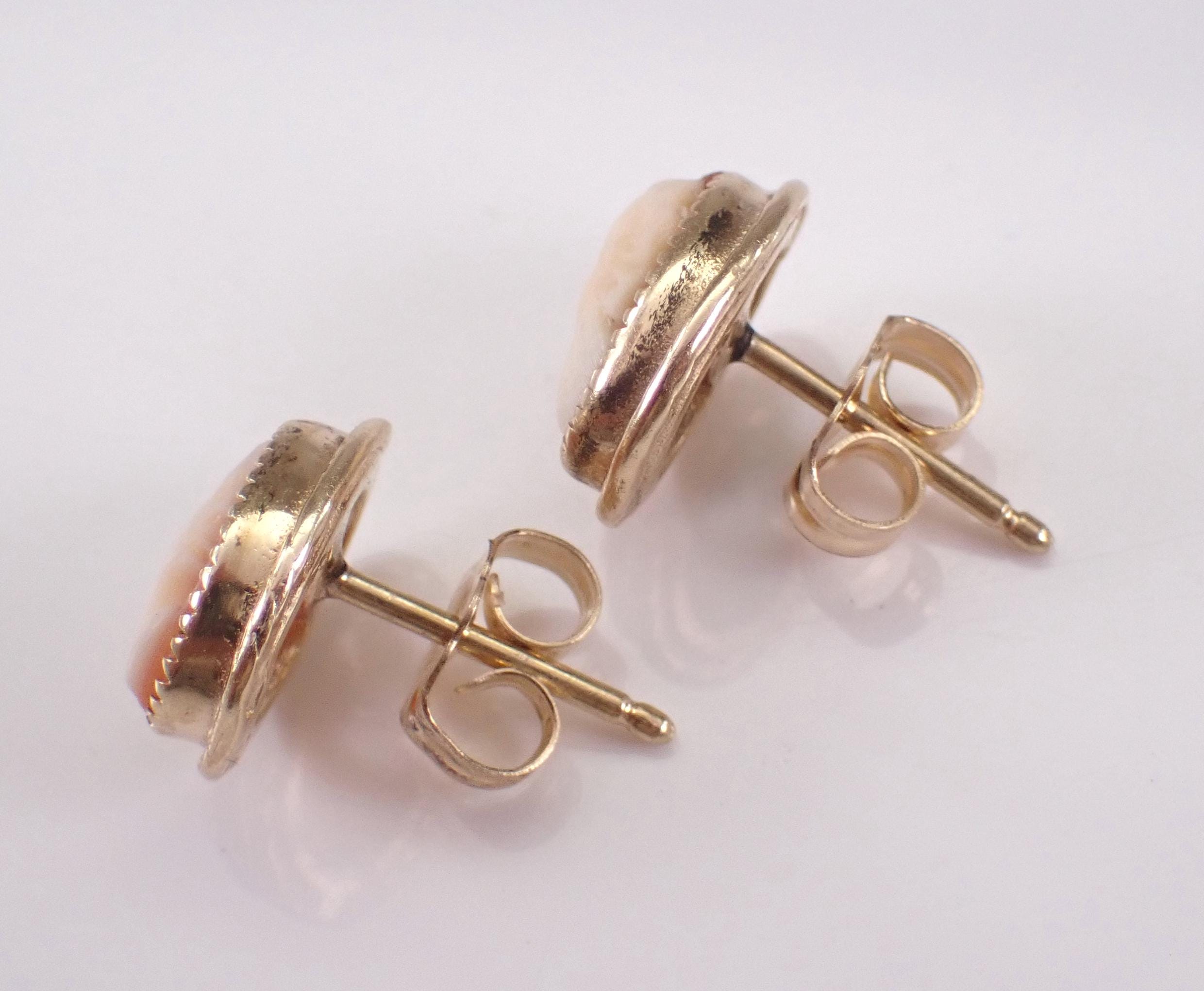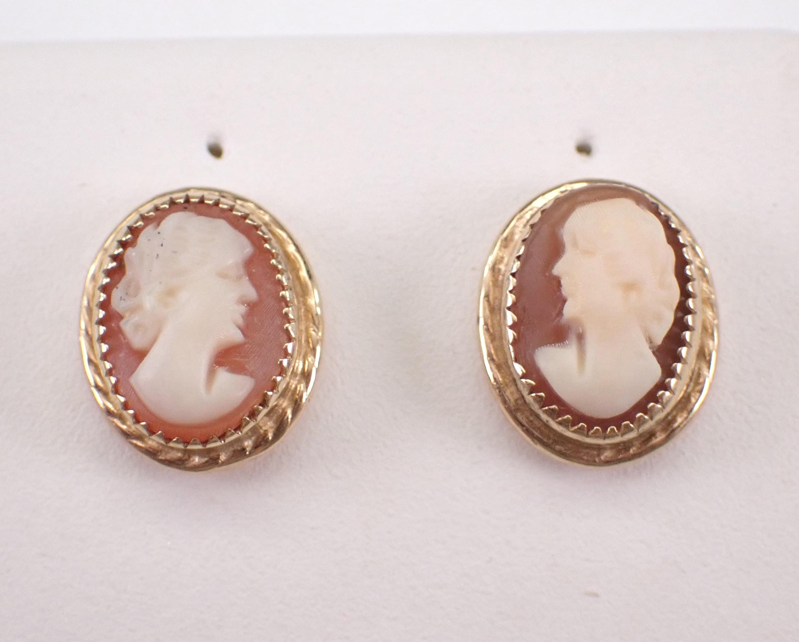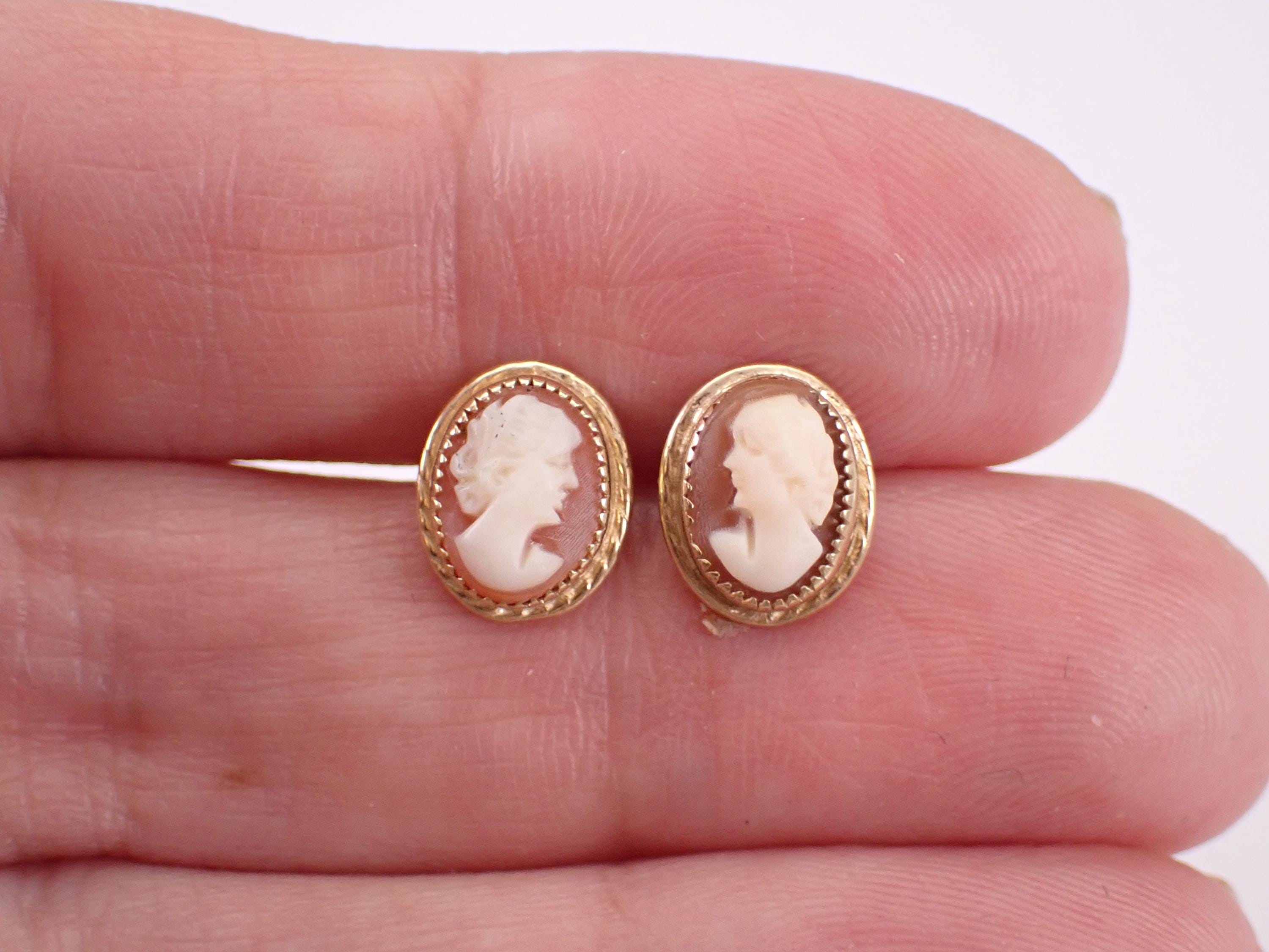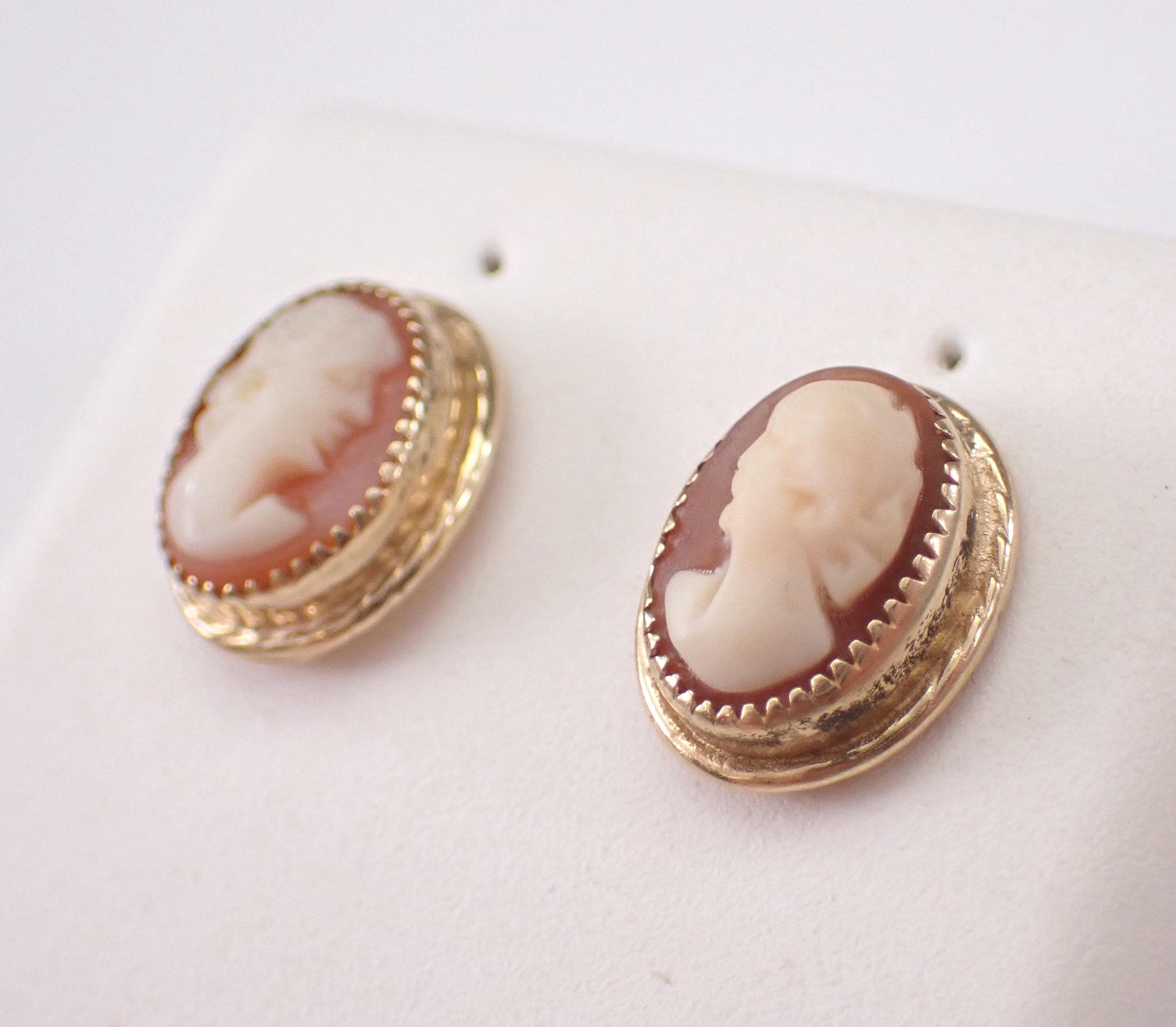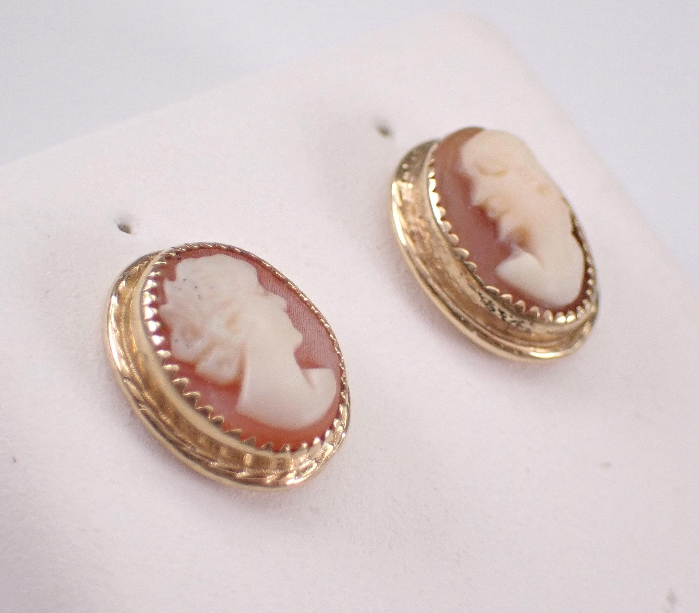 Vintage 14K Yellow Gold Cameo Stud Earrings. These vintage earrings are in very good condition. These earrings weigh a total of 2.0 grams and the earrings measure 10 X 8 mm. These earrings are for pierced ears and have friction post backings. These earrings will be shipped promptly in a gift box.