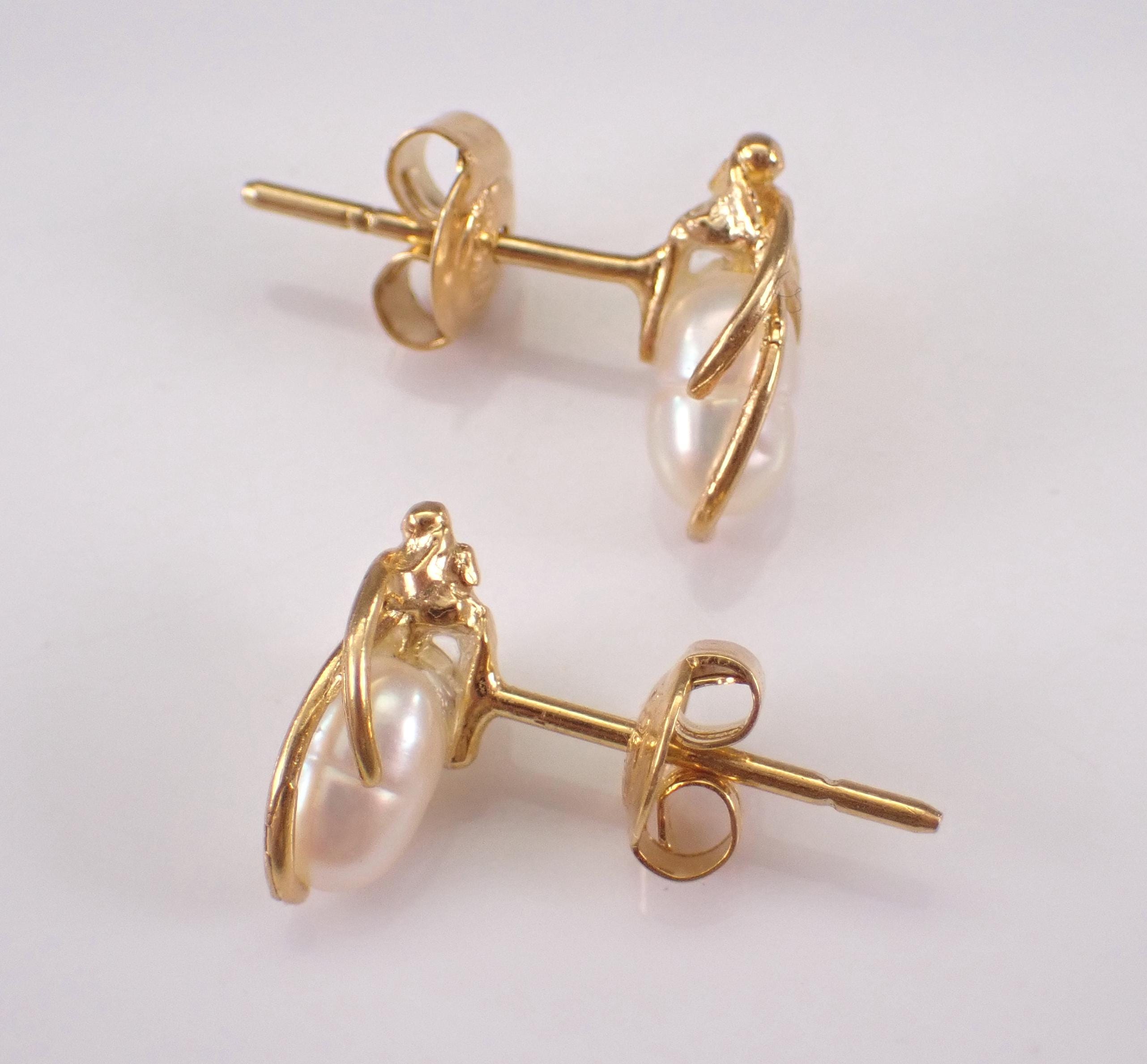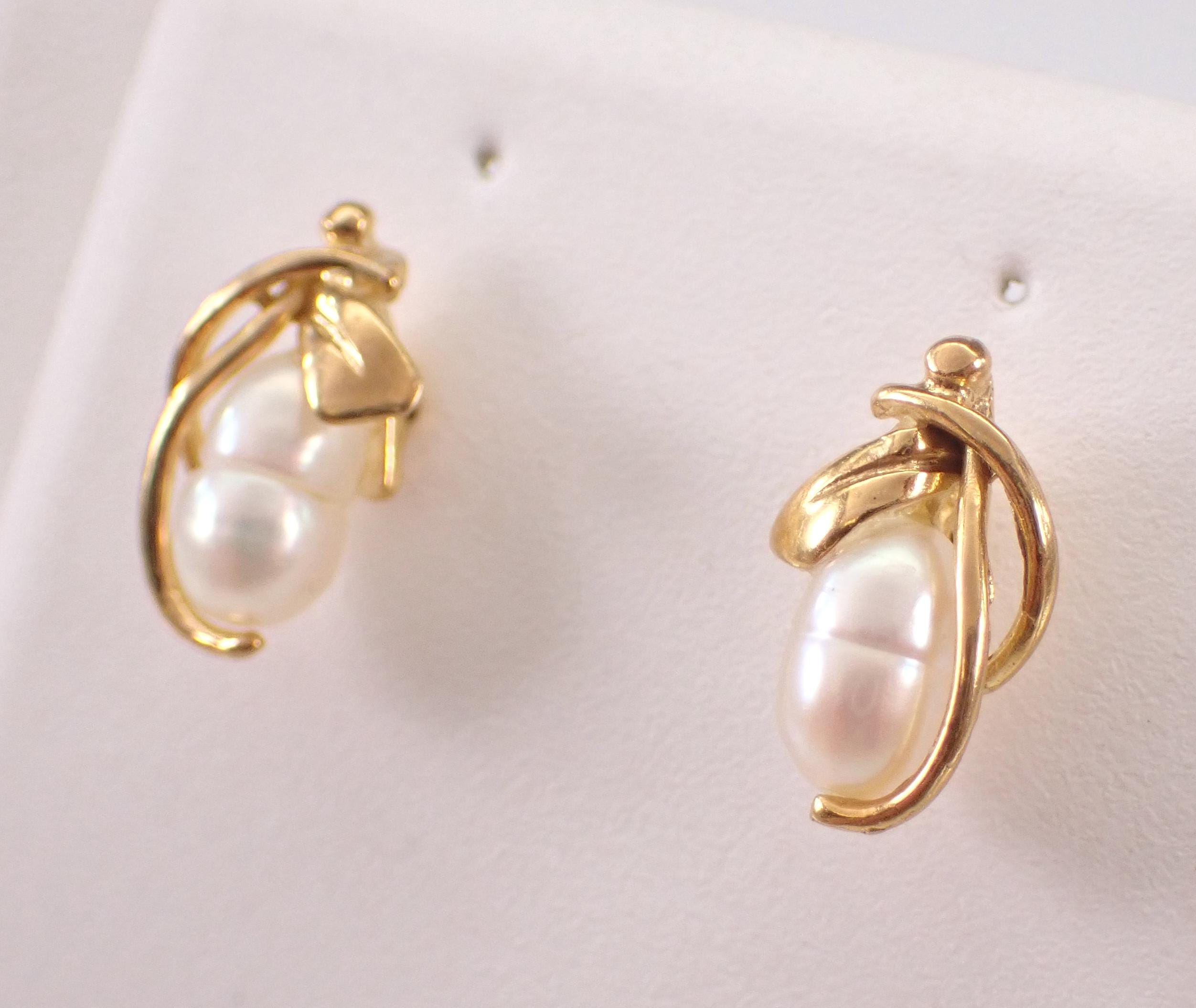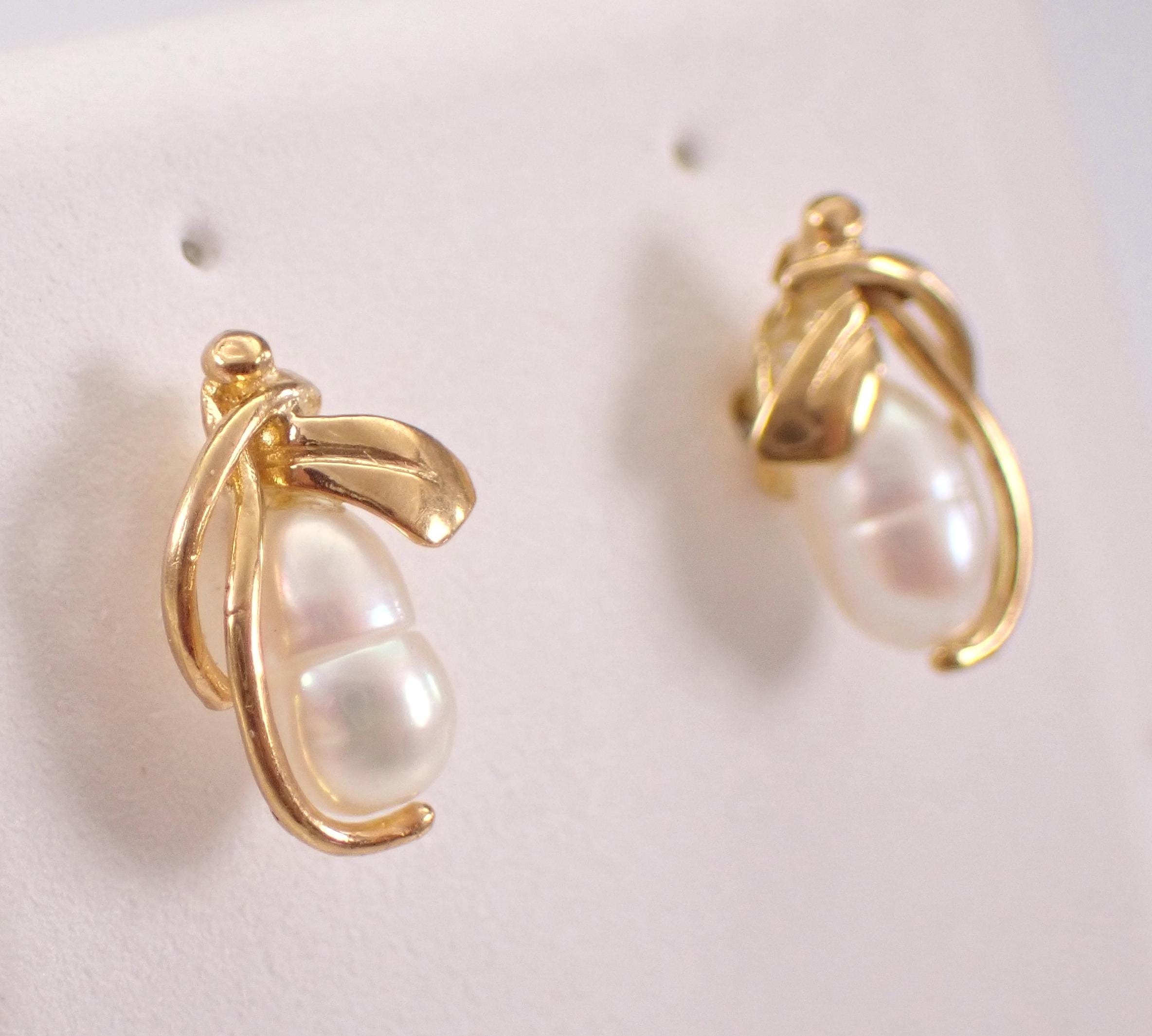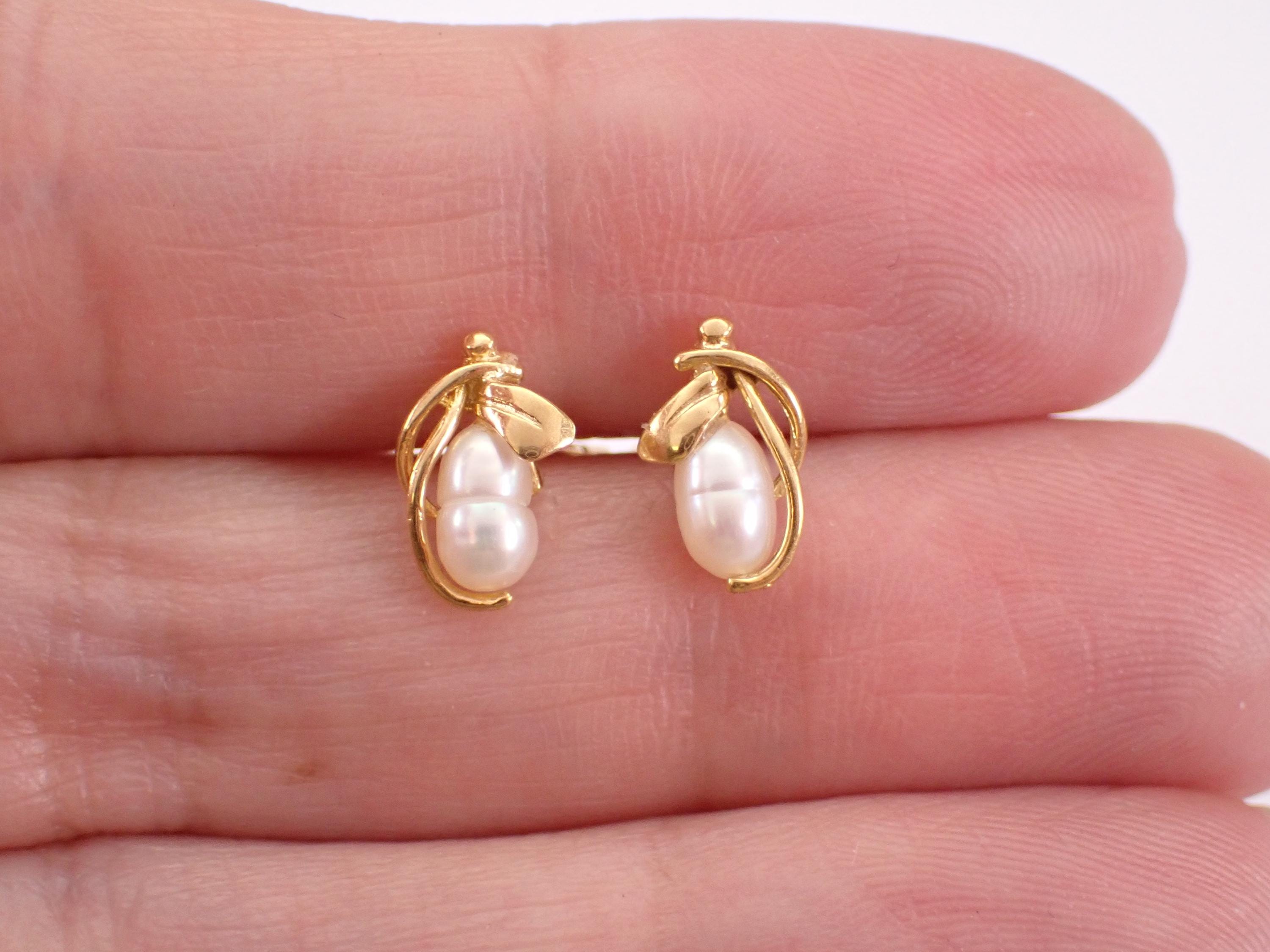 Vintage 14K Yellow Gold Pearl Stud Earrings. These vintage earrings are in very good condition. There is a genuine Freshwater pearl set in each earring. These pearls measure 6mm. These earrings weigh a total of 1.1 grams and the earrings measure 10 X 7 mm. These earrings are for pierced ears and have friction post backings. These earrings will be shipped promptly in a gift box.