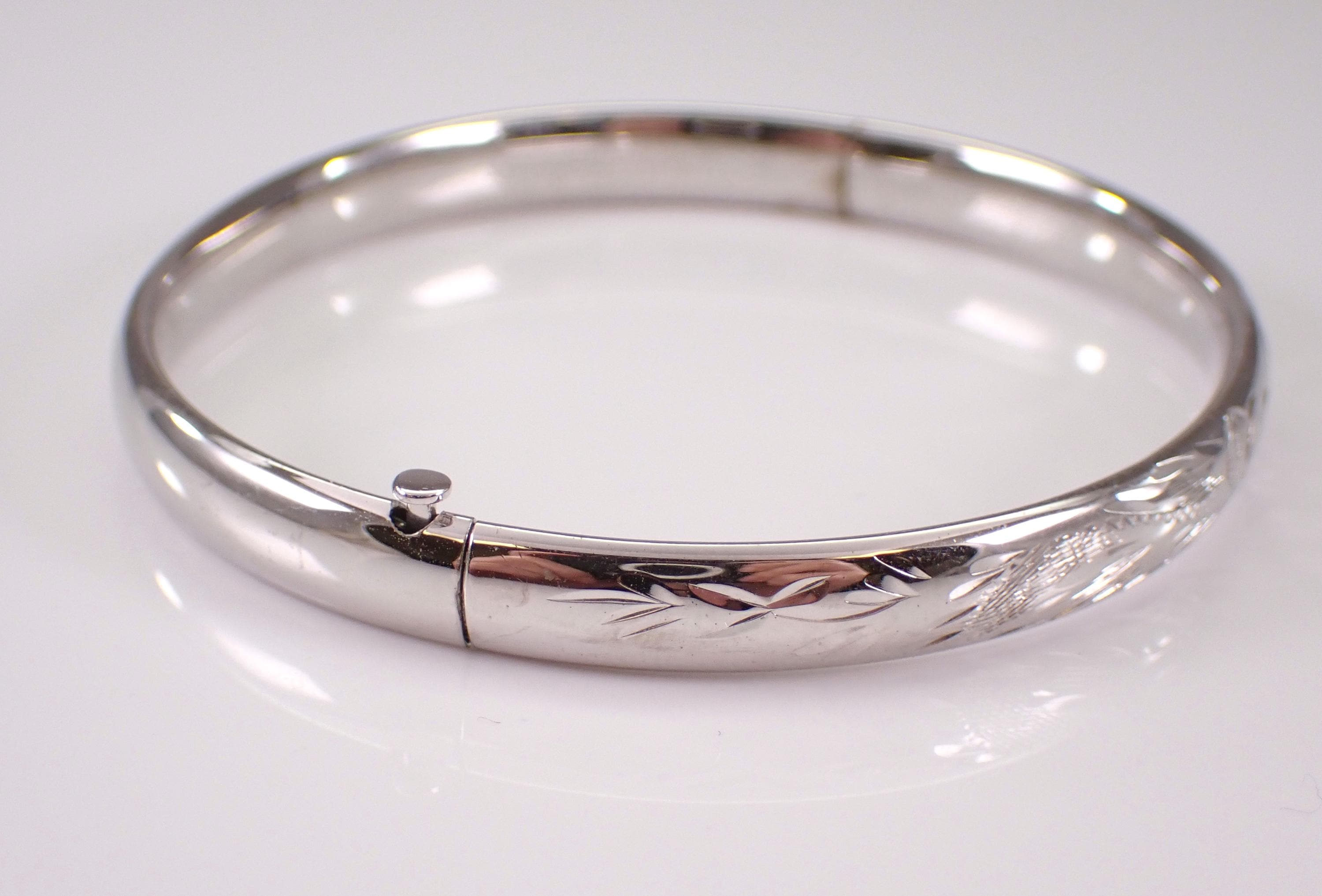 Vintage Unique Sterling Silver Bangle Bracelet Cuff. This bracelet weighs 7.0 grams and fits a standard ladies wrist (approximately 6.5-7"). This bracelet measures 6 mm in width. This bracelet will be shipped promptly in a gift pouch. Makes an awesome gift for any age, graduation, birthday or any special event.
