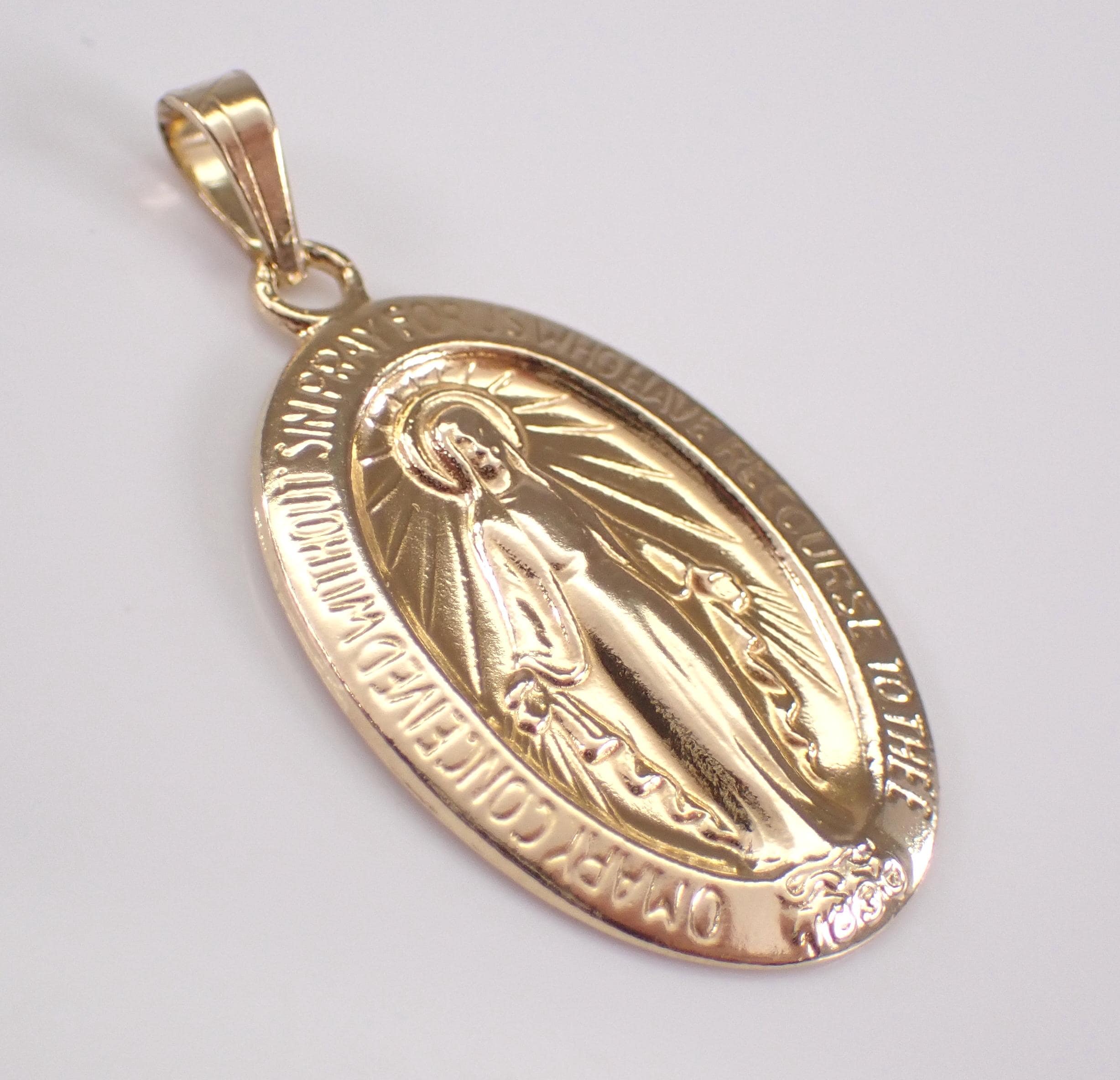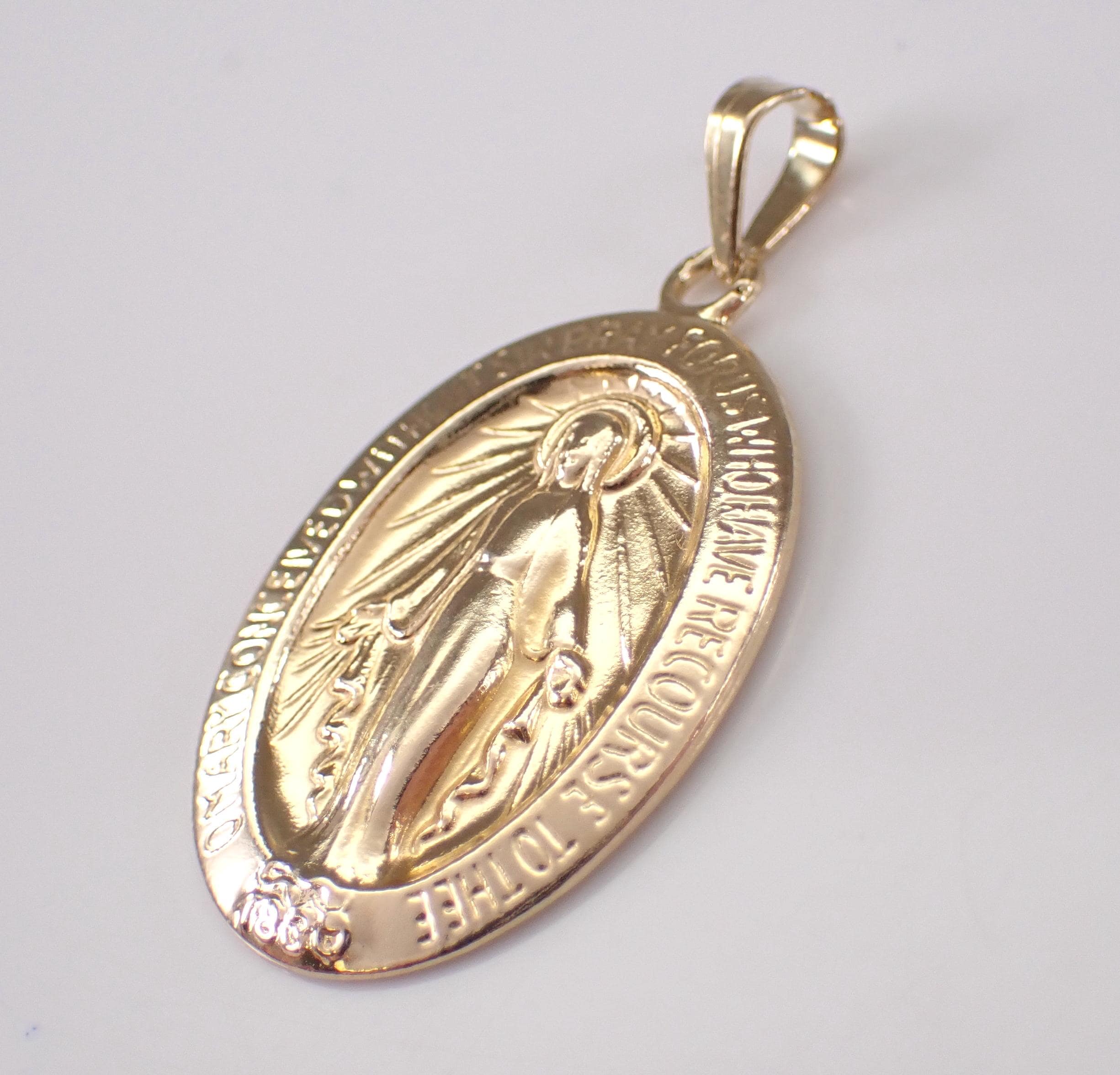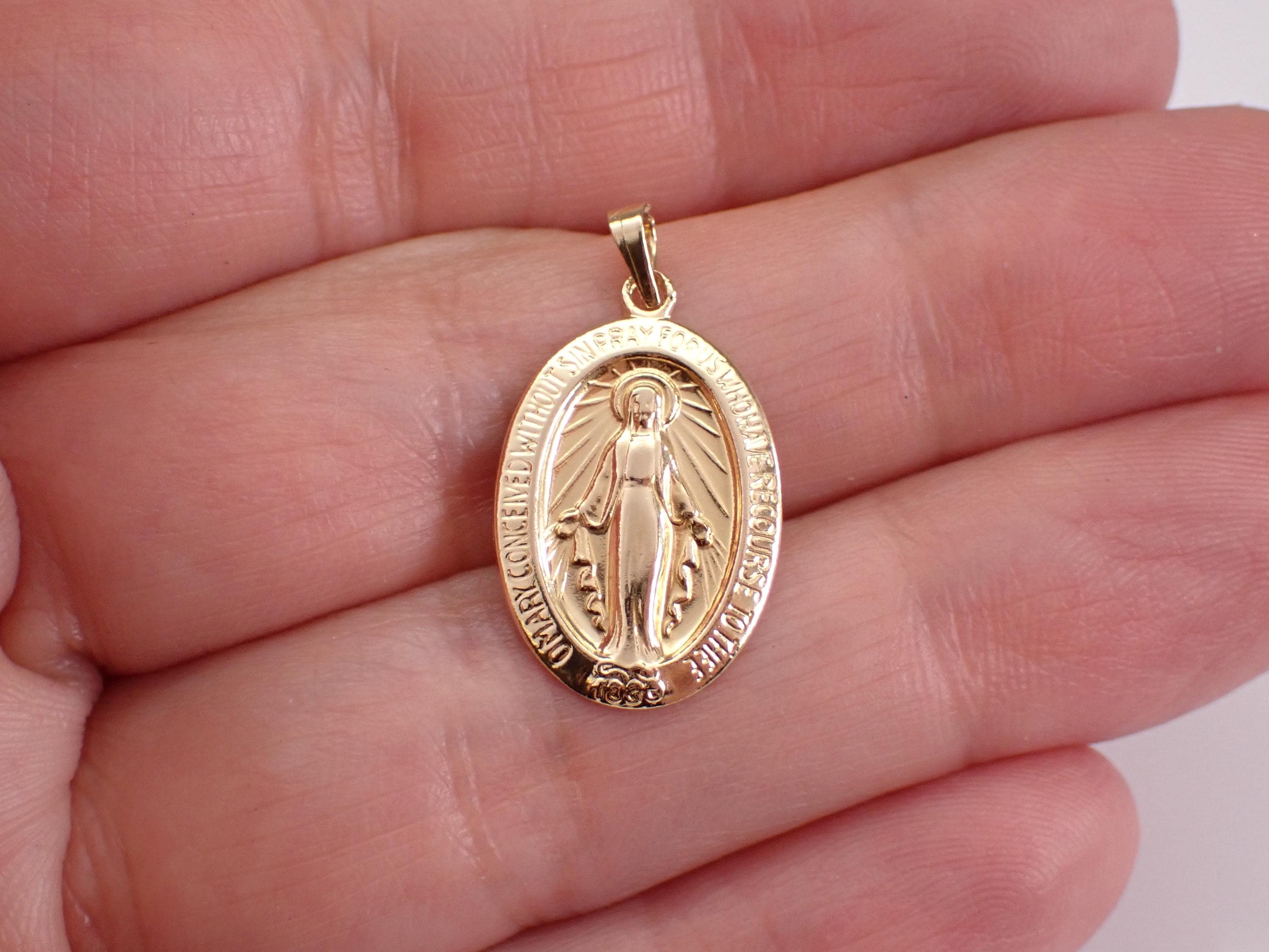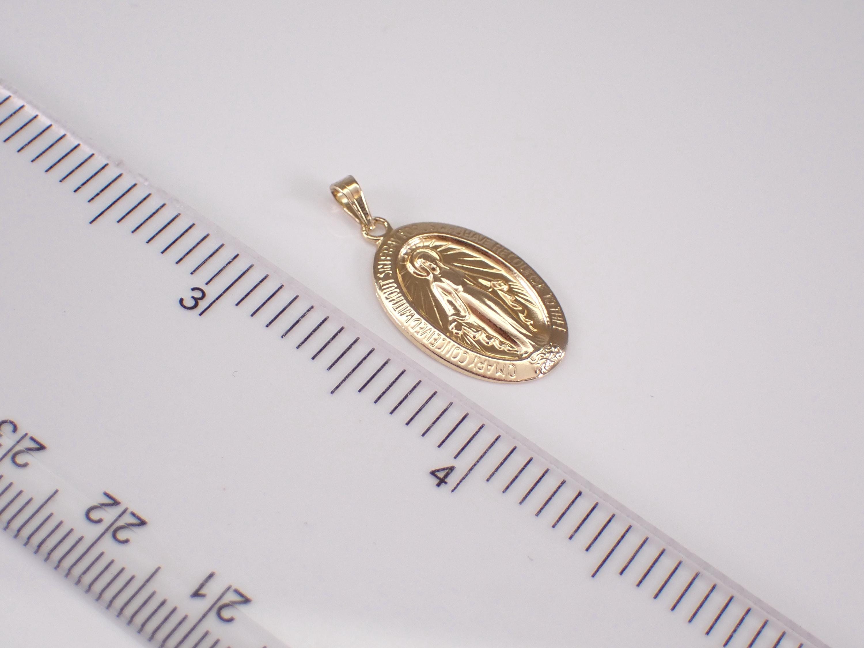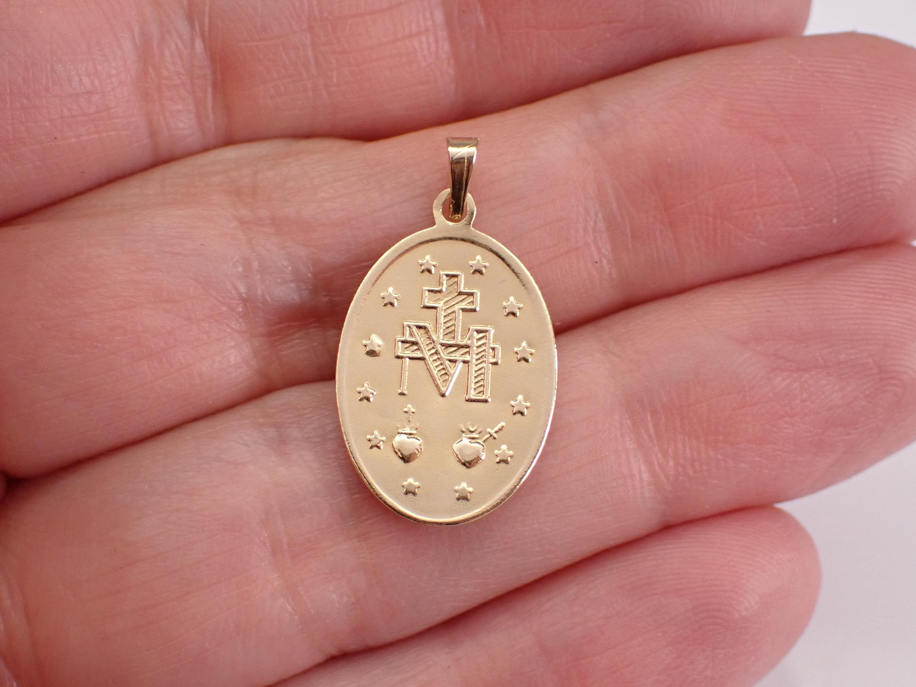 Vintage 14K Yellow Gold miraculous medal Charm Pendant. This charm is 14K gold and measures 18 X 13 mm. This charm weighs .9 grams and dates to Circa 1980s. I will ship this pendant promptly in a beautiful gift pouch.
