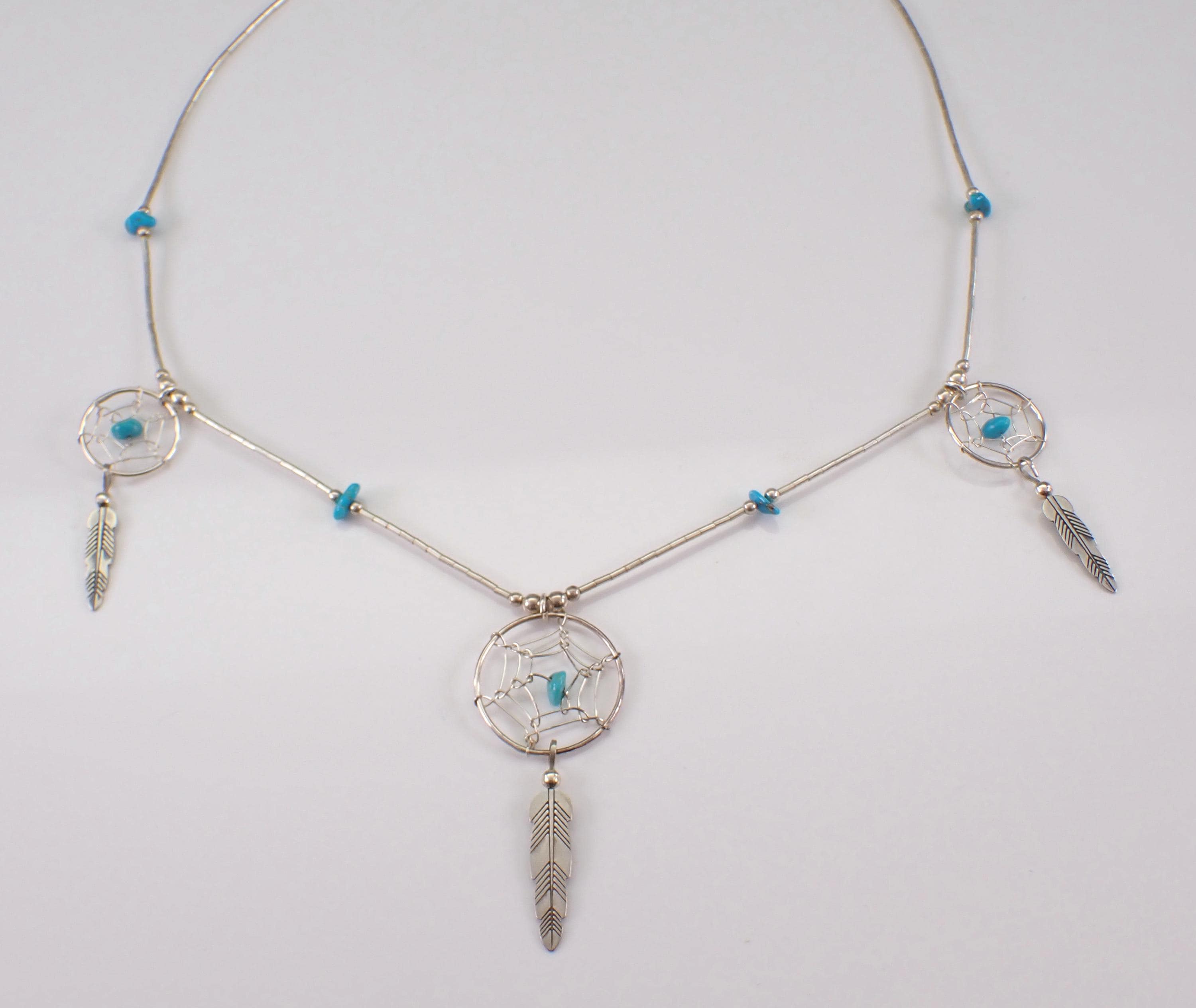 Vintage Sterling Silver Turquoise Dream Catcher Necklace.