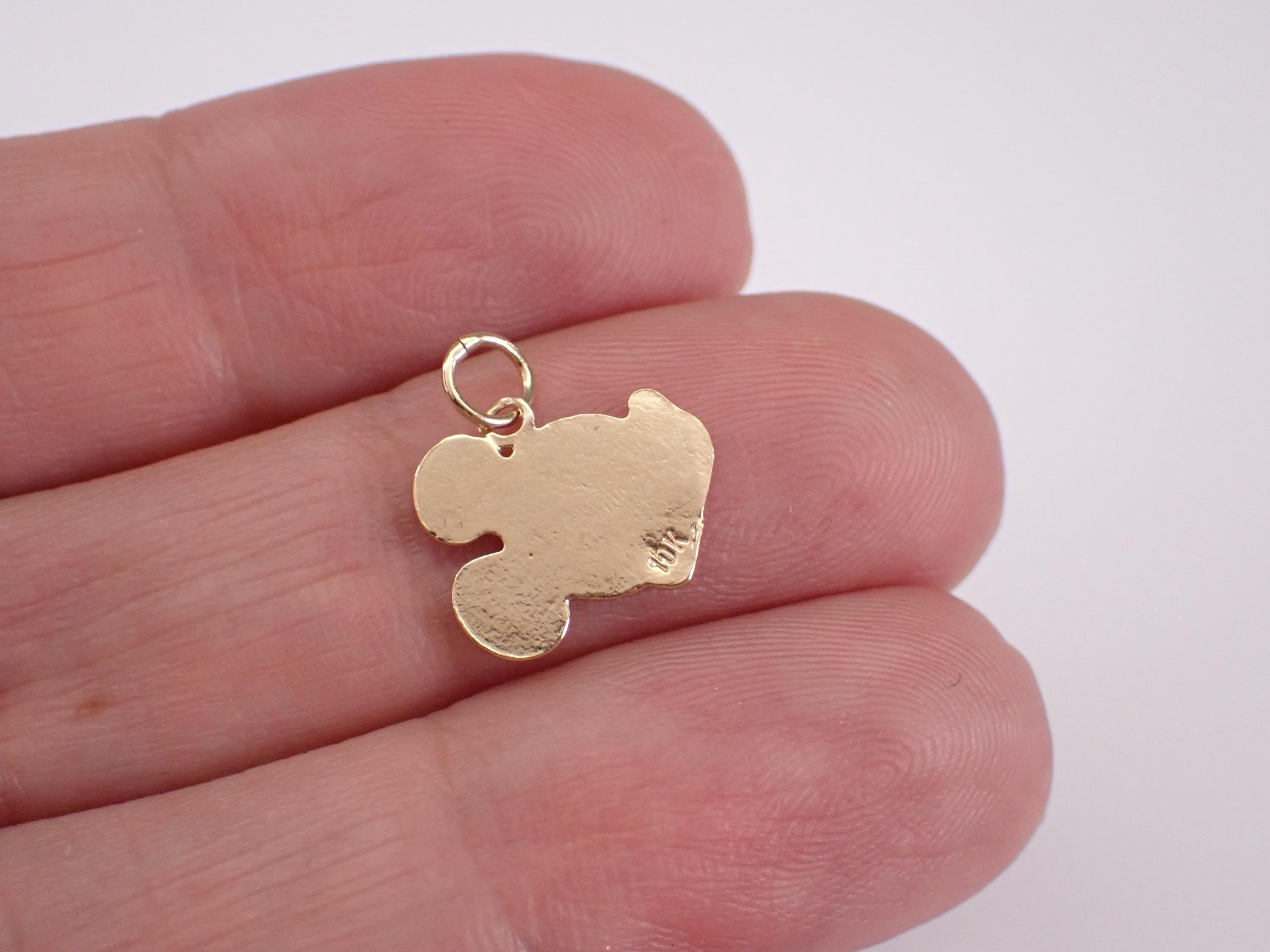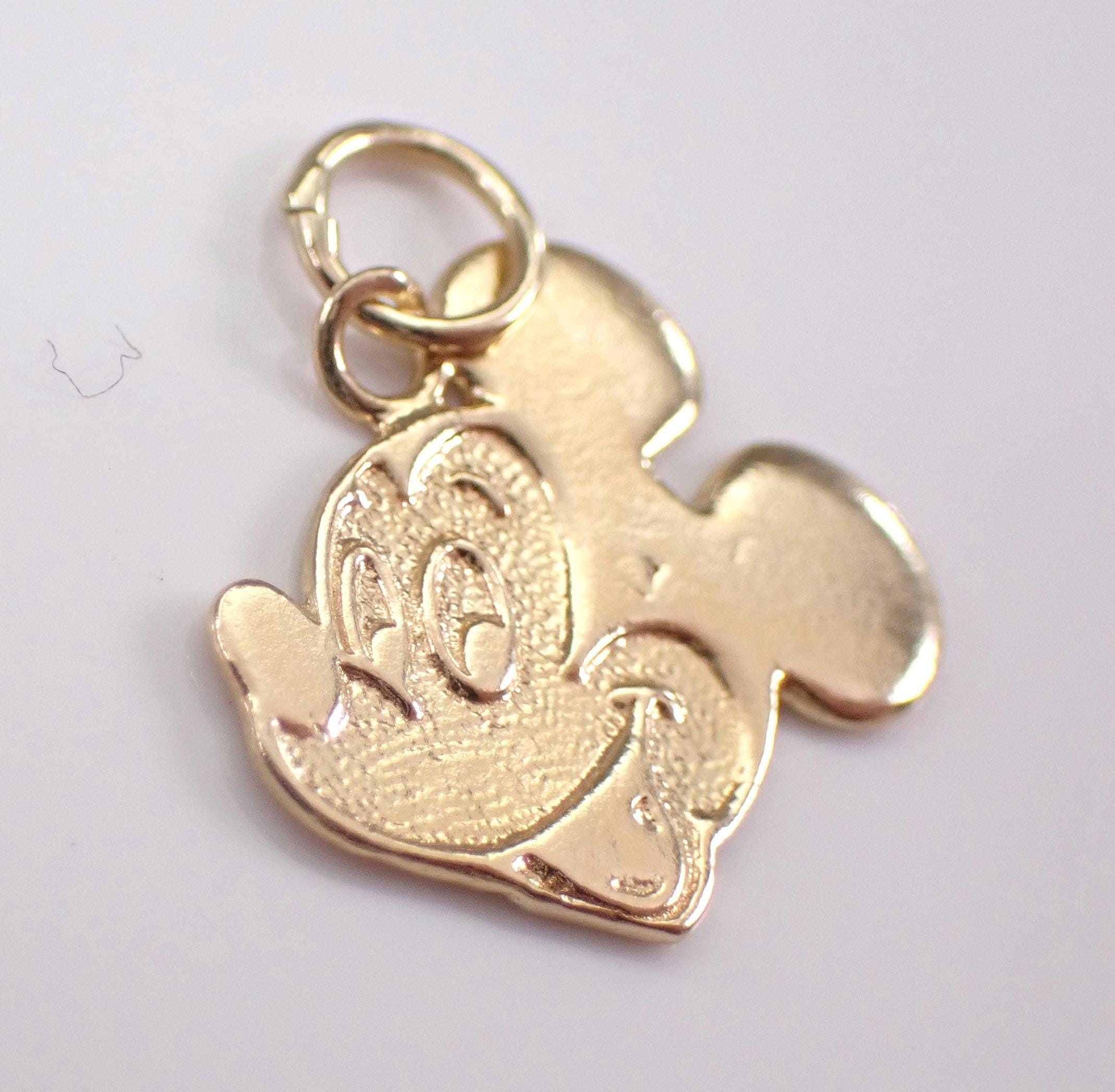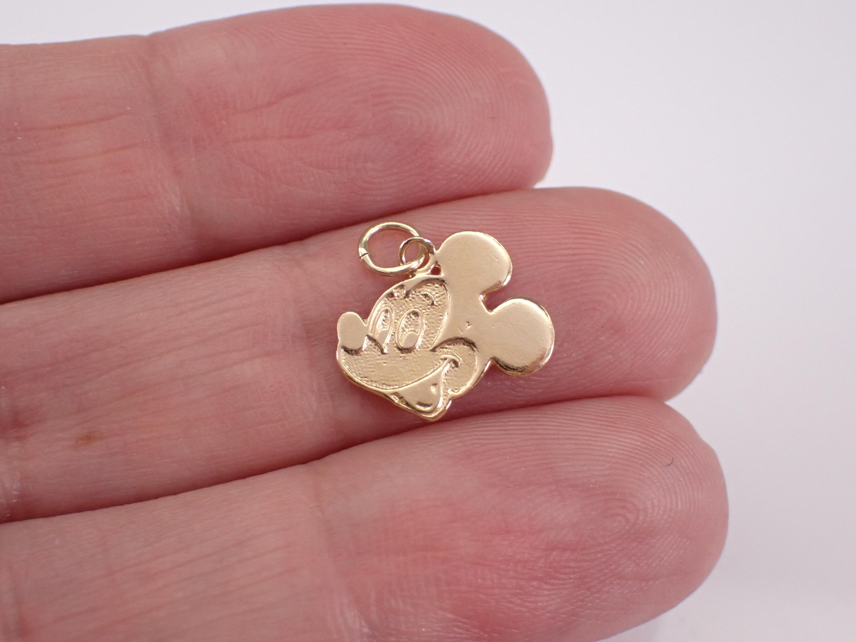 Vintage Yellow Gold Mickey Mouse Charm Pendant. This charm is 10K Yellow gold and weighs .6 grams. This charm measures 12.5 X 10 mm without the loop. I will ship this pendant promptly in a gift pouch.