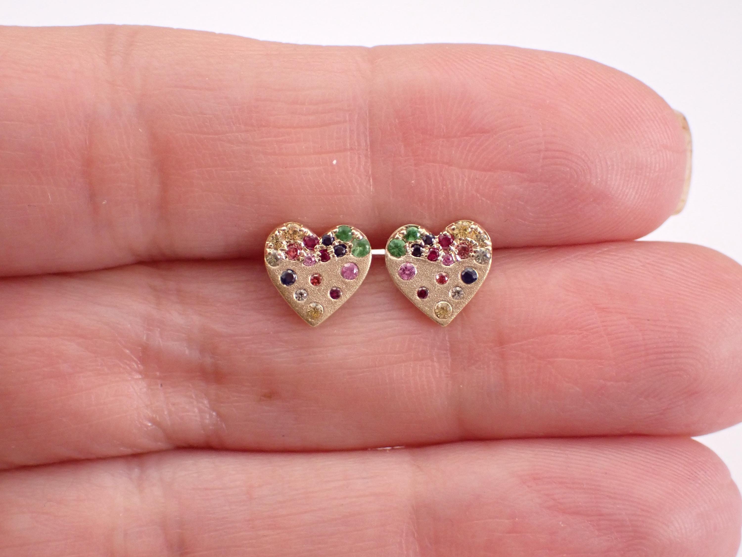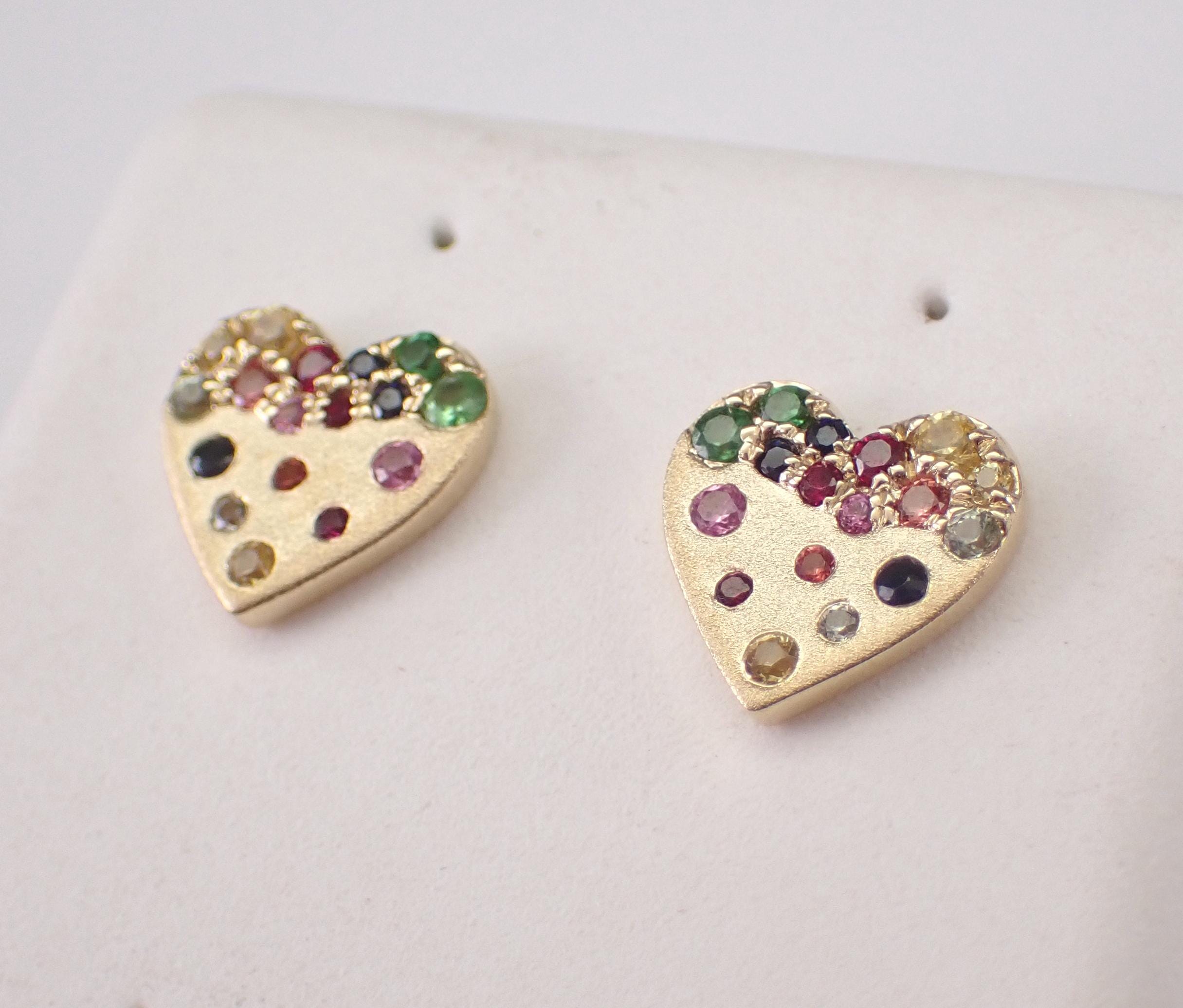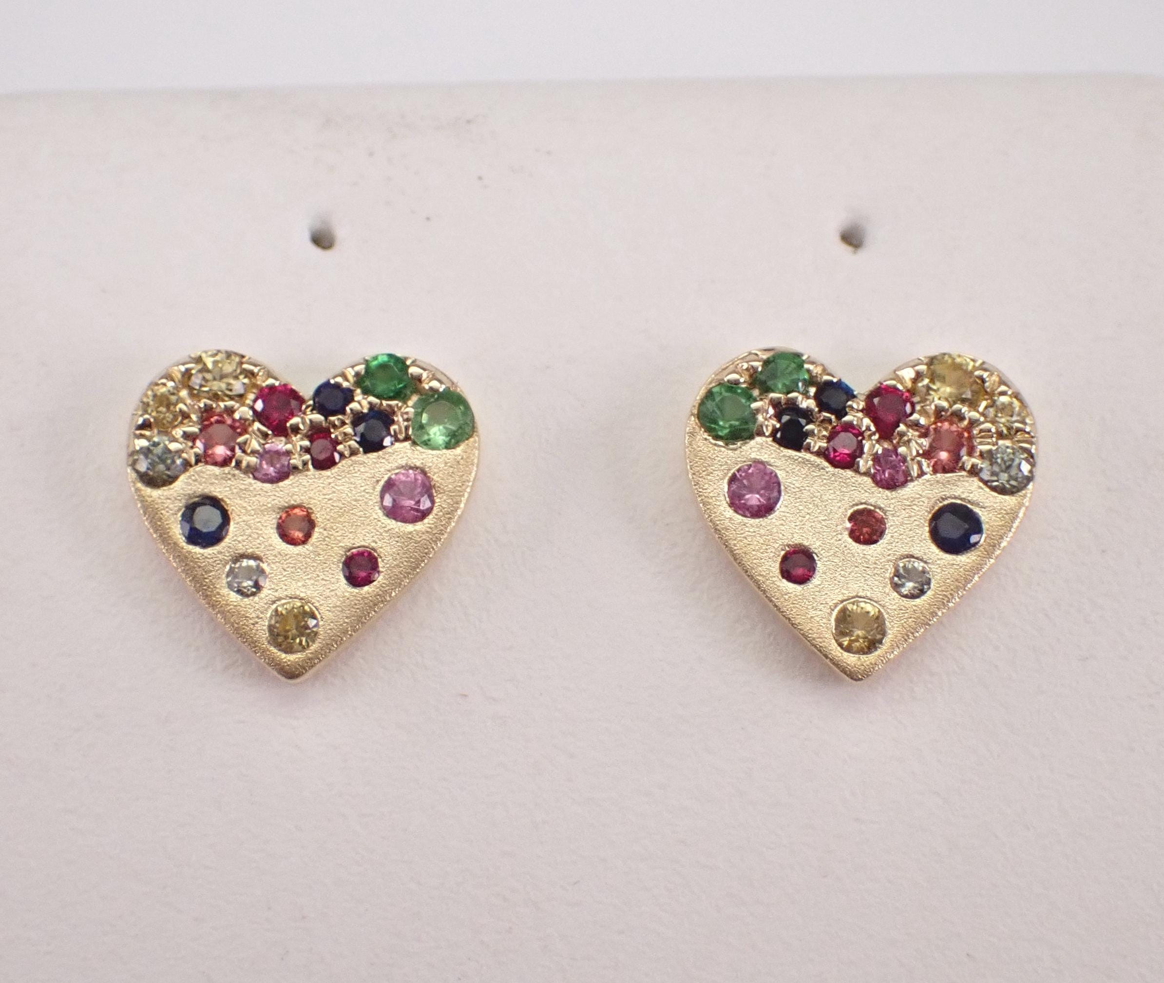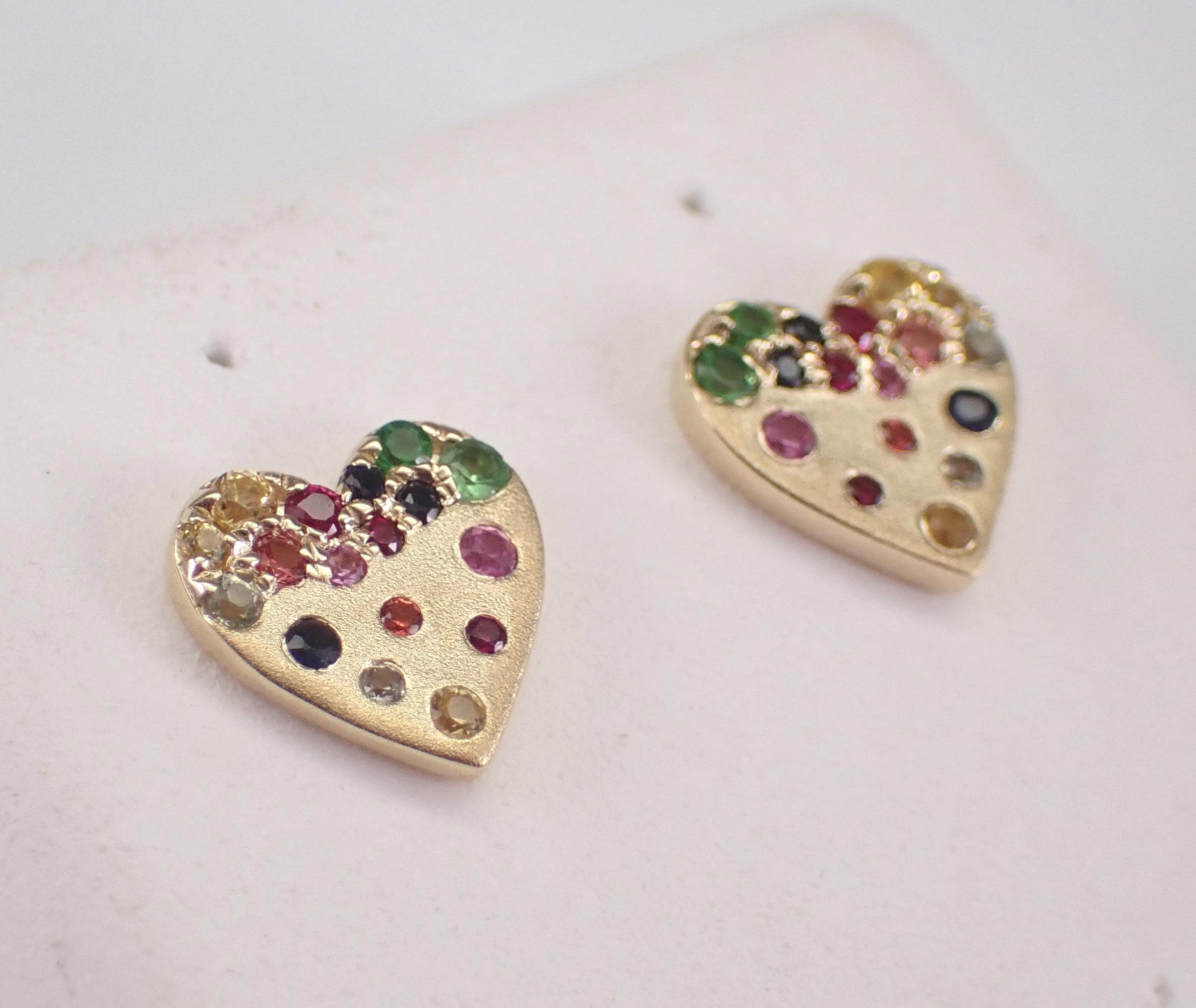 Yellow Gold Multi Color Sapphire Stud Earrings.