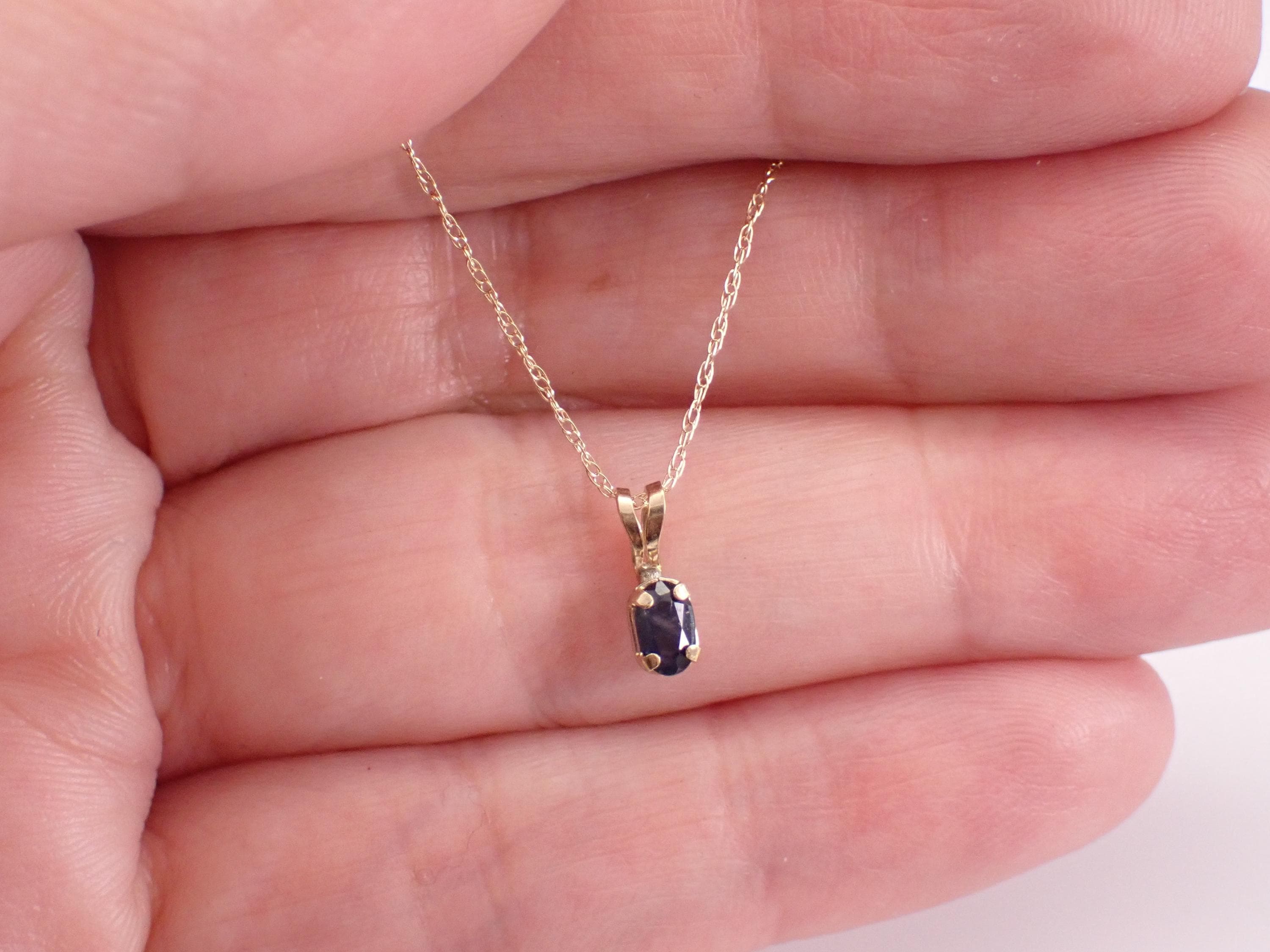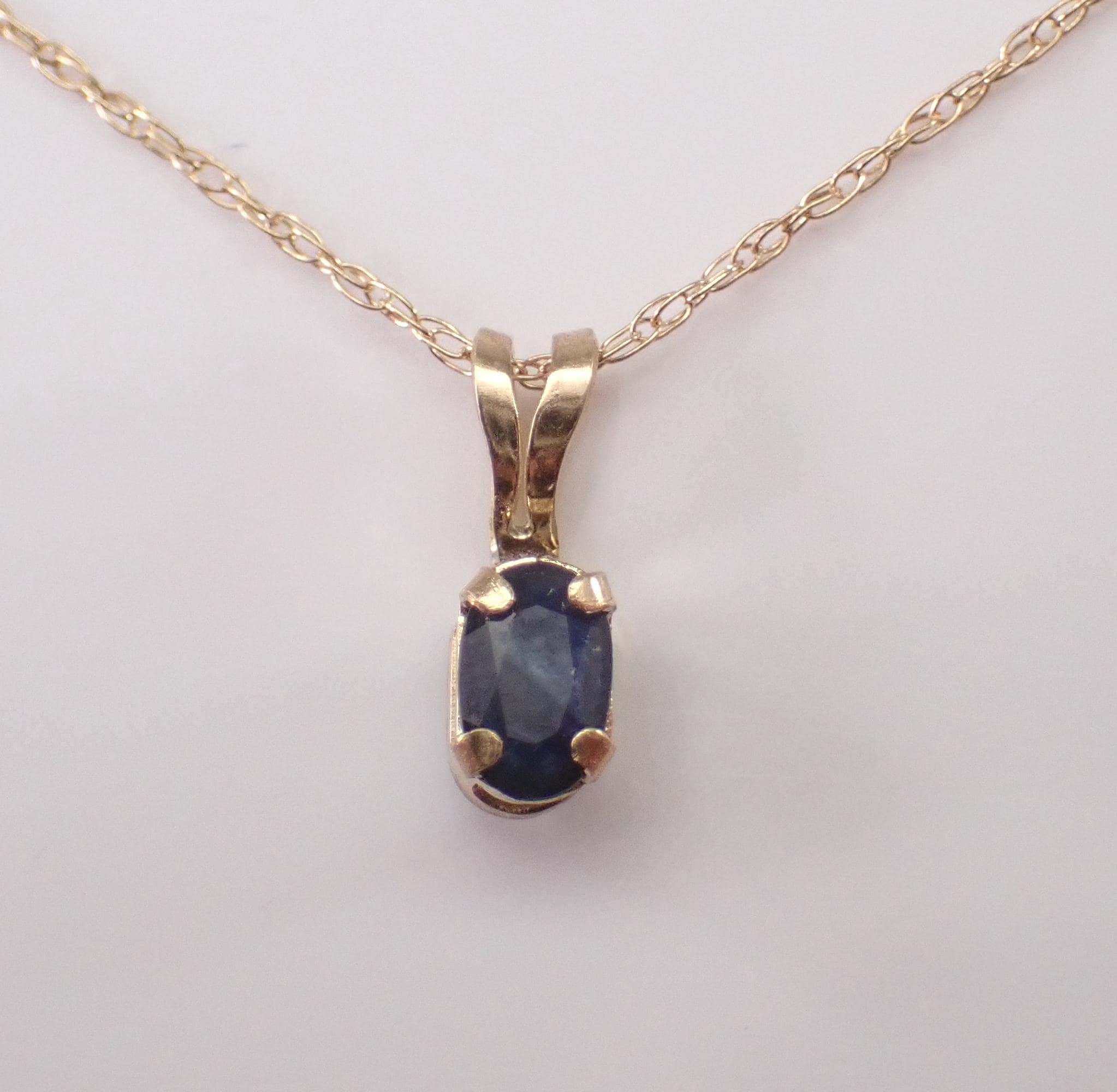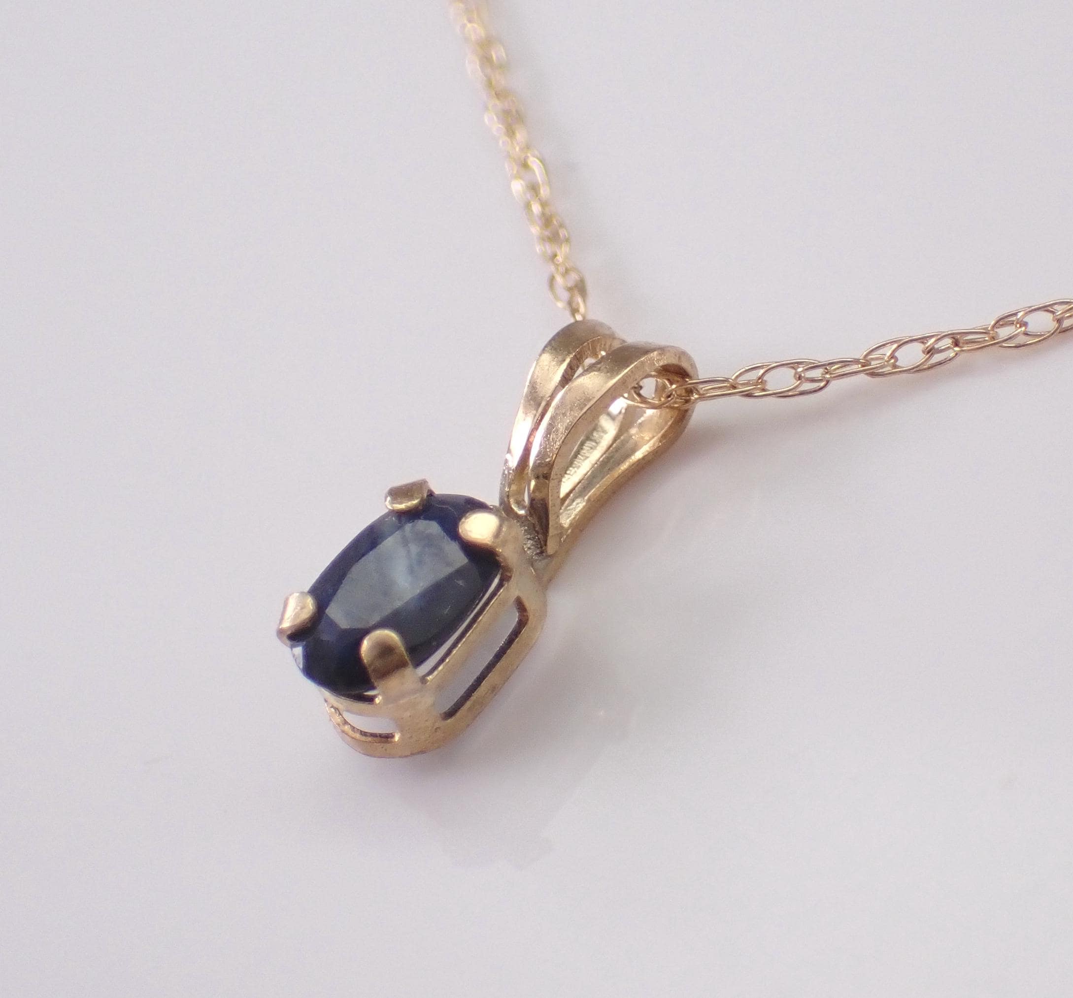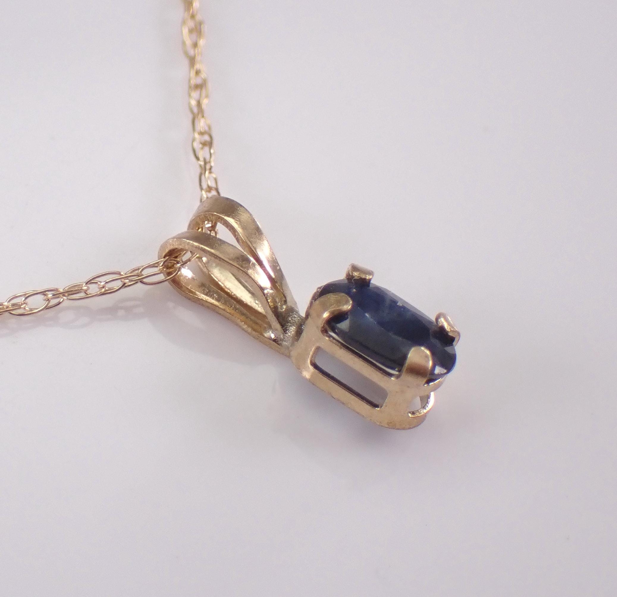 Vintage Yellow Gold Sapphire Pendant Necklace Chain.
