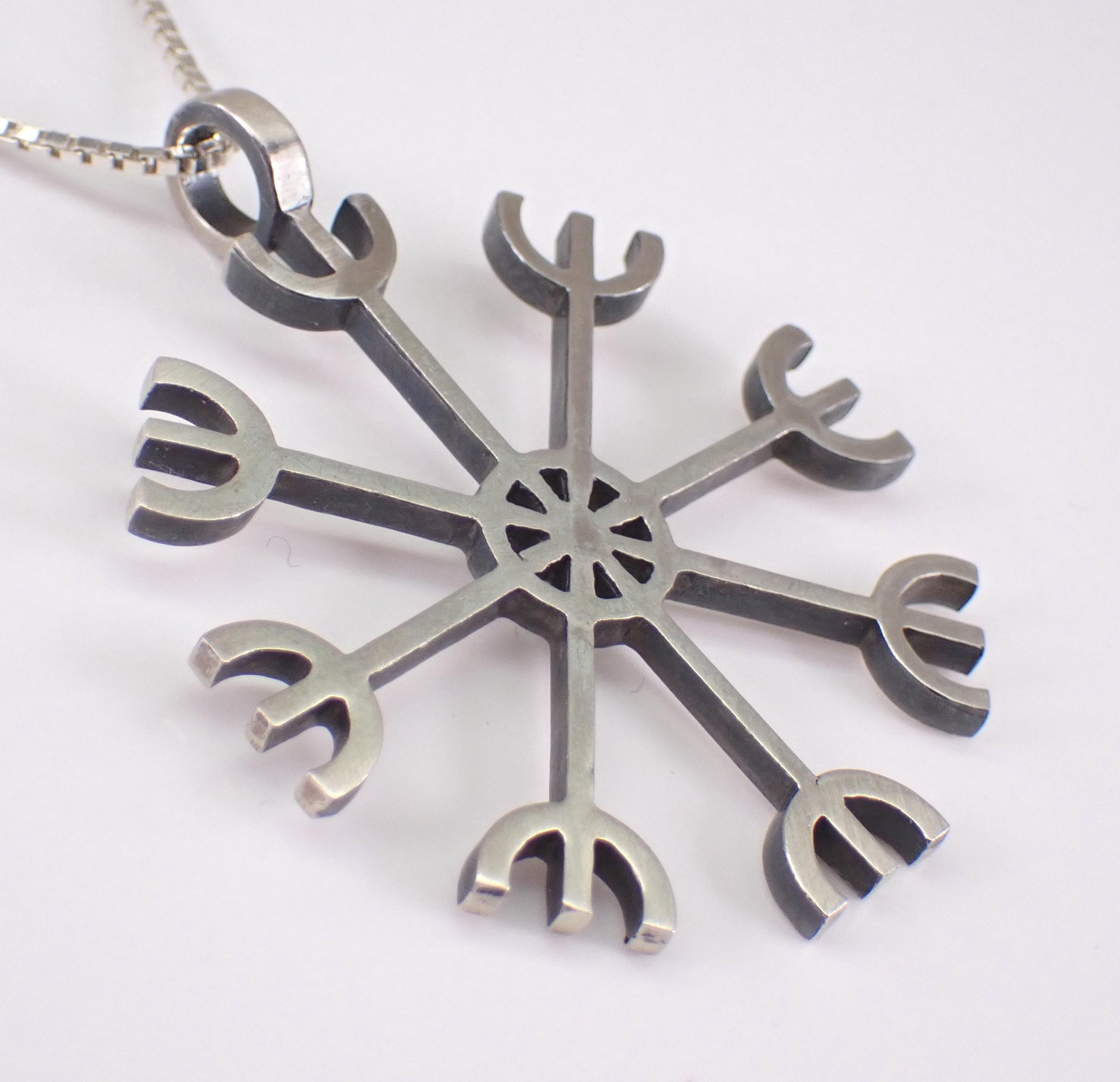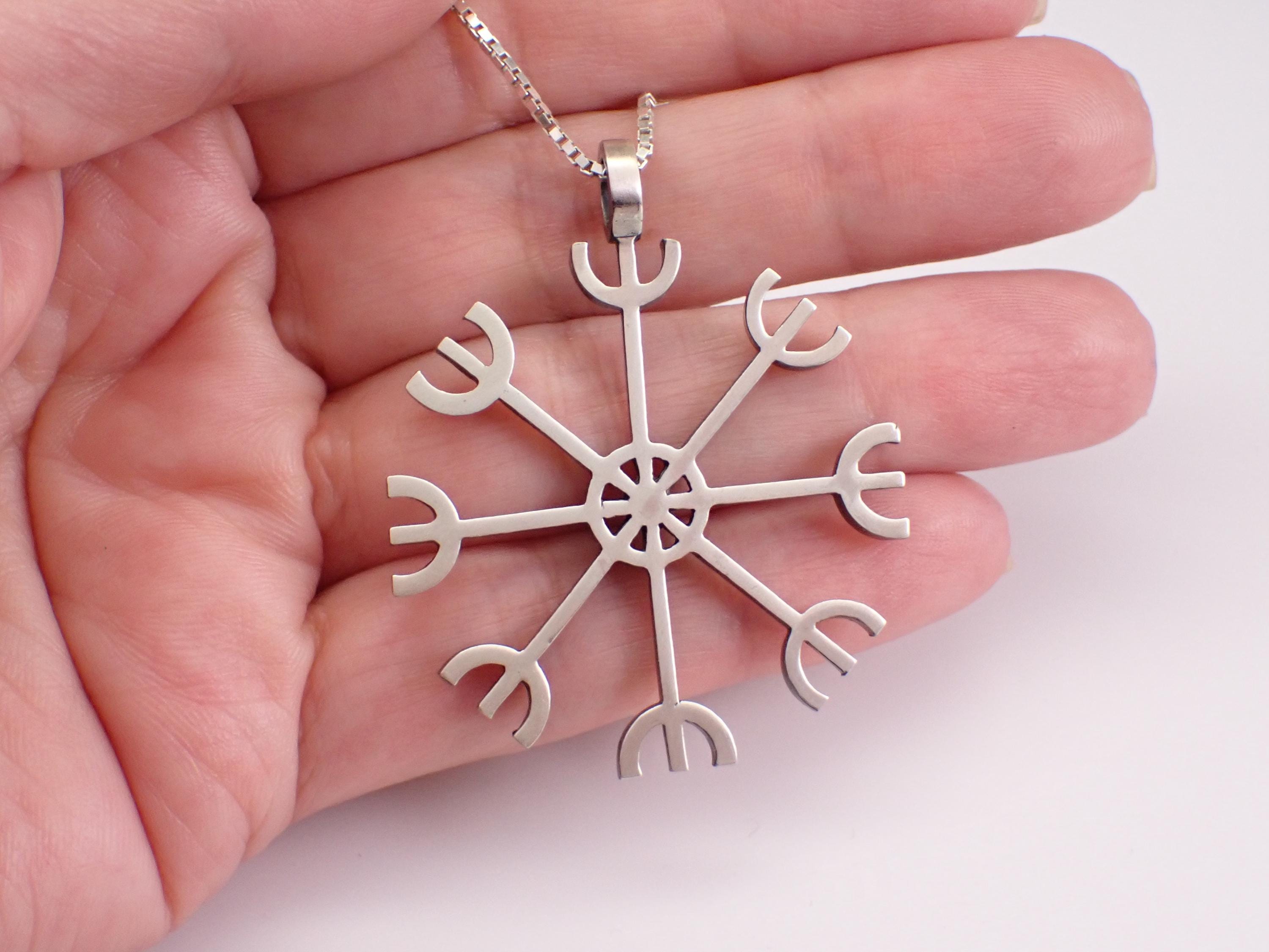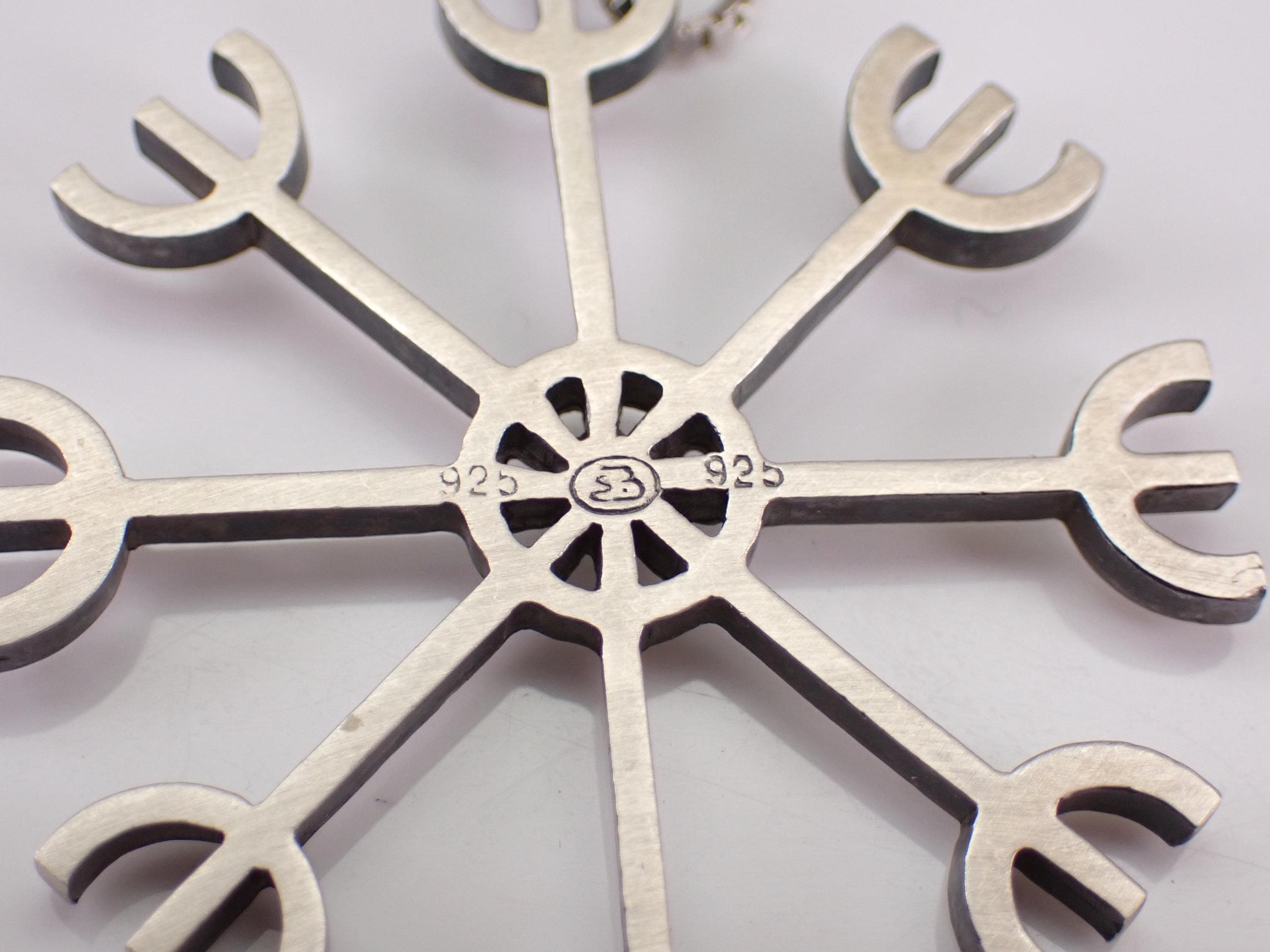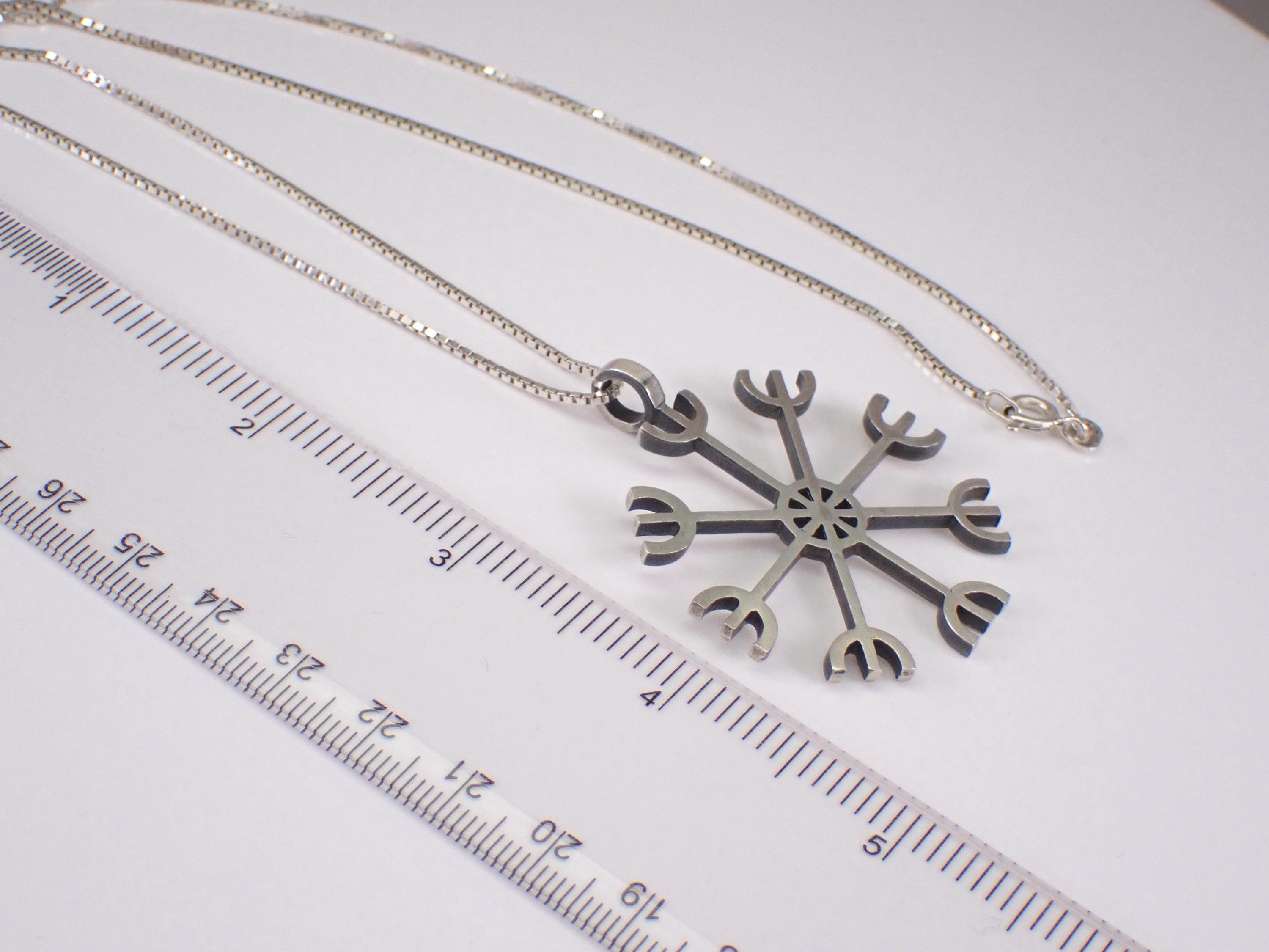 This necklace is Sterling Silver and measures 20" in length. This necklace weighs 12.4 grams and the charm measures 39 mm in diameter (1 1/2"). This necklace is perfect for everyday wear, great gift for any occasion! Will be shipped promptly in a gift pouch.