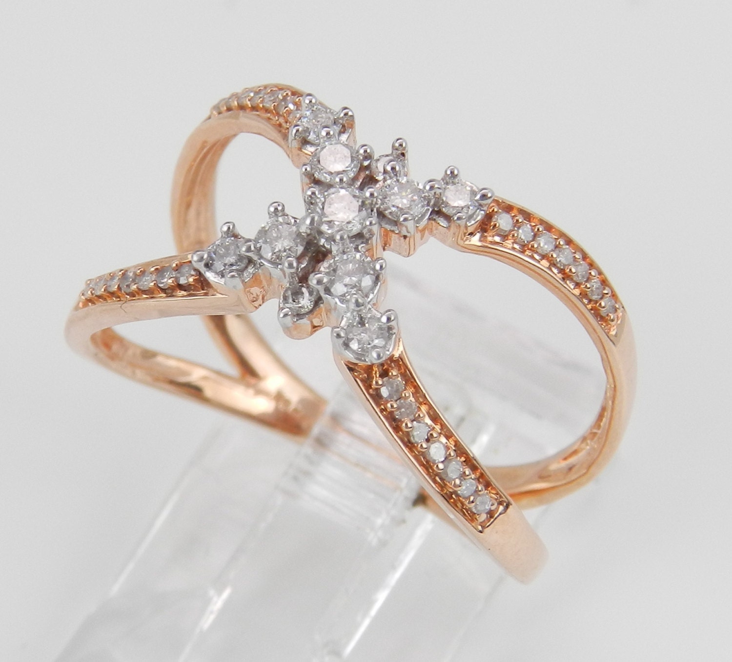 Rose Gold Diamond Cluster Crossover Ring. This ring is set with thirty-nine genuine Round Diamonds. These diamonds are G/H color, I1 clarity and weigh a total of .35 carat. This ring is 10KT Rose Pink Gold, weighs 3.0 grams, measures 11 mm in width at its widest point and is a finger size 7, which can be resized (please inquire about sizing with the finger size you need). This ring will be accompanied by an appraisal by a GIA Certified Diamond Grader with the retail replacement value of $1,289.00. I will ship this ring promptly in a gift box.