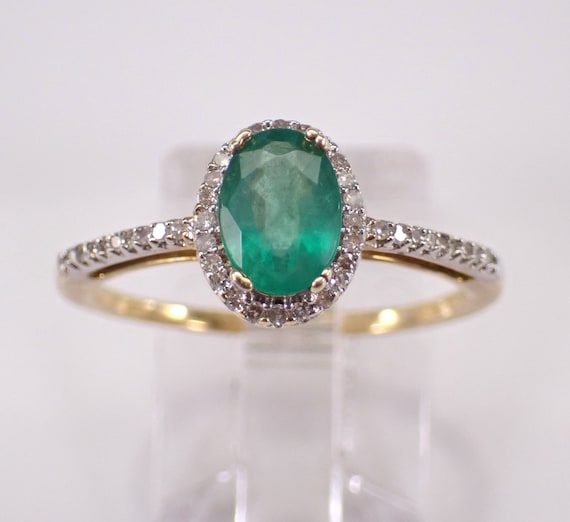 Emerald and Diamond Multi Row Wedding Ring - Yellow Gold Cluster Anniversary Band - May Birthstone Fine Jewelry Gift
