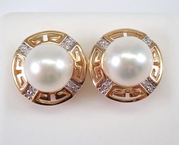 Pearl and Diamond Stud Earrings - 14K White Gold Fine Jewelry Gift - June Birthstone Gemstone Studs