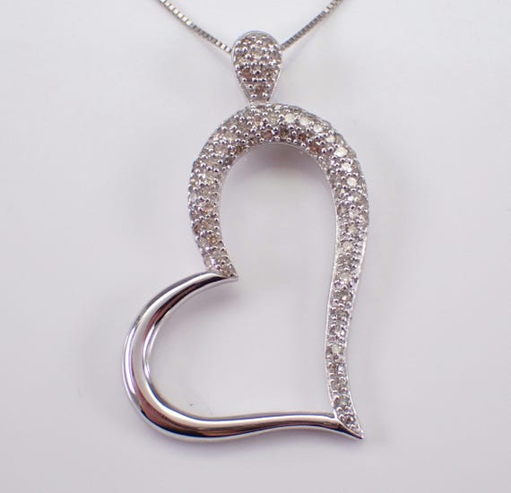 Diamond Heart Charm Pendant and Chain - White Gold Simple Necklace Choker - GalaxyGems Bridal Fine Jewelry Gift