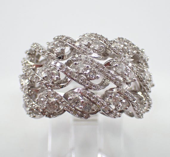 White Gold Diamond Anniversary Ring - Unique Wide Bridal Wedding Band - GalaxyGems Fine Jewelry Gift